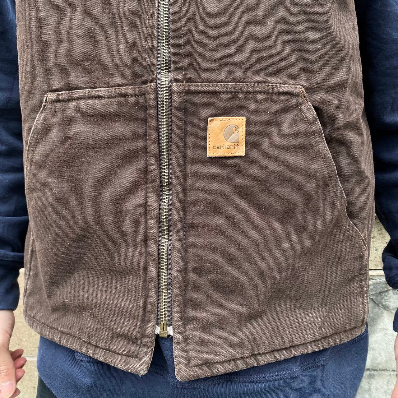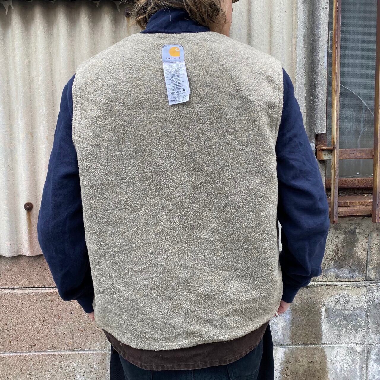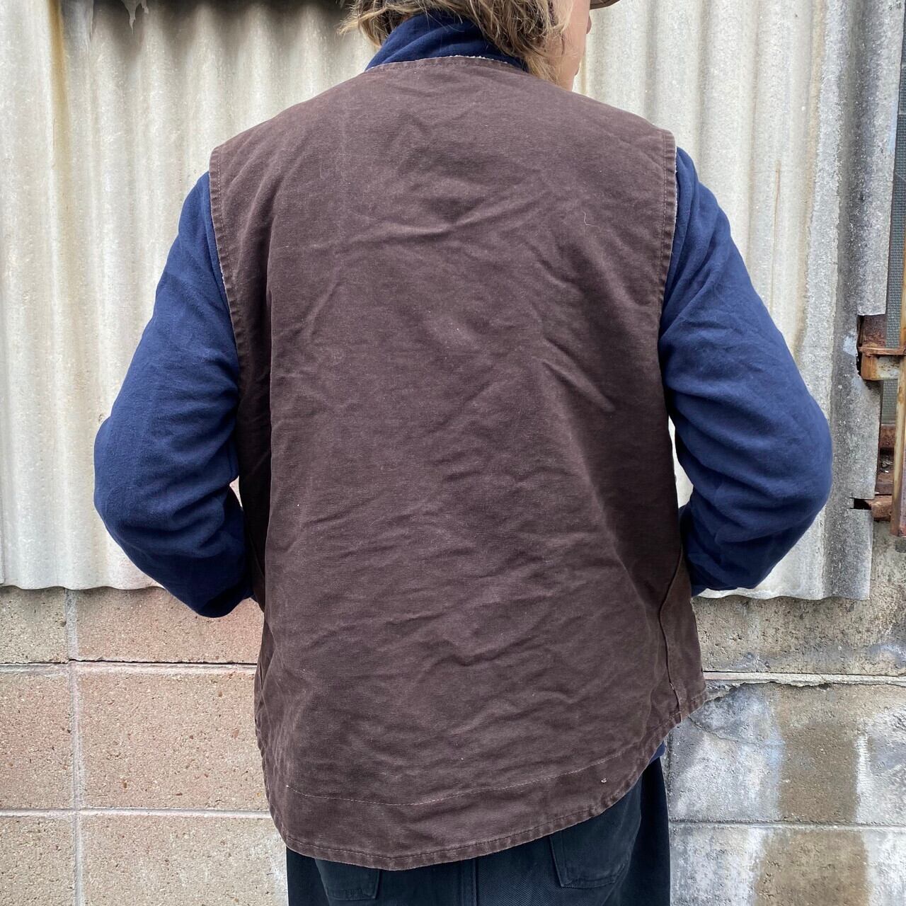 Carhartt カーハート ダック地 ノーカラー ワークベスト ボアライナー メンズM 古着 ブラウン 茶色 【ワークジャケット】【2203AL15】