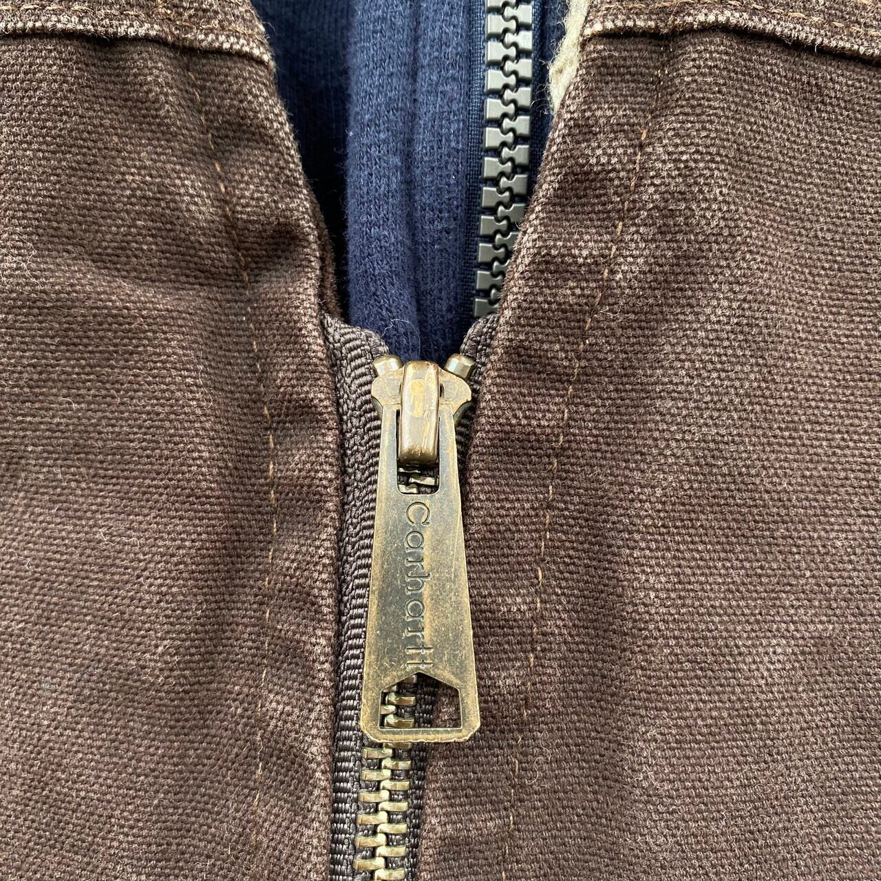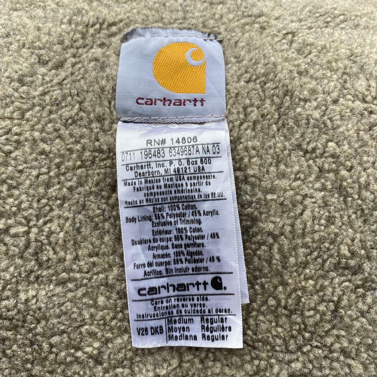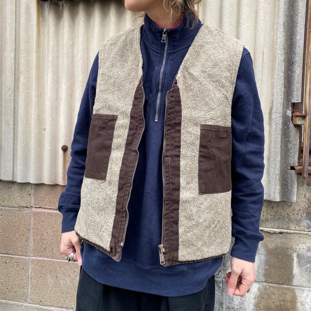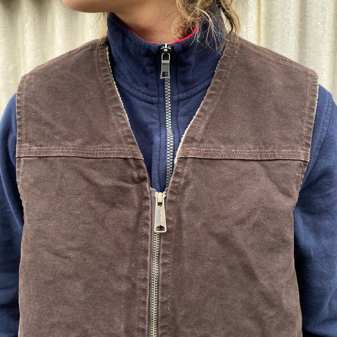 Carhartt カーハート ダック地 ノーカラー ワークベスト ボアライナー メンズM 古着 ブラウン 茶色 【ワークジャケット】【2203AL15】