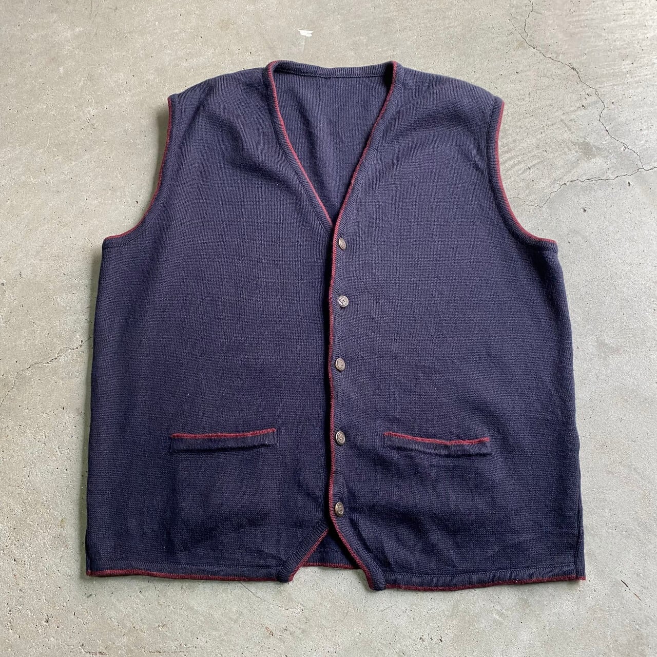 ビッグサイズ Colmar スペイン製 アクリル×ウール 無地 ニットベスト メンズXL相当 古着 ネイビー 紺 ユーロ ヨーロッパブランド 【ニットセーター】【2203AL15】