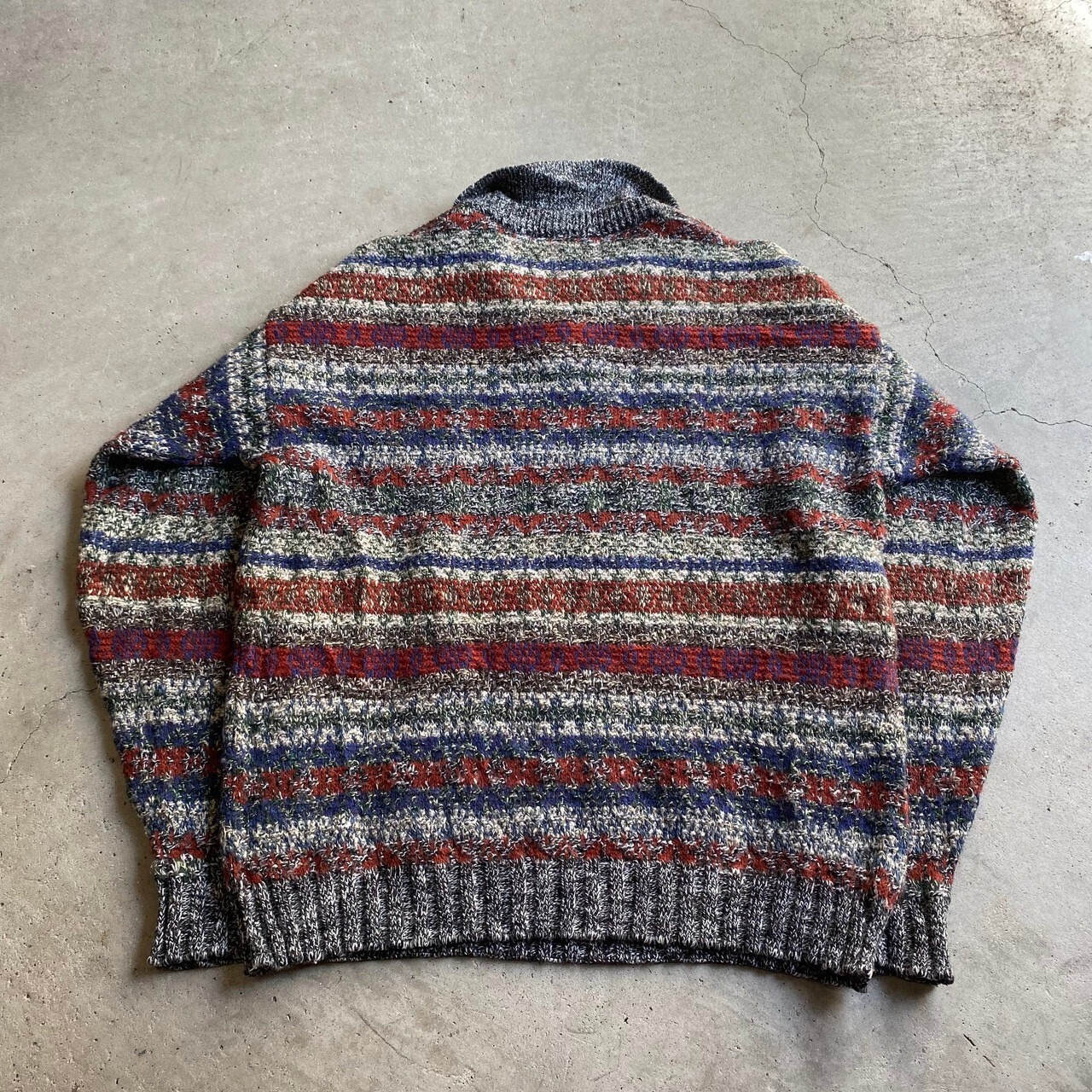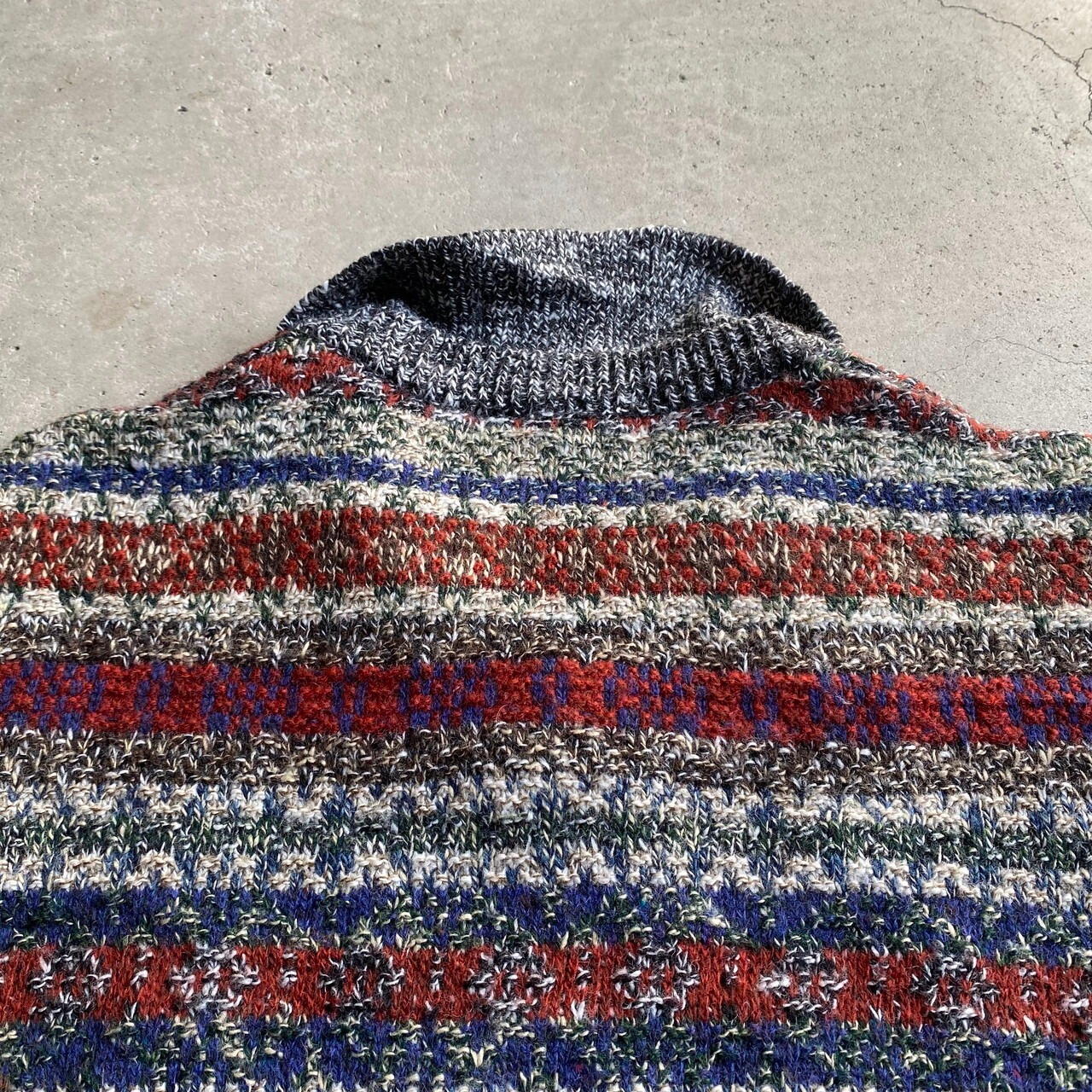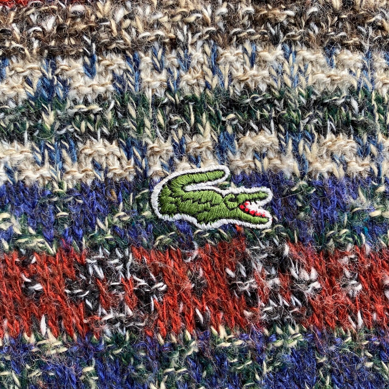 ■80年代 スペイン製 LACOSTE ラコステ マルチボーダー柄 アクリル×ウール×コットン ニットポロセーター メンズXL相当 古着 ワンポイントロゴ刺繡 80S ビンテージ ヴィンテージ マルチカラー【ニットセーター】