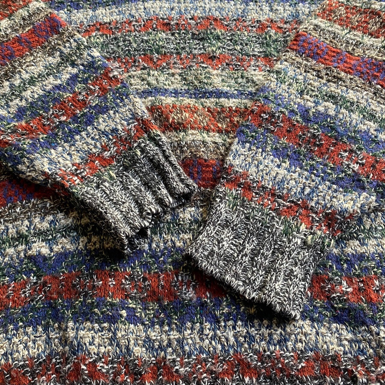 80年代 スペイン製 LACOSTE ラコステ マルチボーダー柄 アクリル×ウール×コットン ニットポロセーター メンズXL相当 古着 ワンポイントロゴ刺? 80S ビンテージ ヴィンテージ マルチカラー【ニットセーター】【CS2211-30】