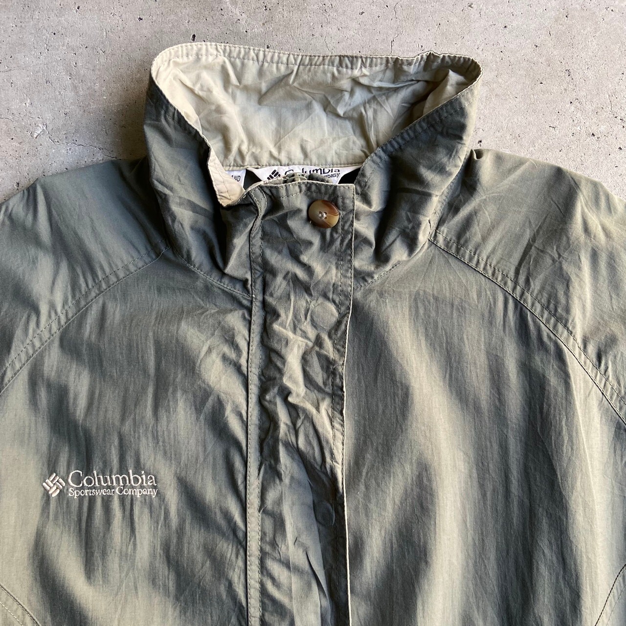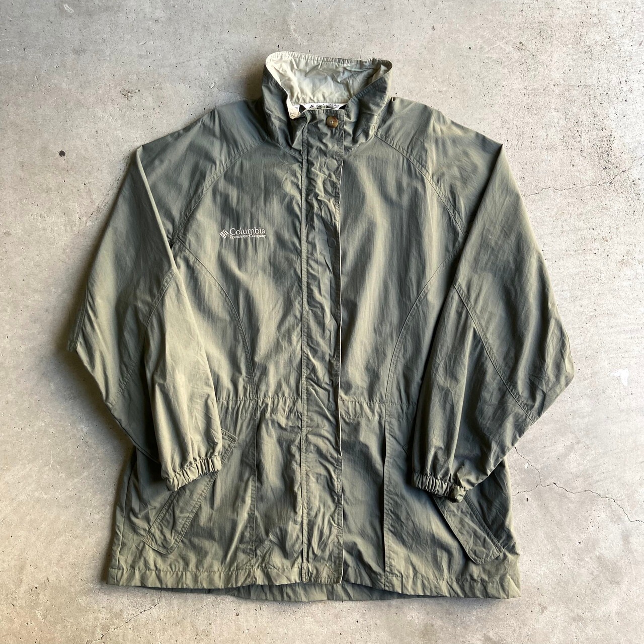 90年代 Columbia コロンビア ハイネック マウンテンジャケット レディースXL メンズL相当 古着 90s ヴィンテージ ビンテージ ナイロンジャケット くすみグリーン 緑 【アウトドアジャケット】【2203AL15】