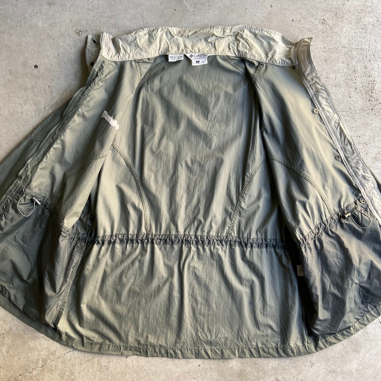 ■90年代 Columbia コロンビア ハイネック マウンテンジャケット レディースXL メンズL相当 古着 90s ヴィンテージ ビンテージ ナイロンジャケット くすみグリーン 緑 【アウトドアジャケット】