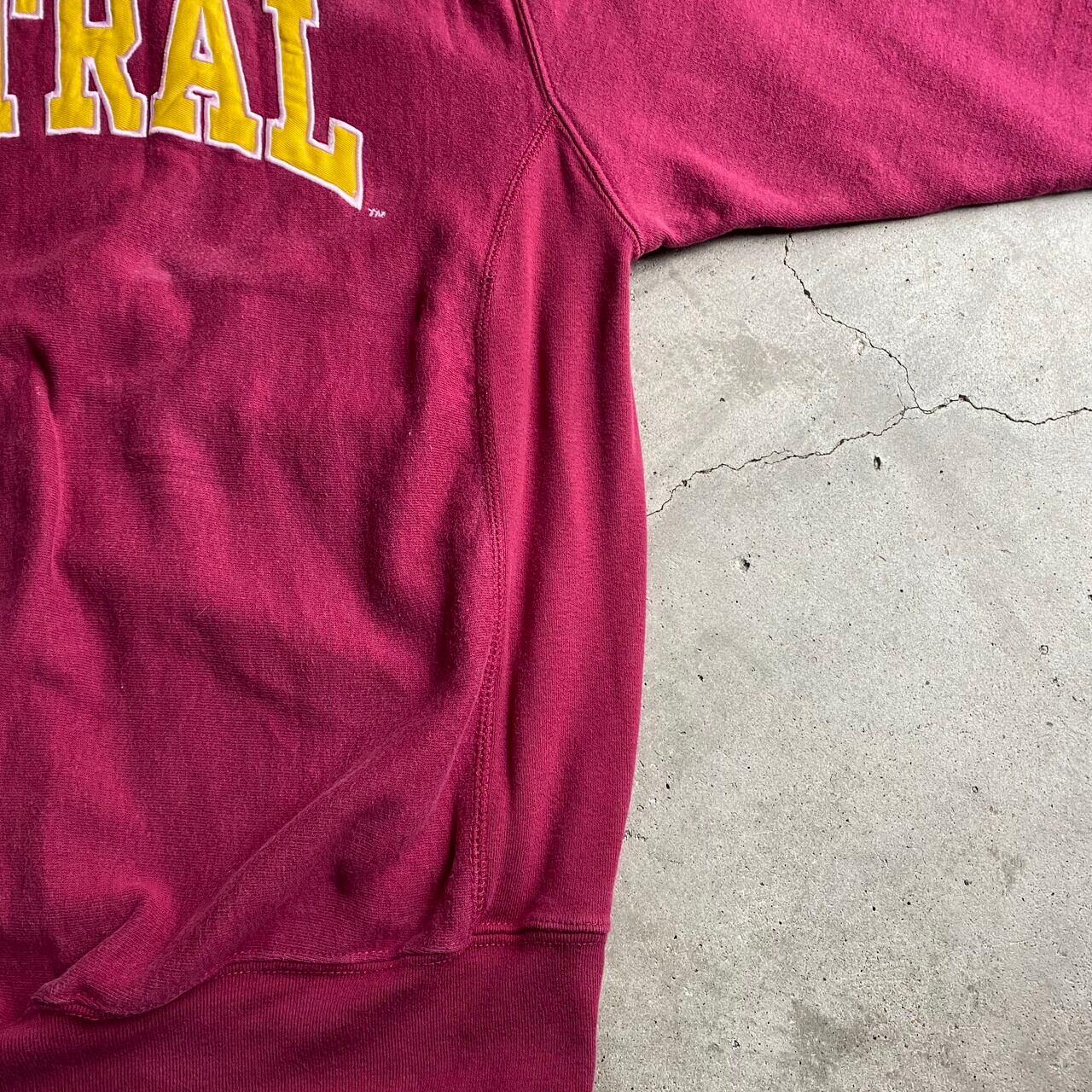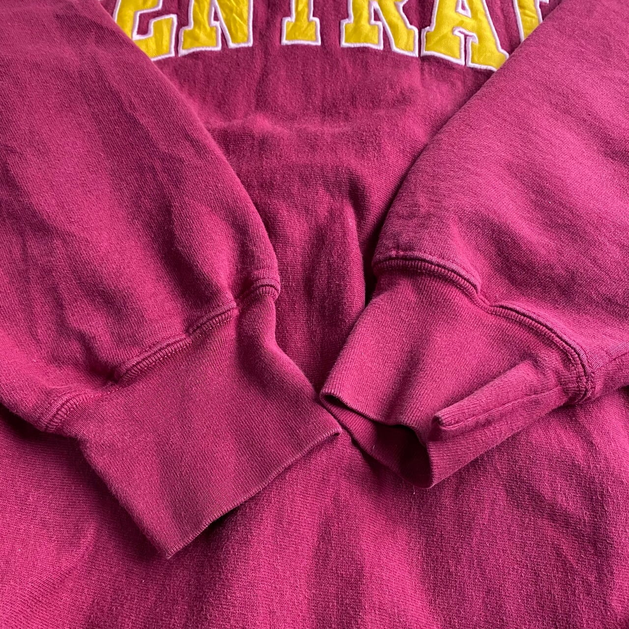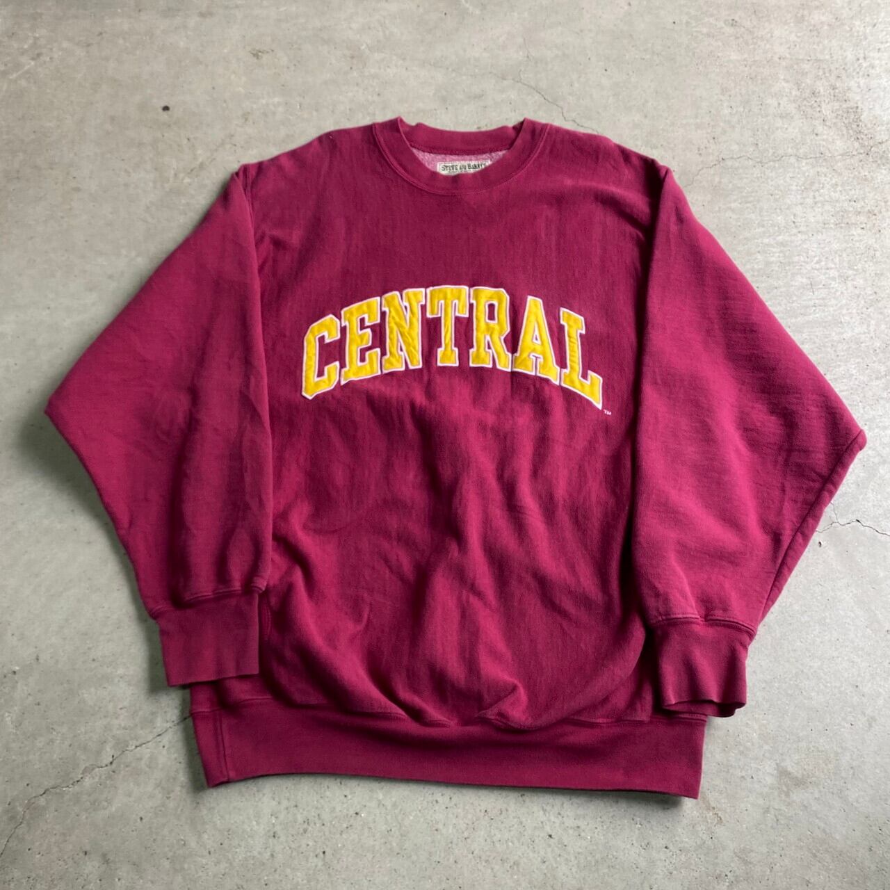 ■ビッグサイズ リバースウィーブタイプ CENTRAL カレッジロゴ ワッペン スウェットシャツ メンズXL相当 古着 トレーナー えんじ レッド 赤色 【スウェット】