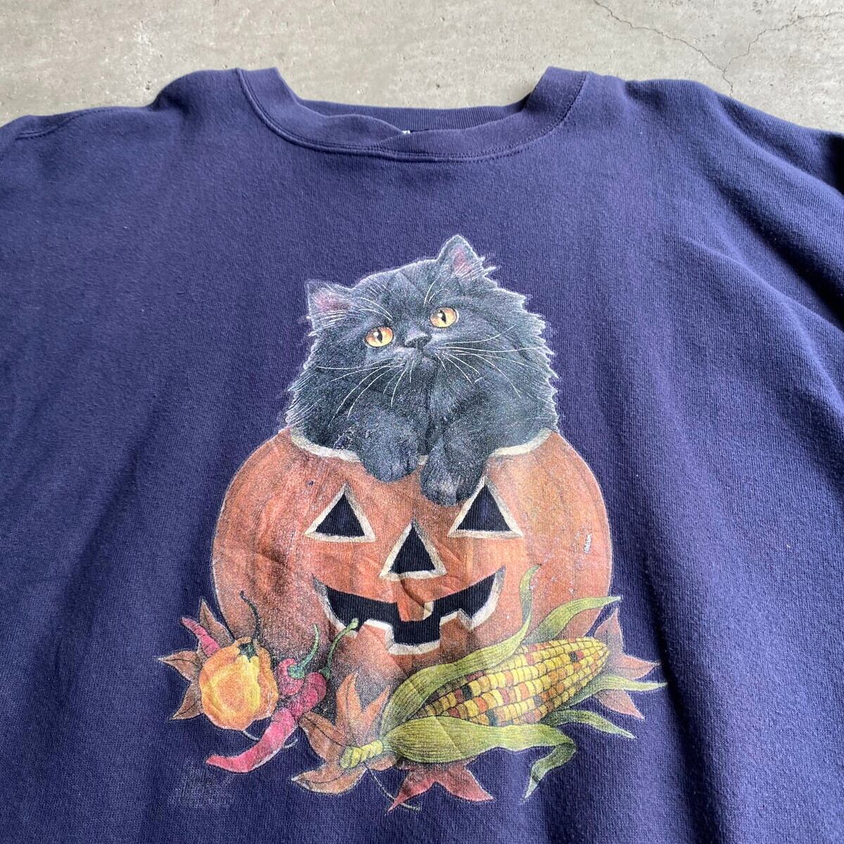 ビッグサイズ 90年代 STARTER スターター ネコ×ハロウィン アニマル プリント スウェット メンズXXL相当 古着 大きいサイズ 90s ヴィンテージ ビンテージ プルオーバー トレーナー ネイビー 紺色 【トレーナー】【AL2110】【SW20】【AN20】