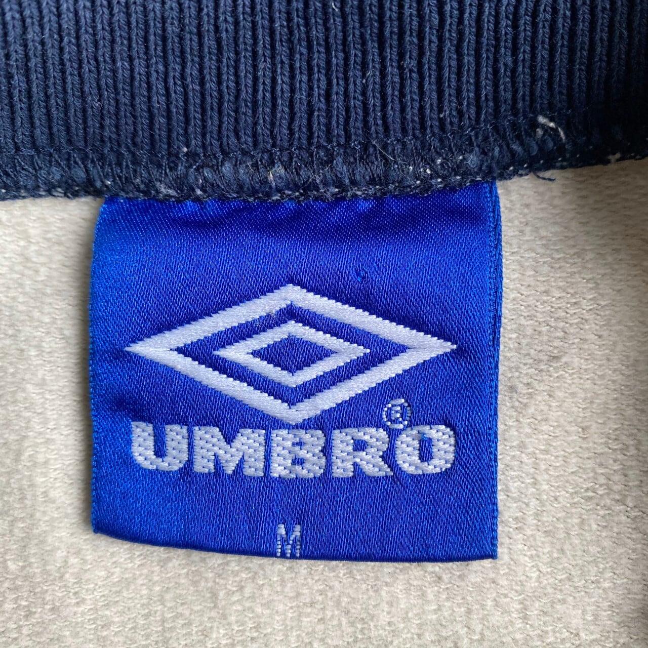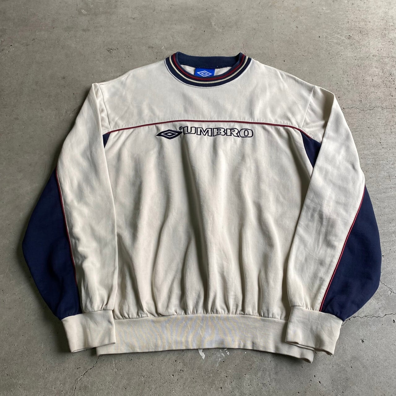 ■90年代 ビンテージ ユーロ UMBRO アンブロ フロントロゴ 刺繍 スウェットシャツ トレーナー メンズL相当 90S ヴィンテージ 古着 ベージュ ネイビー 紺色 【スウェット】