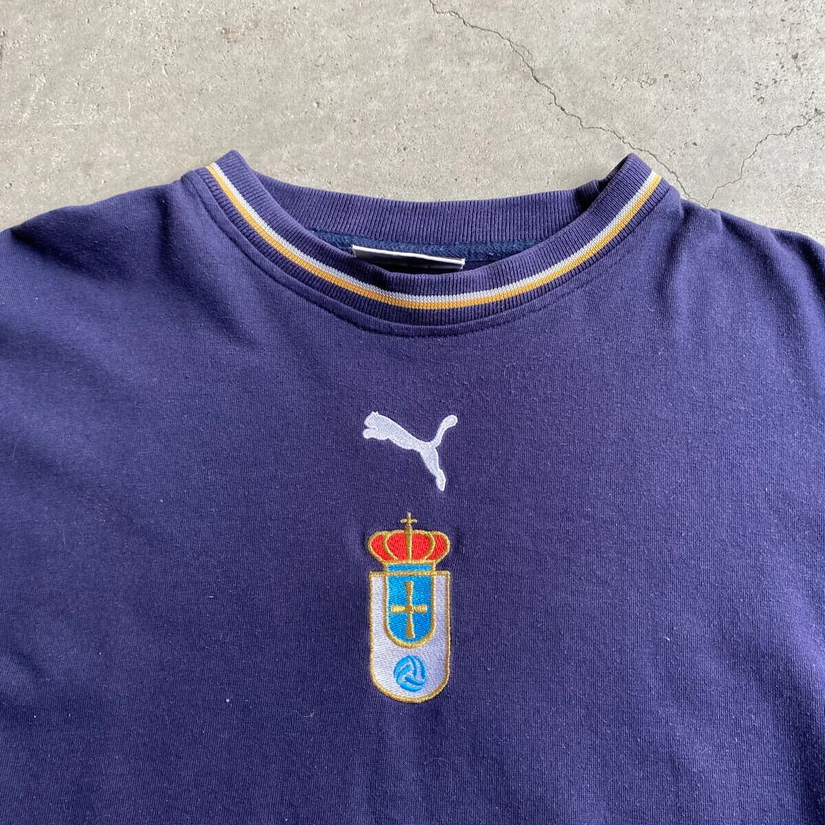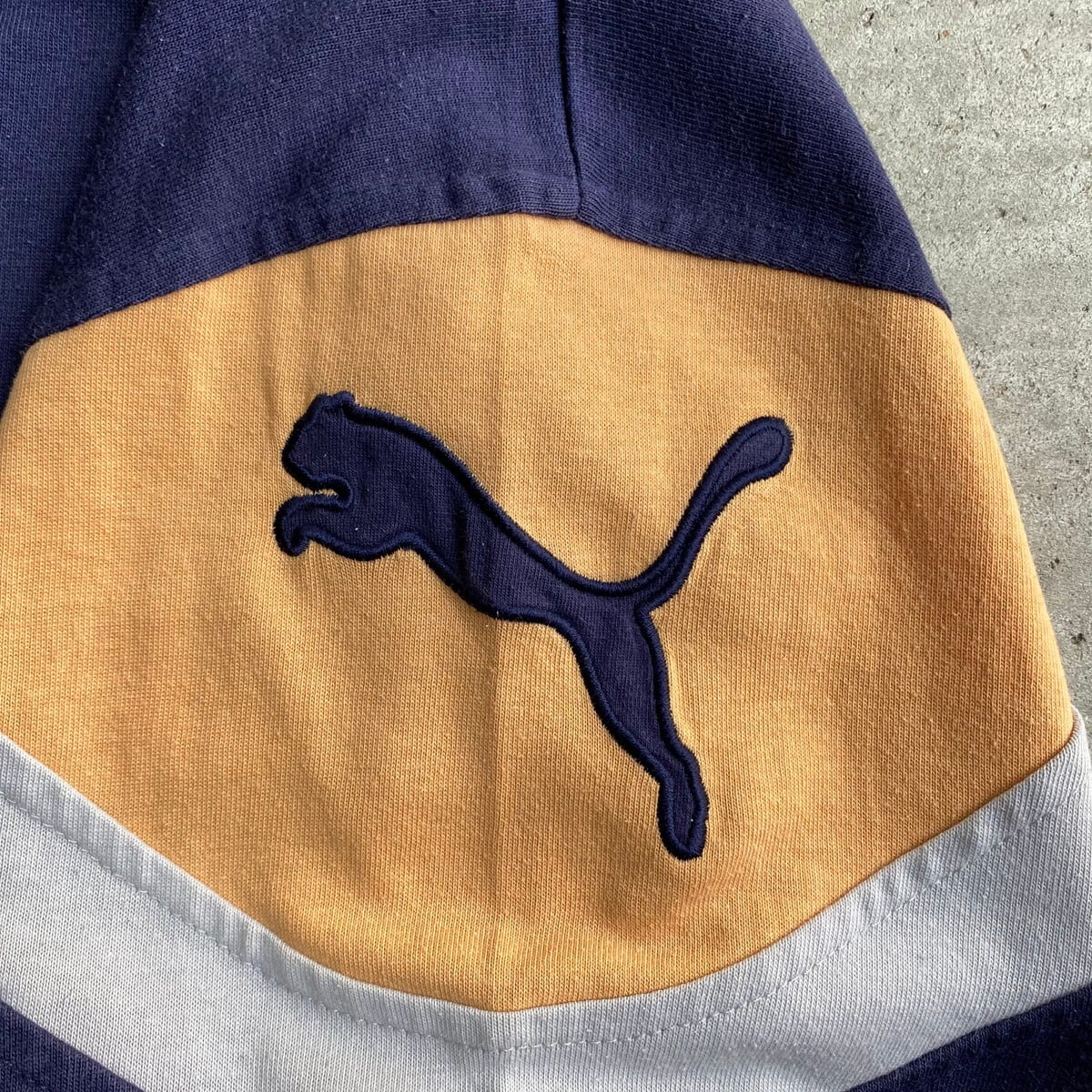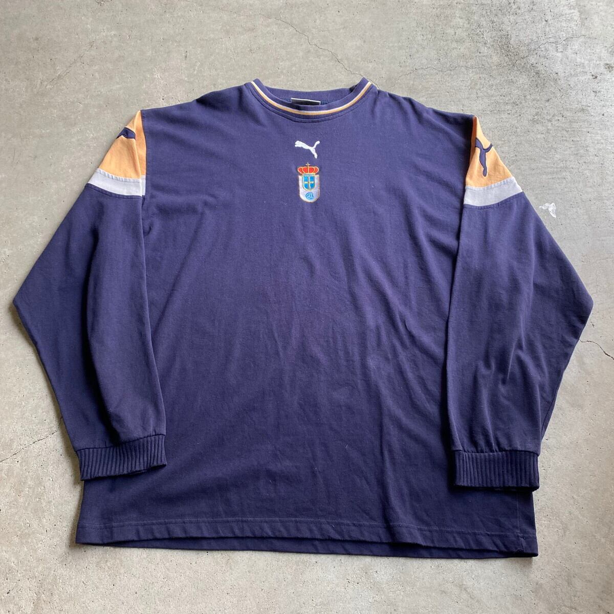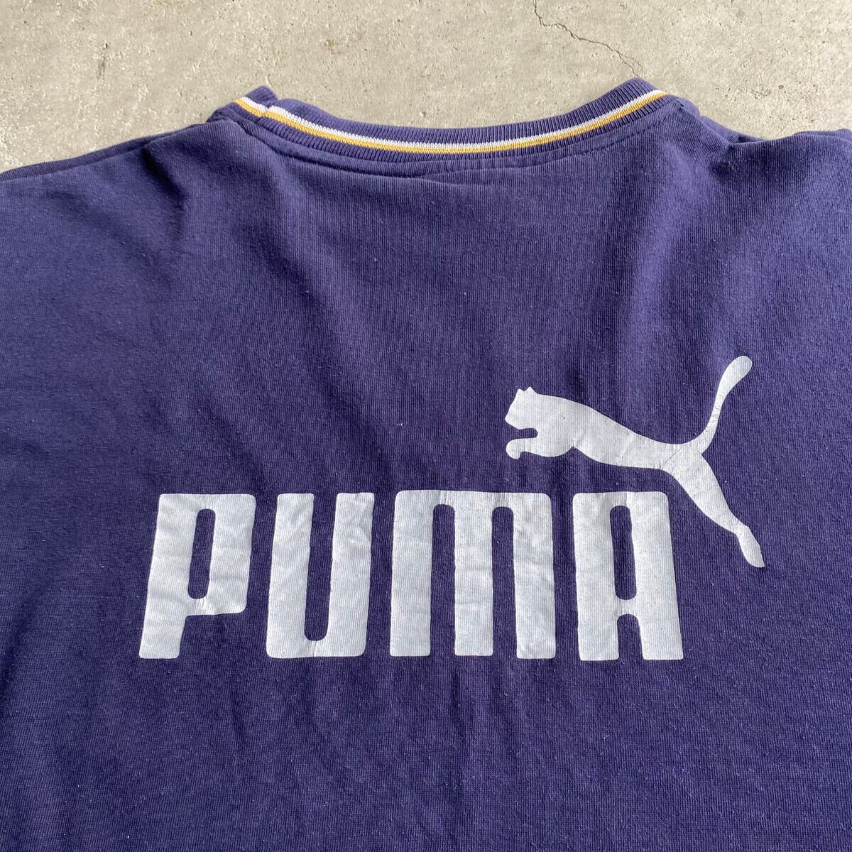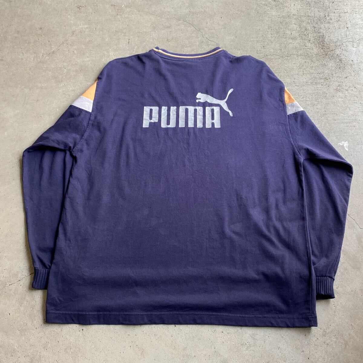 ■90年代 ユーロ PUMA プーマ フロントロゴ 刺繍 バックプリント ロングTシャツ ロンT メンズXL 古着 トレーナー 紺色 ネイビー 90s ヴィンテージ ビンテージ 大きいサイズ【スウェット】