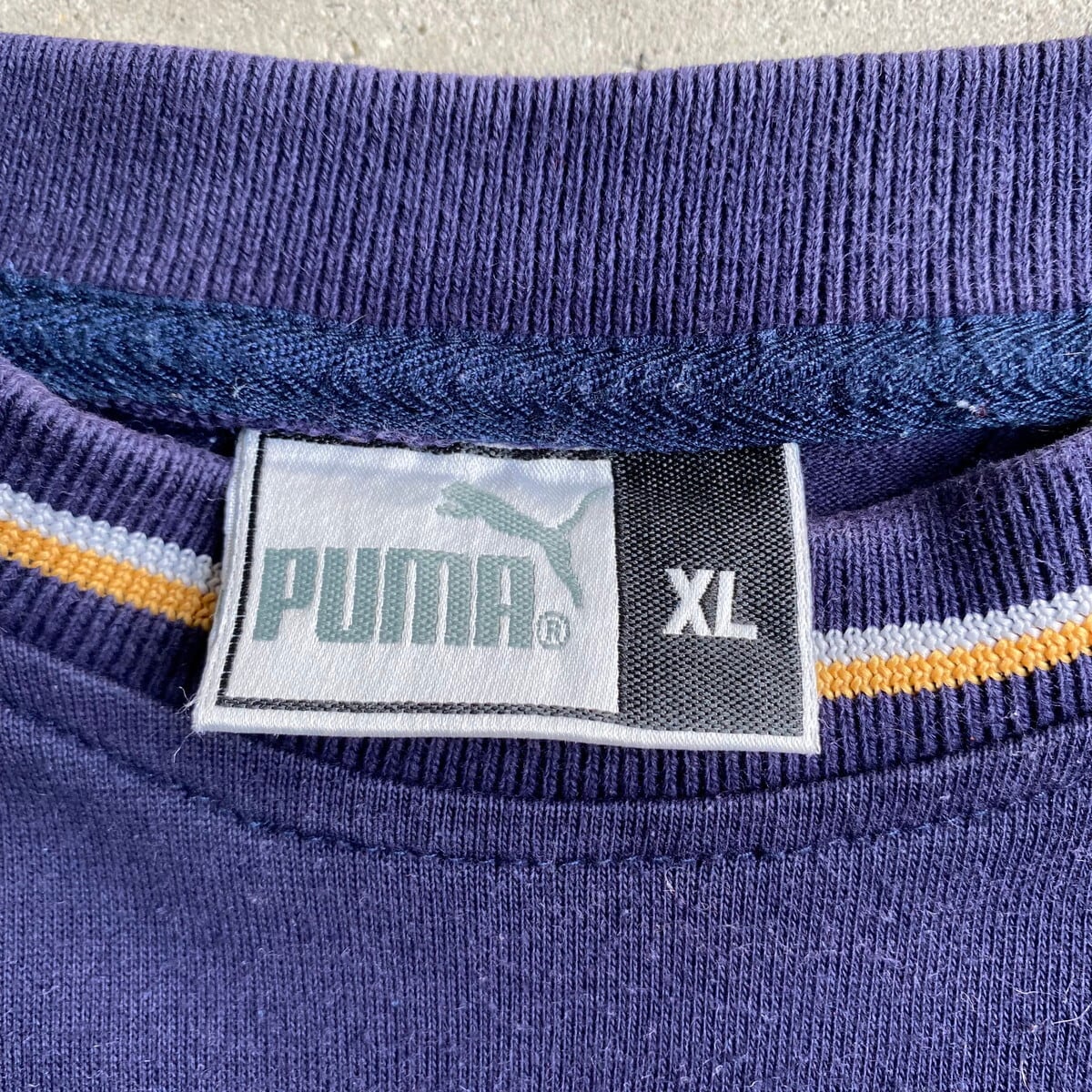 90年代 PUMA プーマ フロントロゴ 刺繍 バックプリント ロングTシャツ ロンT メンズXL 古着 トレーナー 紺色 ネイビー 90s ヴィンテージ ビンテージ 大きいサイズ【スウェット】【SWE30】【CS2301-50】