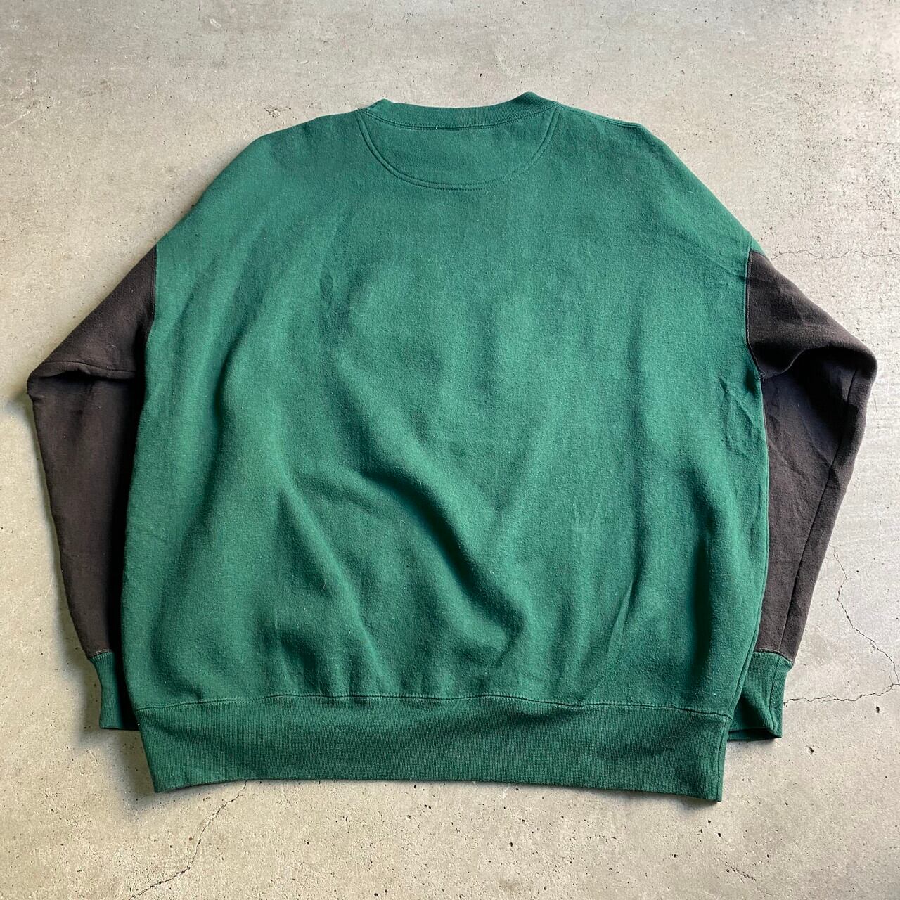 ビッグサイズ NORTRE DAME カレッジ ロゴ刺繍 切替 スウェット メンズ2XL相当 古着 ブラック グリーン 黒 緑【スウェット】【SWE30】【SA2204】
