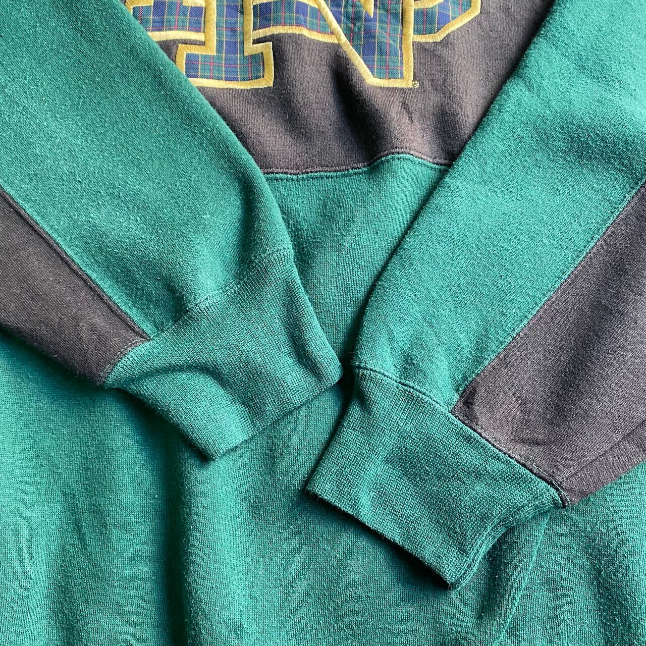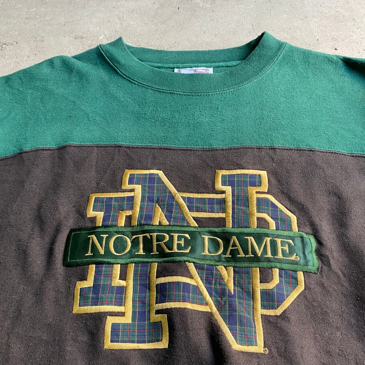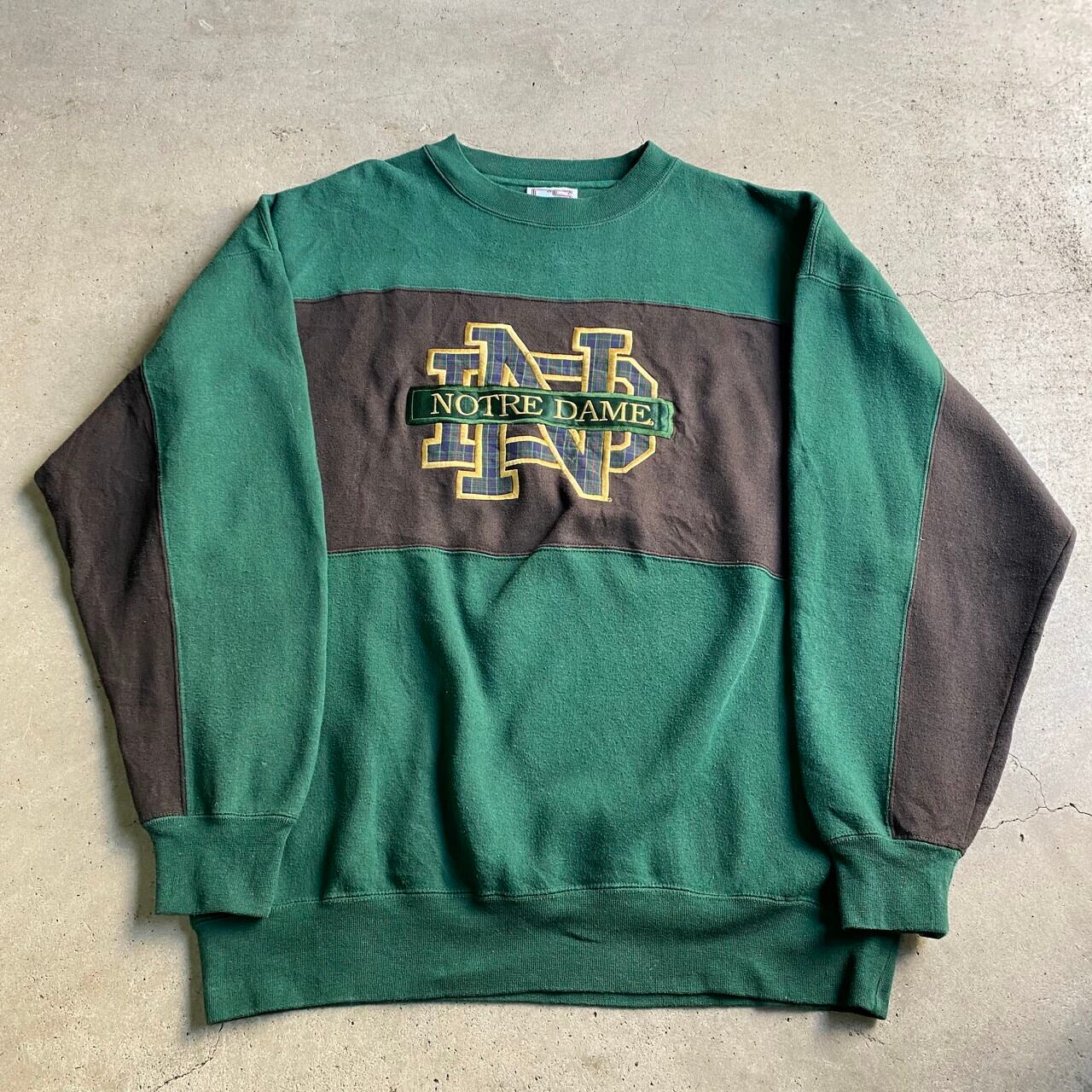 ■ビッグサイズ NORTRE DAME カレッジ ロゴ刺繡 切替 スウェット メンズ2XL相当 古着 ブラック グリーン 黒 緑【スウェット】