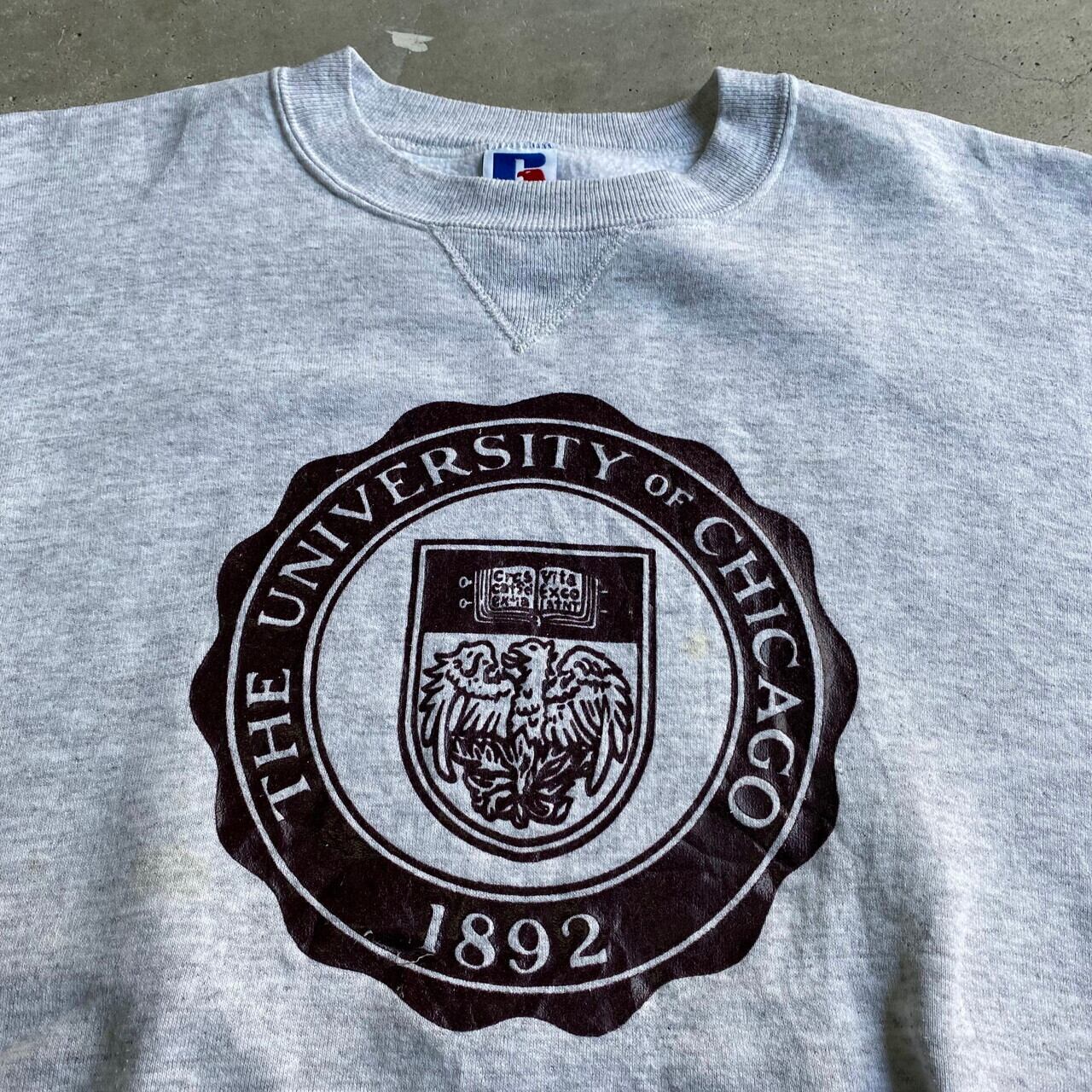 USA製 RUSELL ATHLETIC CHICAGO カレッジロゴプロント スウェットシャツ メンズXL相当 古着 グレー【スウェット】【SWE30】【CS2212-30】