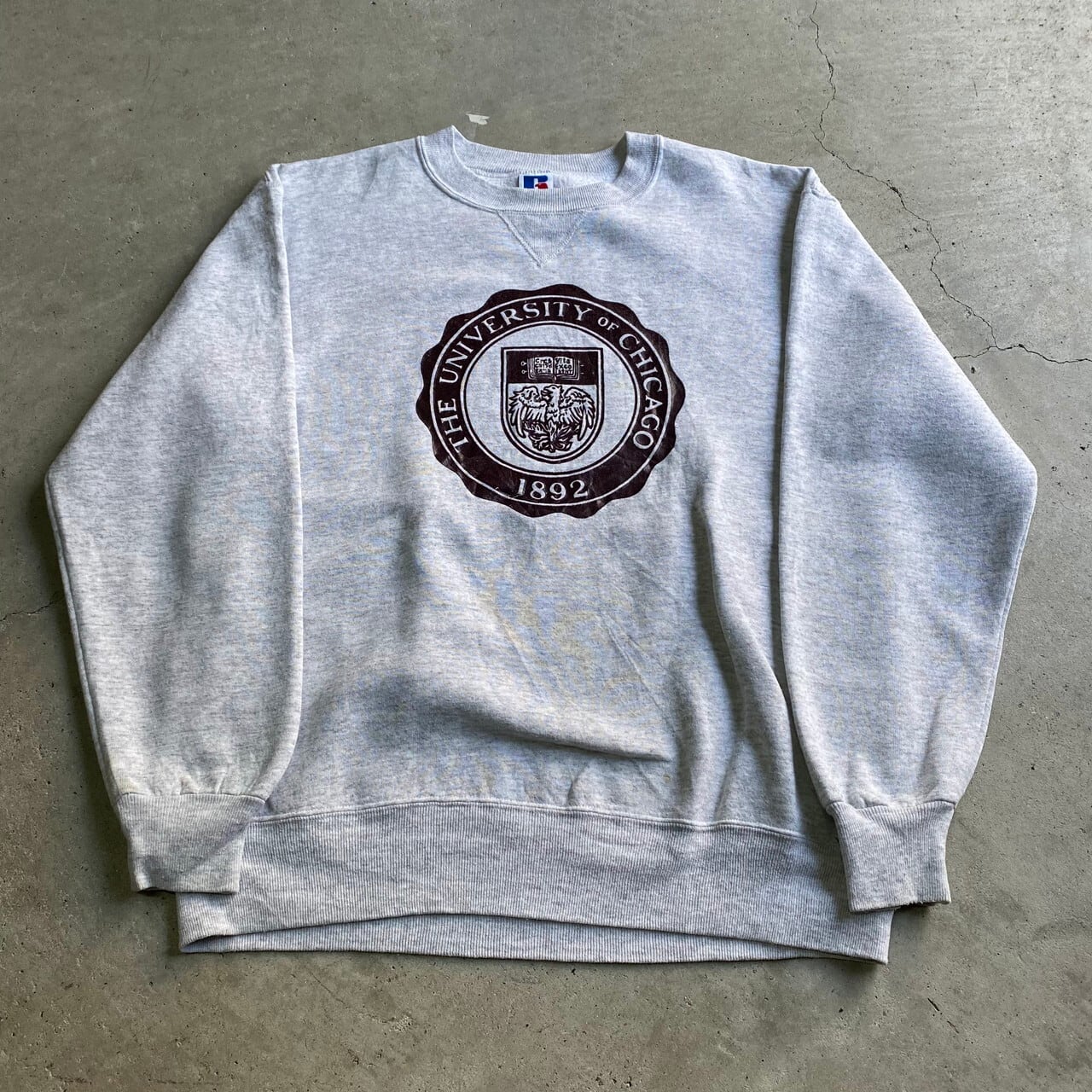 ■USA製 RUSELL ATHLETIC CHICAGO カレッジロゴプロント スウェットシャツ メンズXL相当 古着 グレー【スウェット】