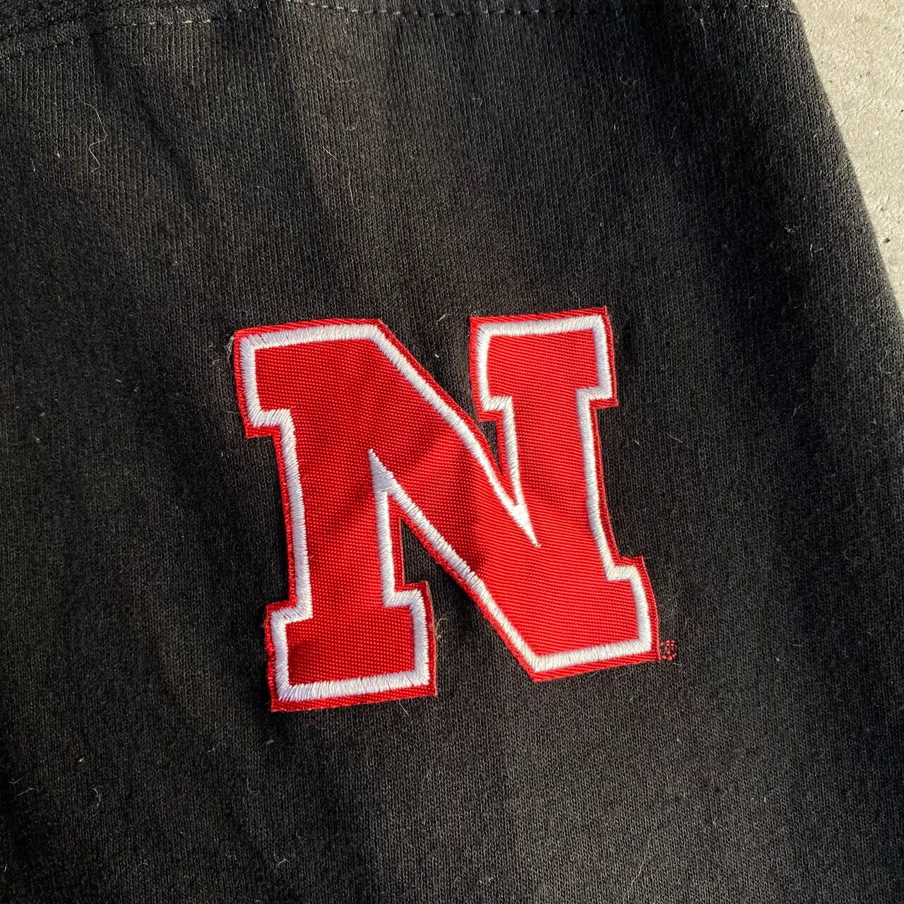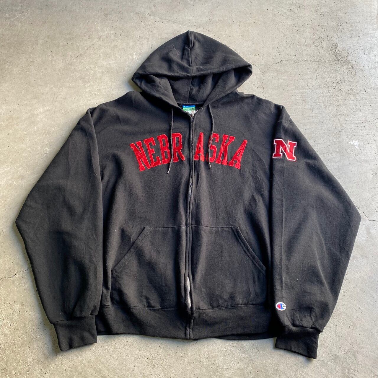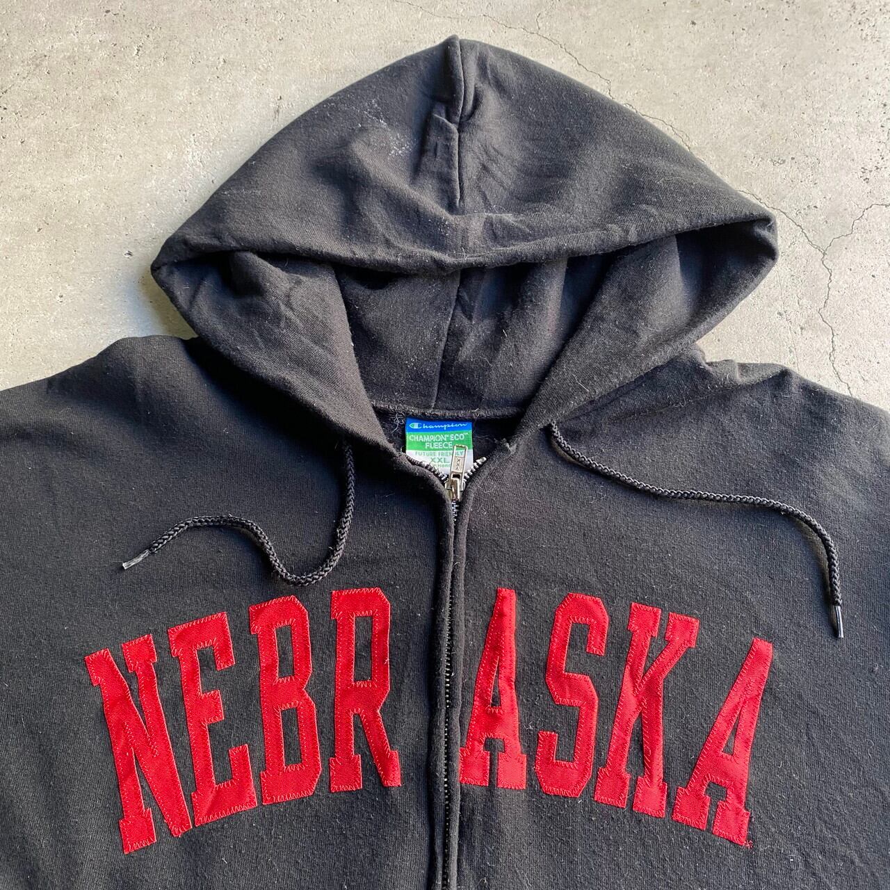■ビックサイズ Champion チャンピオン NEBRASKA カレッジロゴ ワッペン フルジップスウェットパーカー メンズ2XL 古着 ブラック 黒色 大きいサイズ 【パーカー】