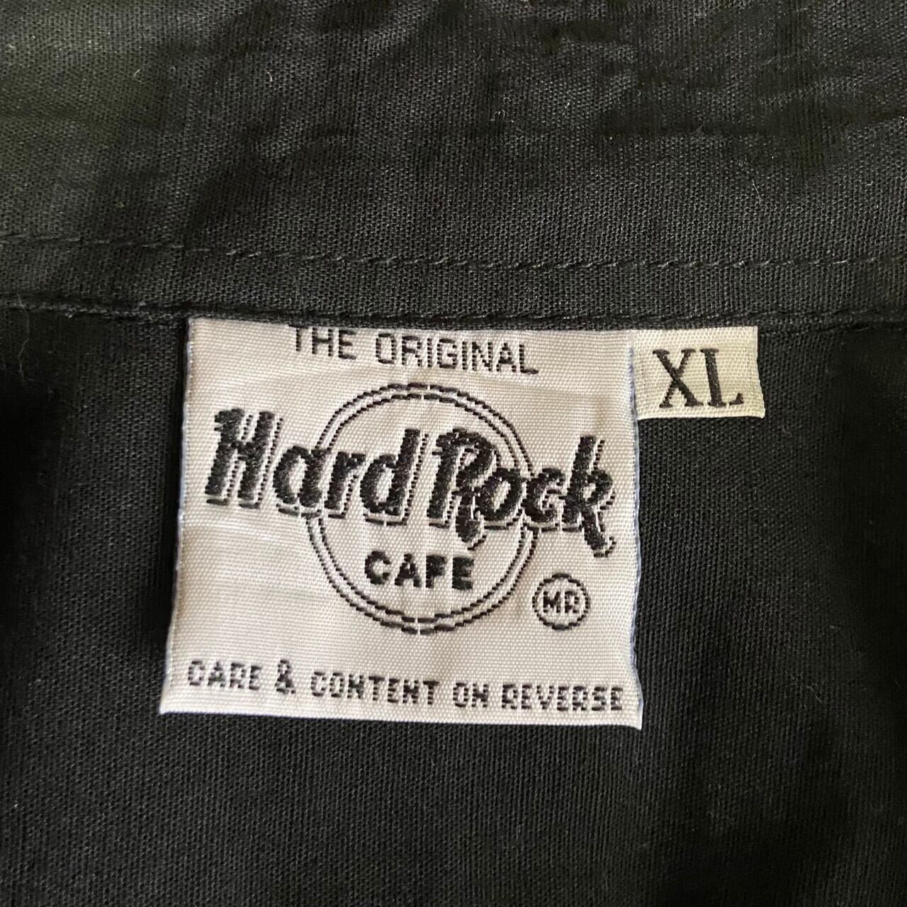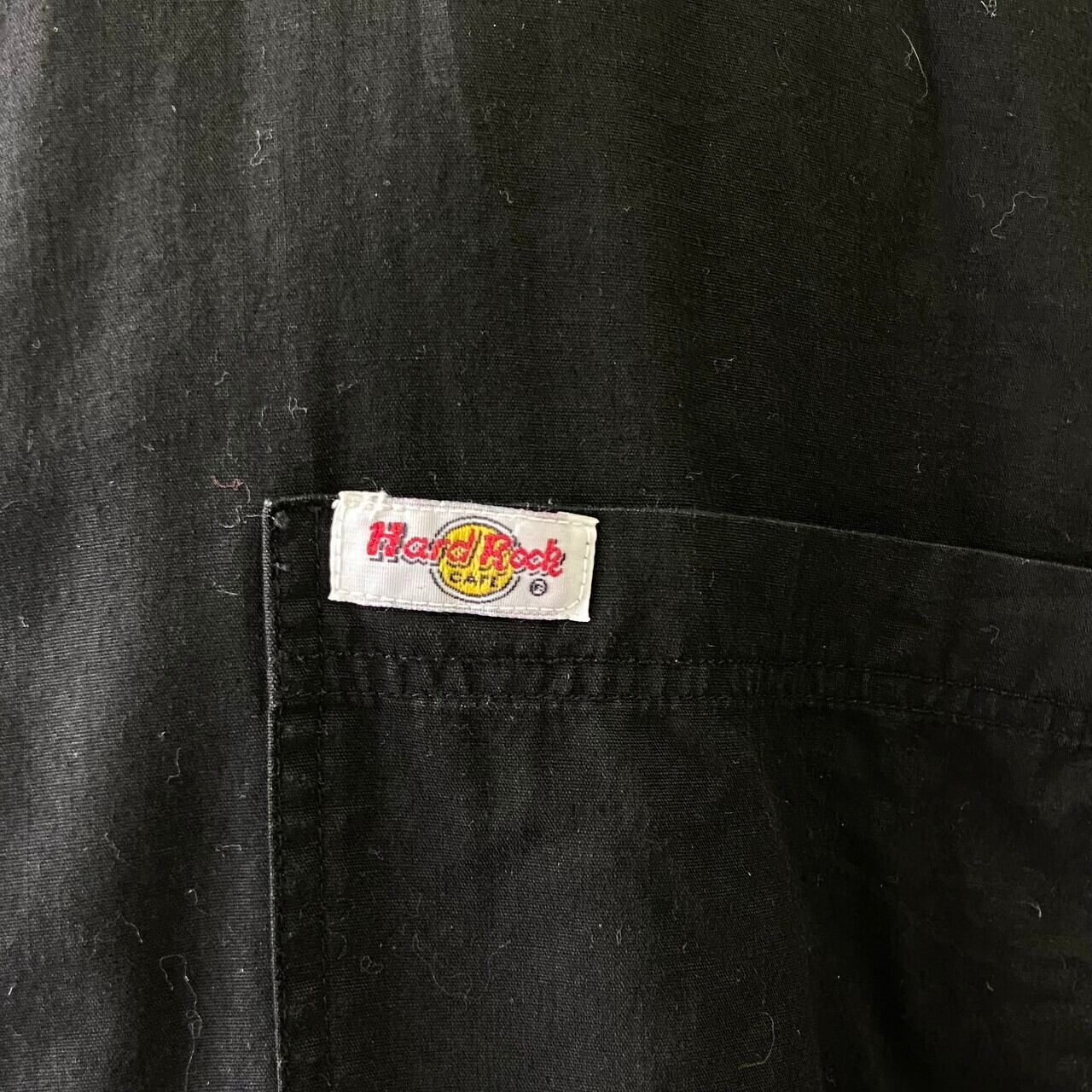 HARD ROCK CAFE ハードロックカフェ バックロゴ刺繍 ボーリングシャツ メンズXL 古着 ブラック 黒 【半袖シャツ】【SS2207-50】
