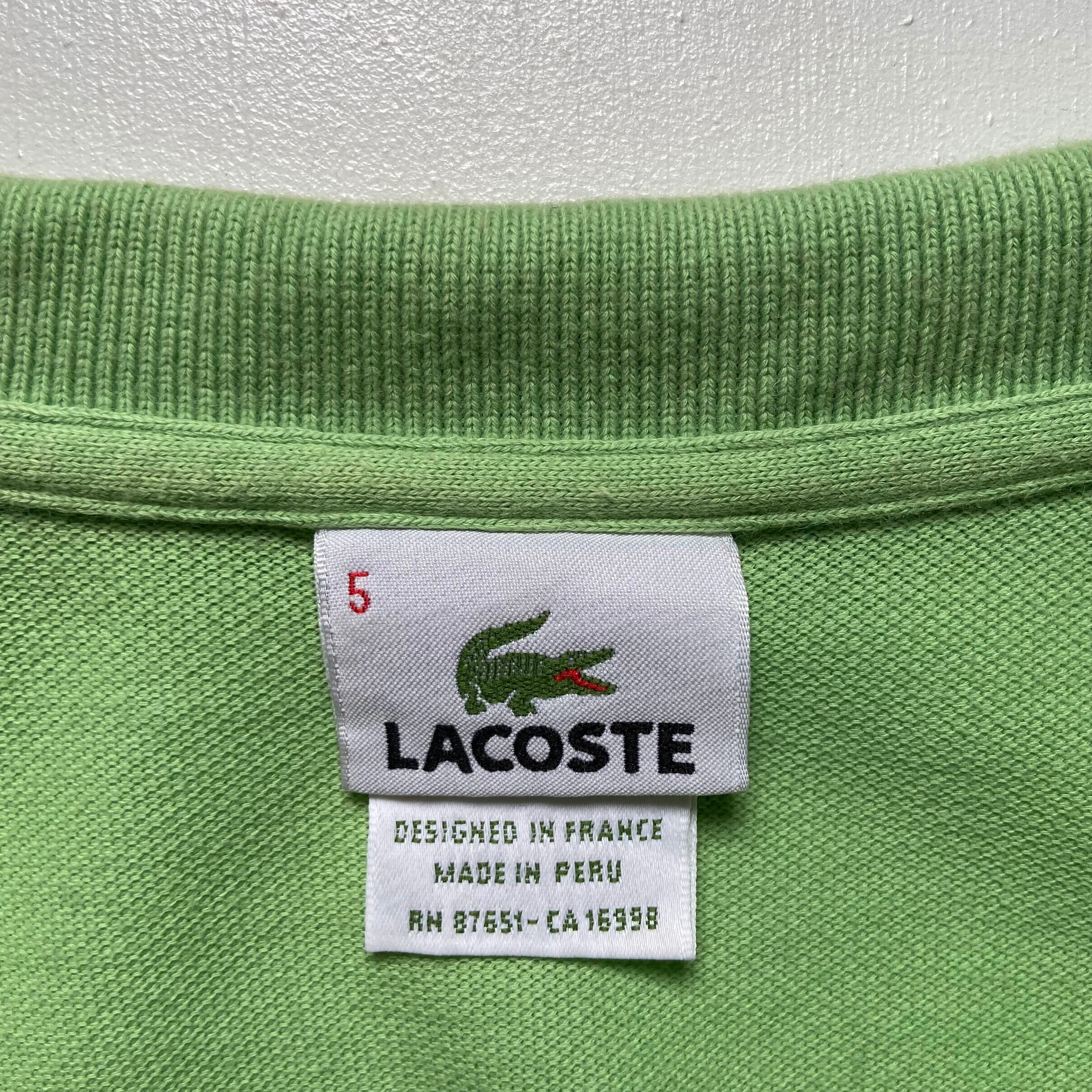 ■【新入荷SALE対象外】LACOSTE フレンチラコステ 鹿の子 ポロシャツ メンズL相当 古着 ワンポイントロゴ ライトグリーン 黄緑色【ポロシャツ】【nw2207】