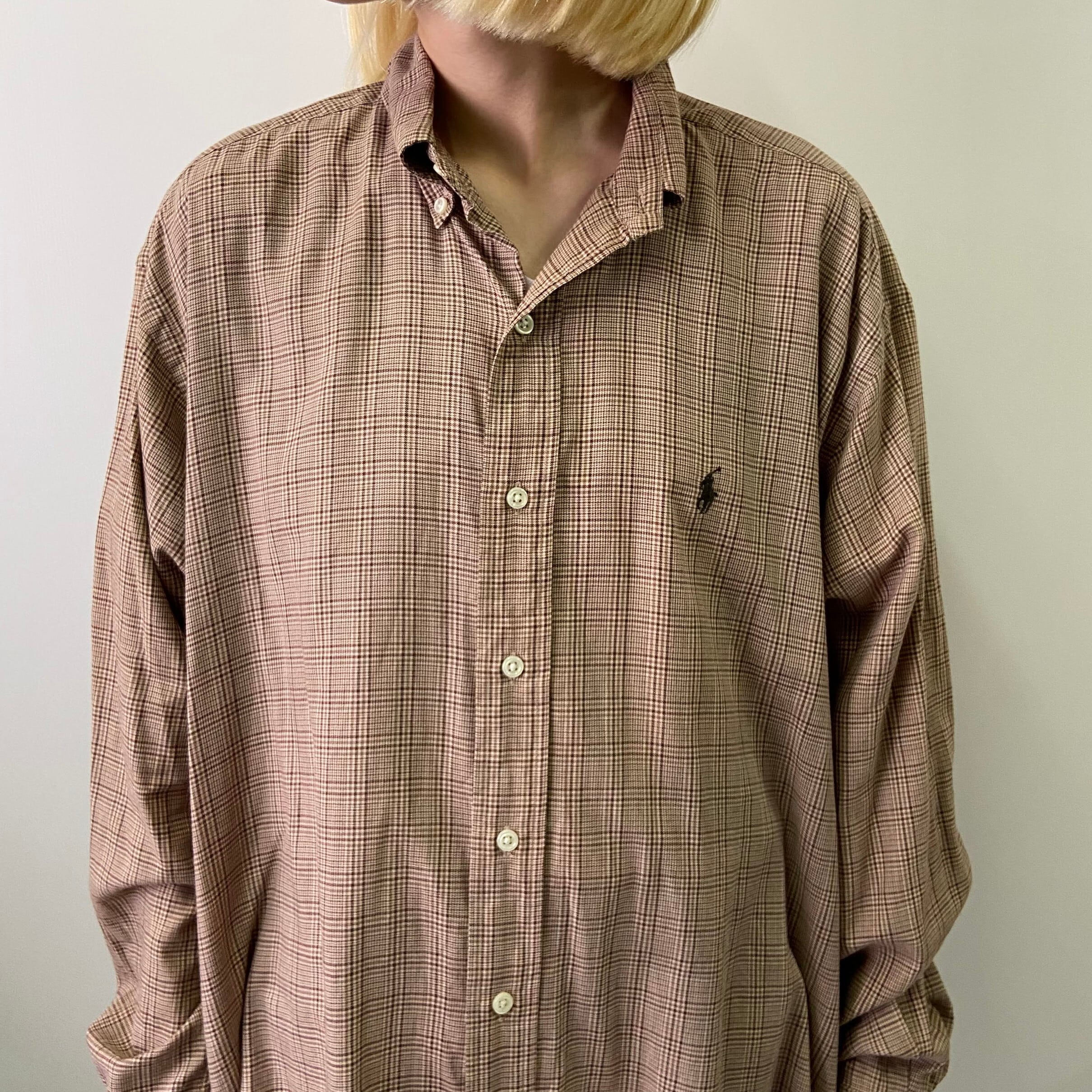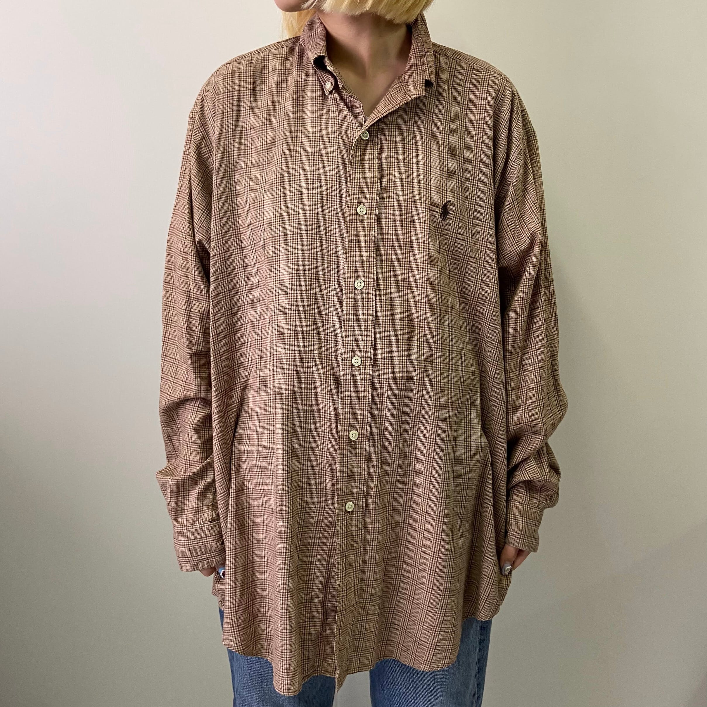 ■Ralph Lauren ラルフローレン BLAKE 長袖 チェックシャツ ボタンダウンシャツ メンズM 古着 ブラウン 茶色 【長袖シャツ】