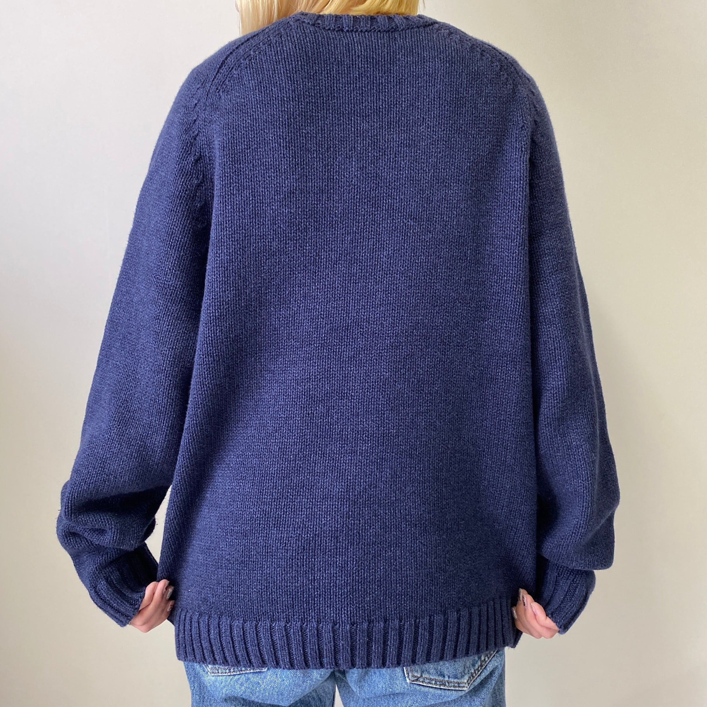 LANDS' END ランズエンド アメリカ 国旗 星条旗柄 コットンニットセーター メンズXL相当 古着 ネイビー 紺色【ニットセーター】