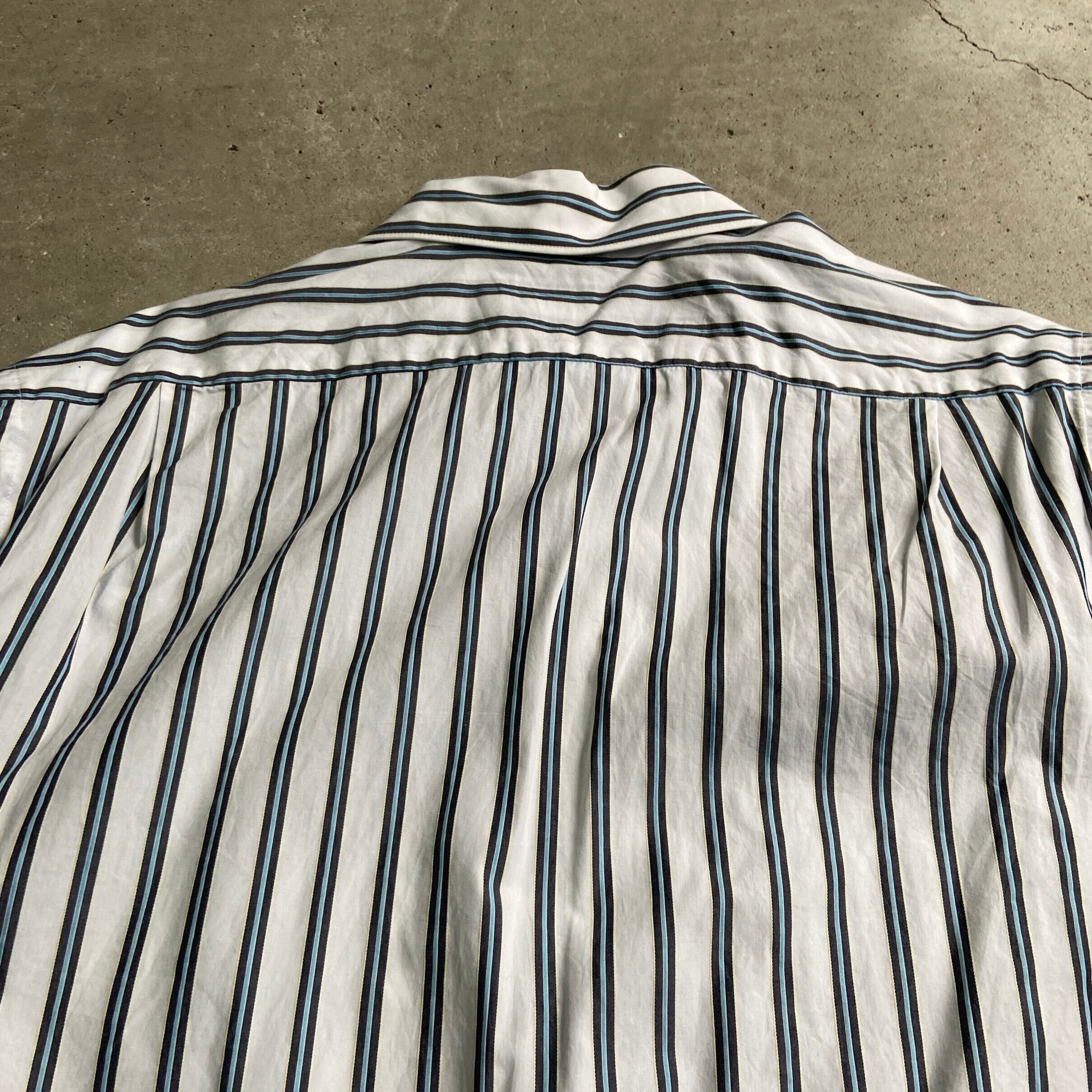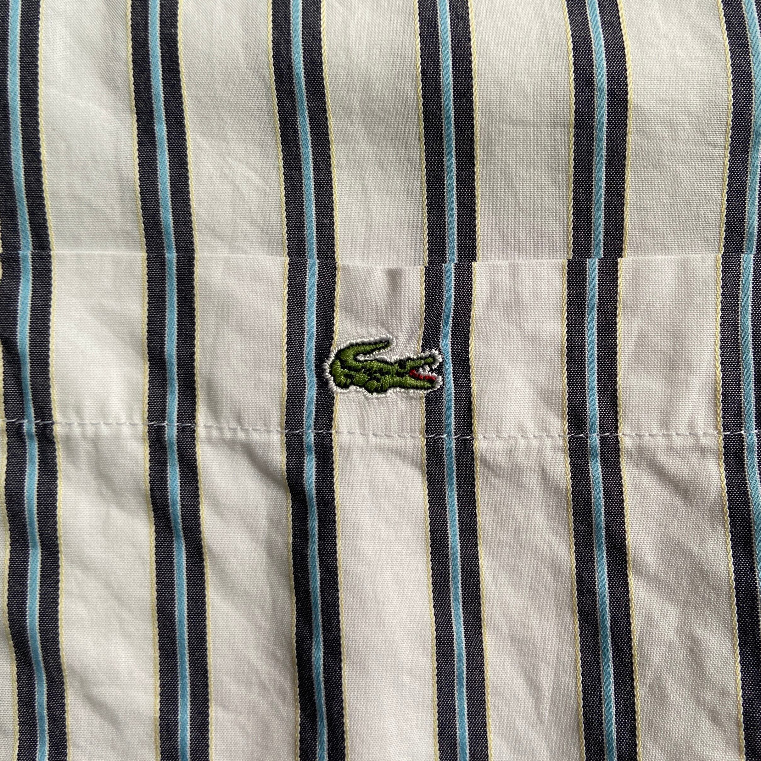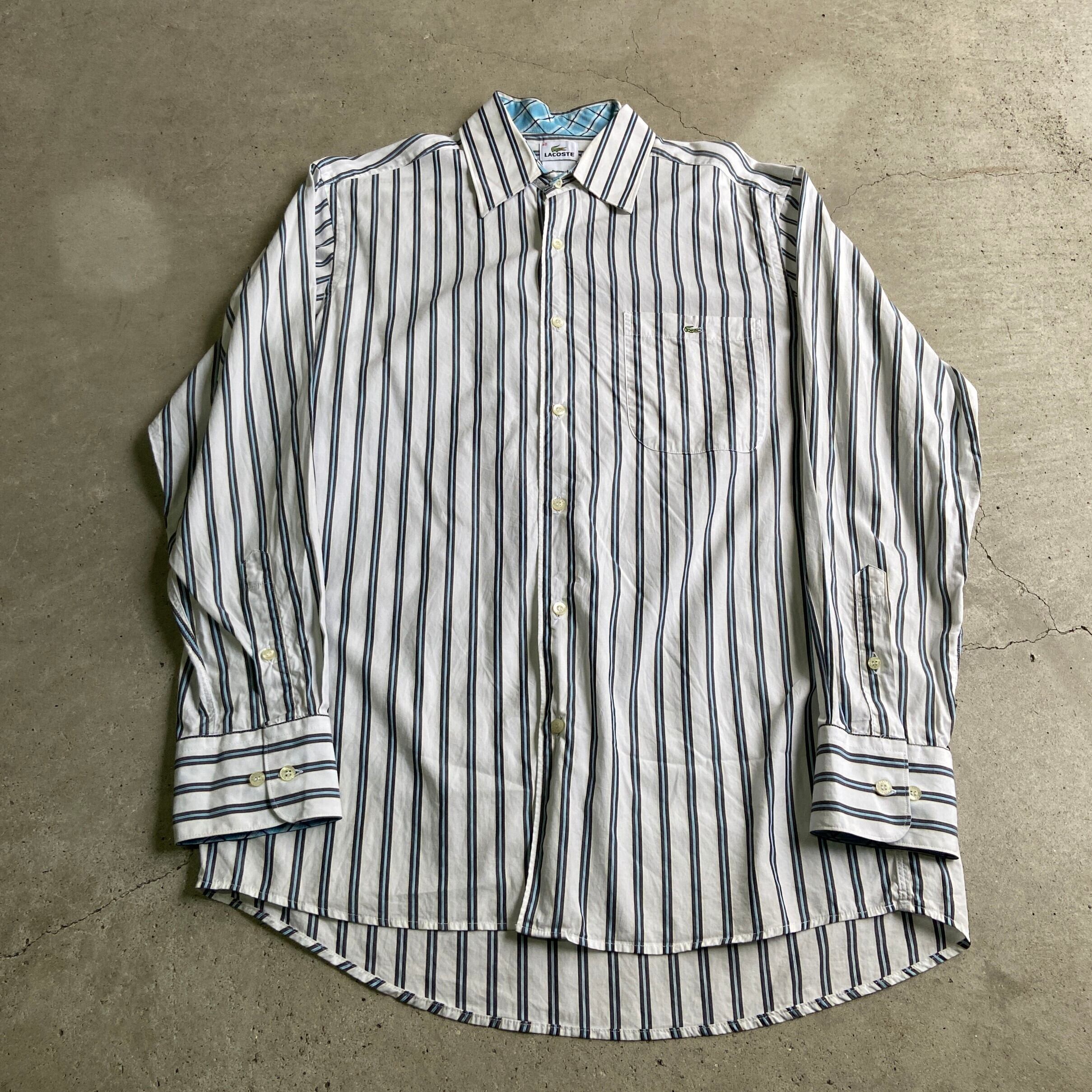 ■90年代 フランス製 LACOSTE ラコステ ボタンダウン ストライプシャツ 長袖シャツ メンズL相当 古着 ホワイト 白 90Sビンテージ ヴィンテージ LACOSTE 【長袖シャツ】