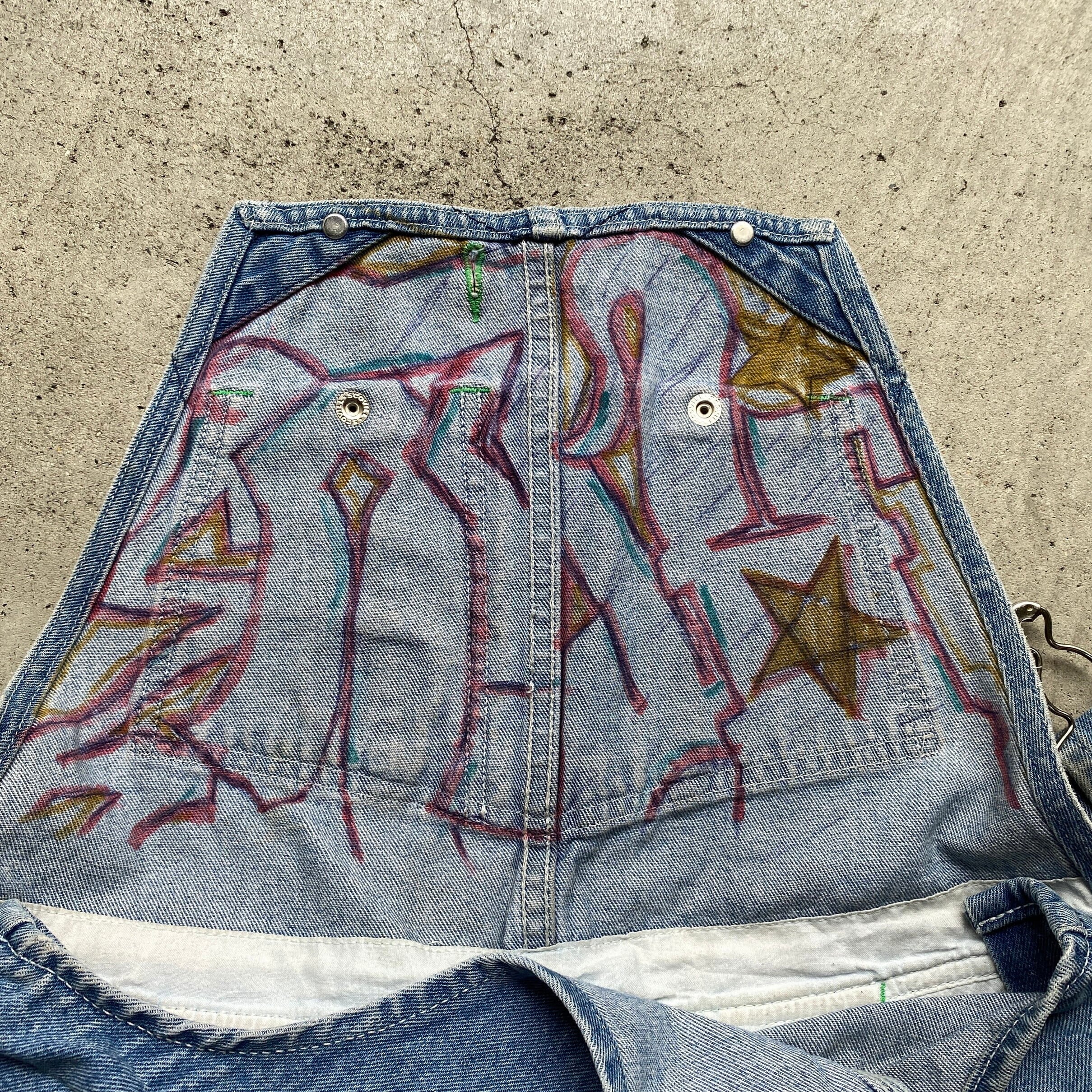 ■80年代 OSHKOSH オシュコシュ デニム オーバーオール メンズW32 ハンドペイント レディース 古着 80s ヴィンテージ ビンテージ 【オーバーオール】