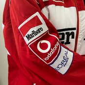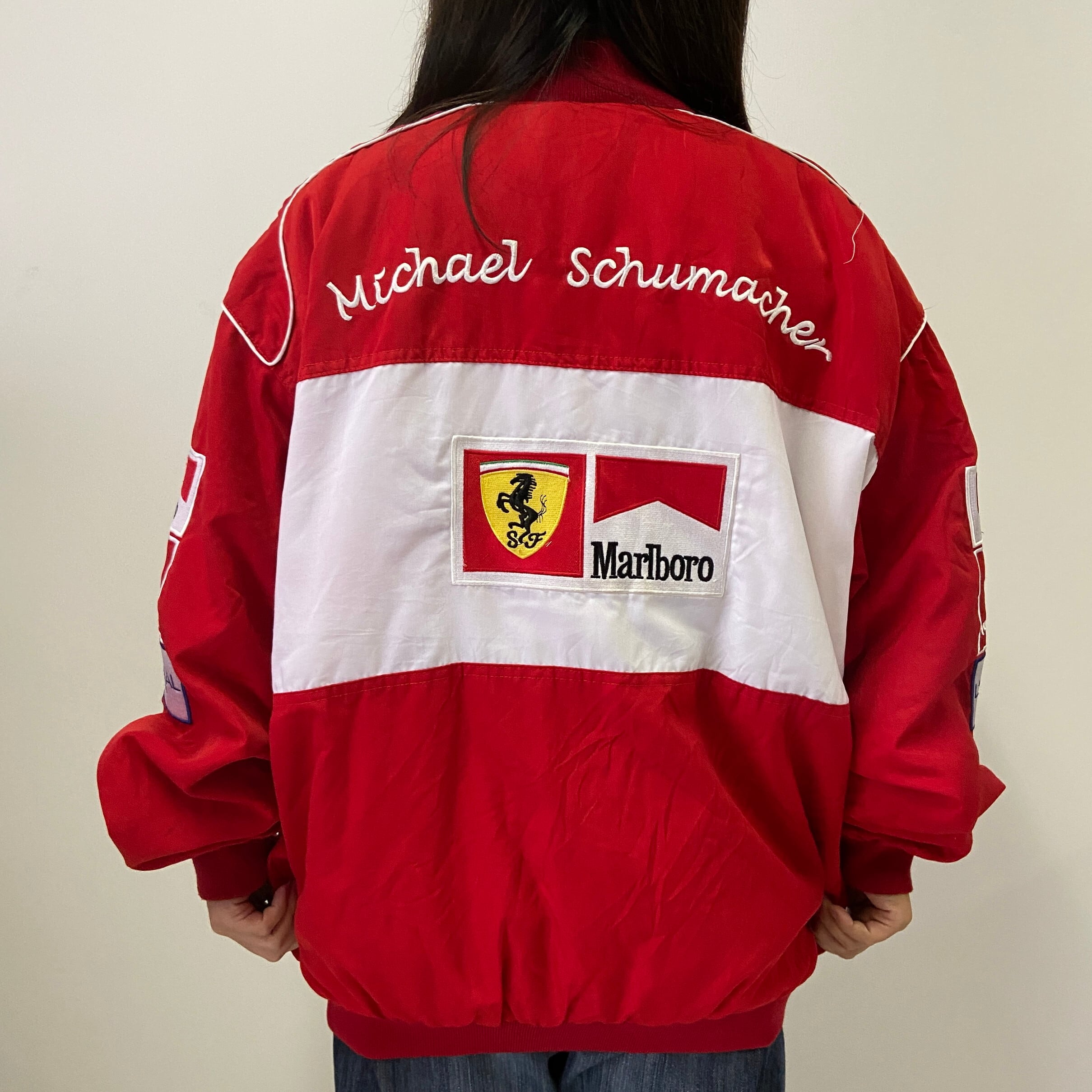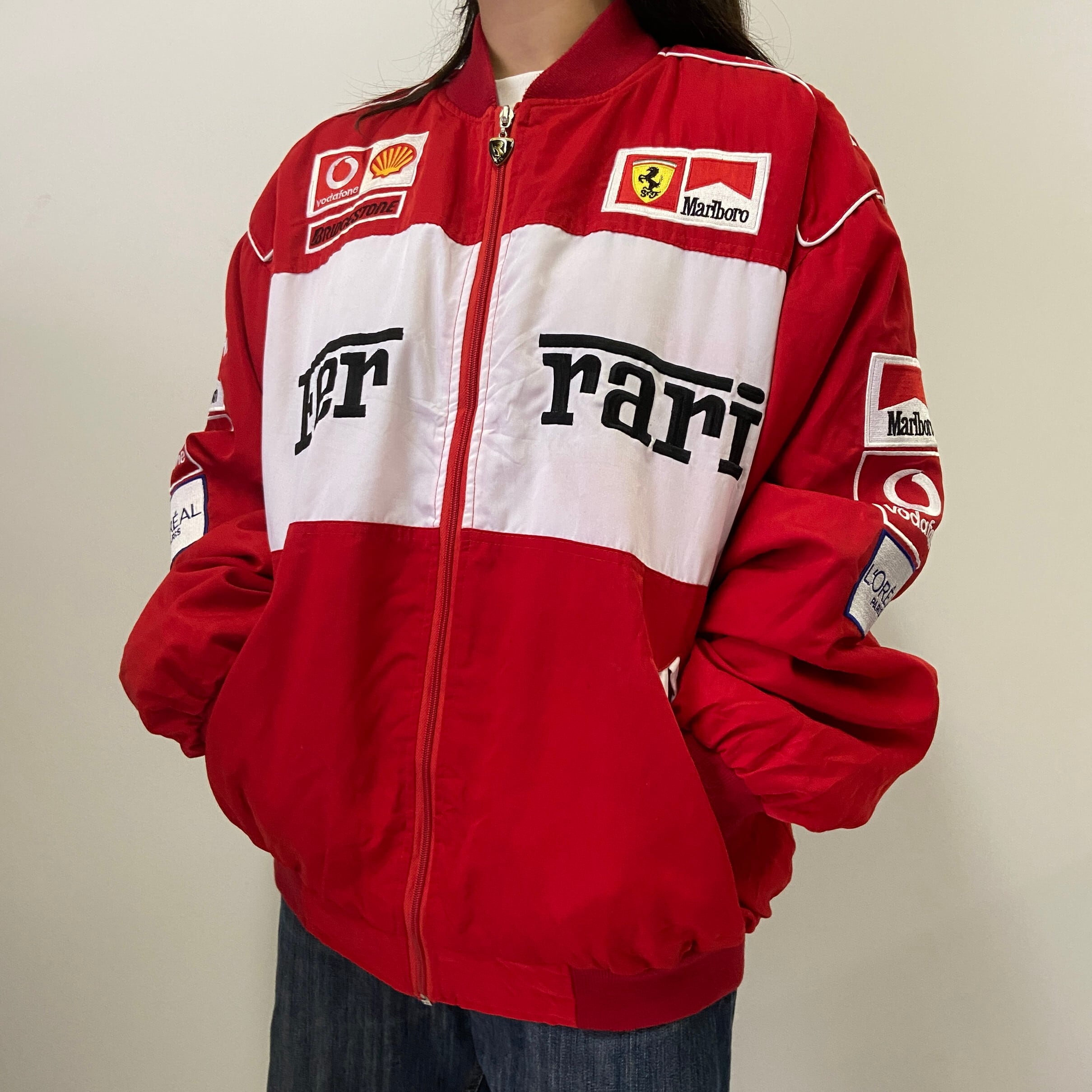 ■90年代 Ferrari フェラーリ オフィシャル レーシング スポーツジャケット メンズL 古着 90s ヴィンテージ ビンテージ 中綿 レッド 赤 ワッペン 企業【ブルゾン・ジャケット】