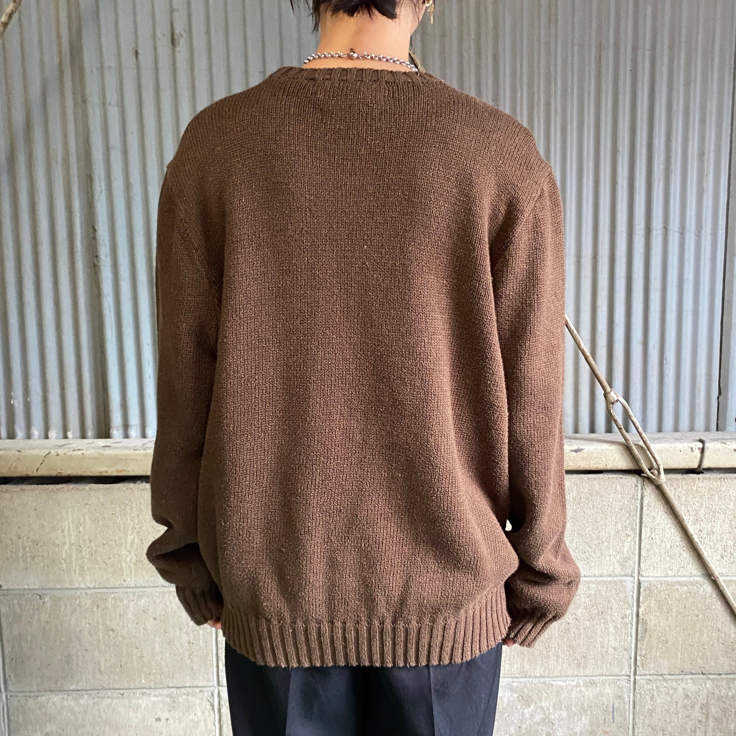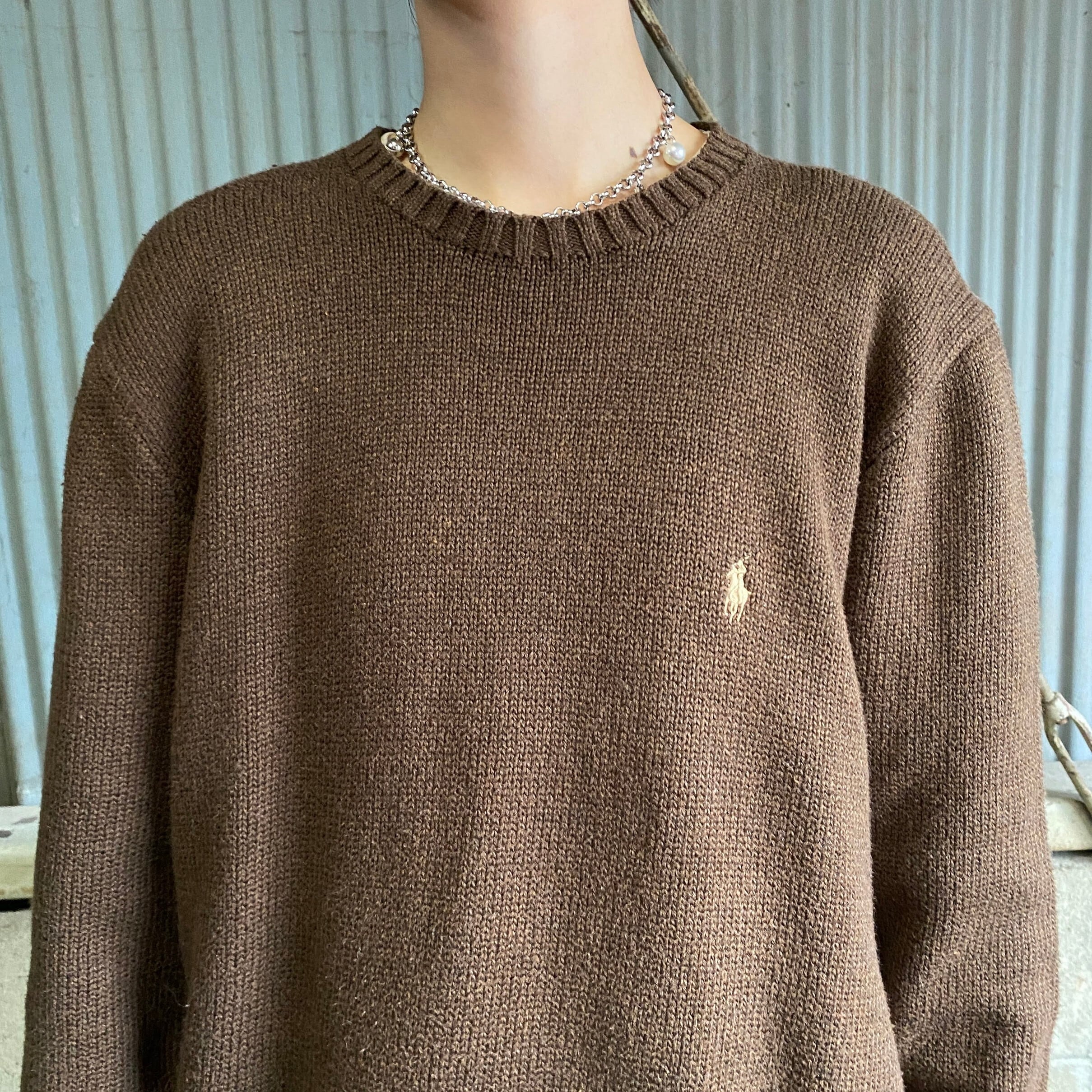 ■Polo by Ralph Lauren ポロバイラルフローレン コットンニットセーター メンズM 古着 ワンポイント刺繍 クルーネック 茶色 ブラウン【ニットセーター】