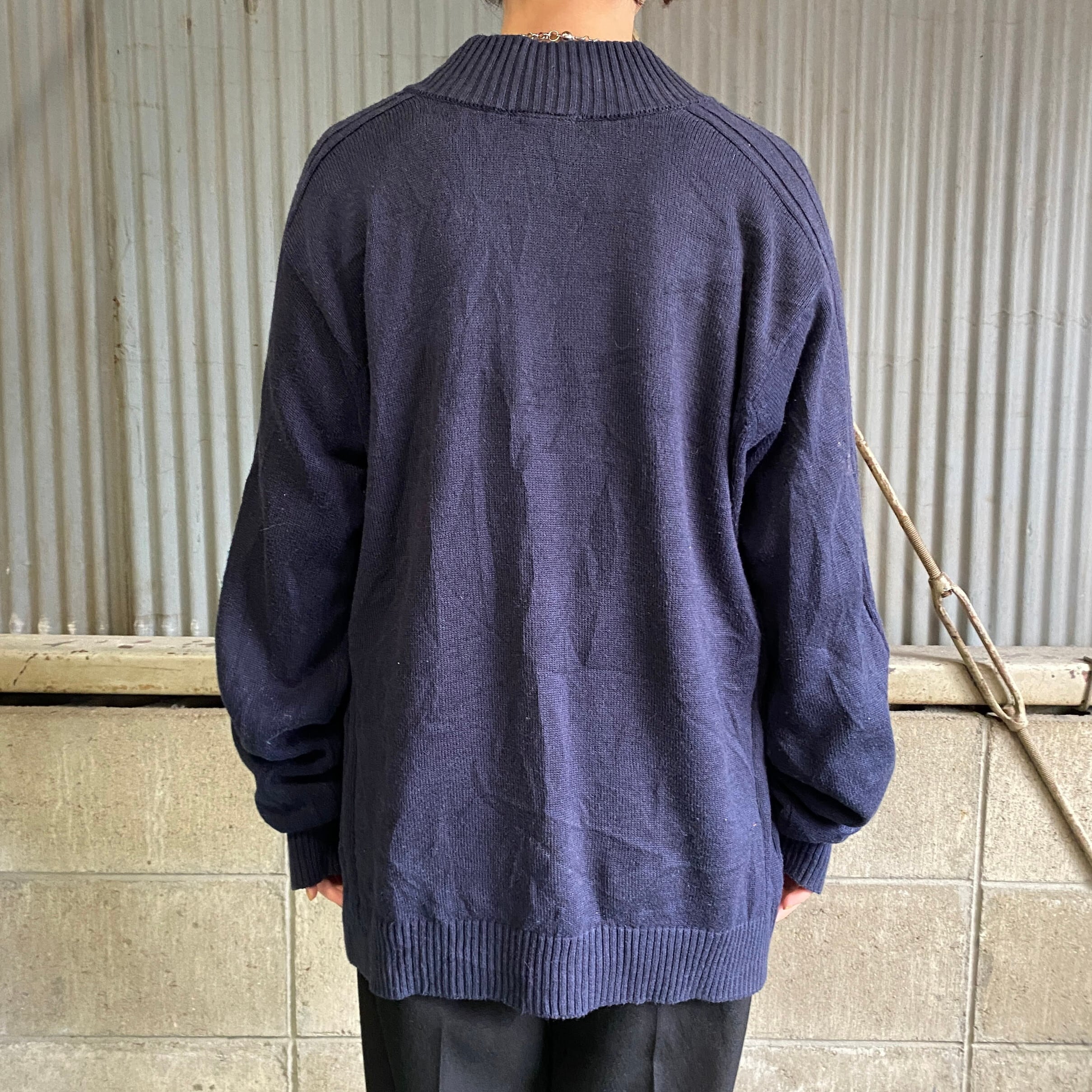 ■LACOSTE ラコステ コットン×アクリル フルジップセーター メンズXL相当 古着 ハイネック リブ編み ネイビー 紺 ダブルジップ ドライバーズニット カーディガン 【ニットセーター】