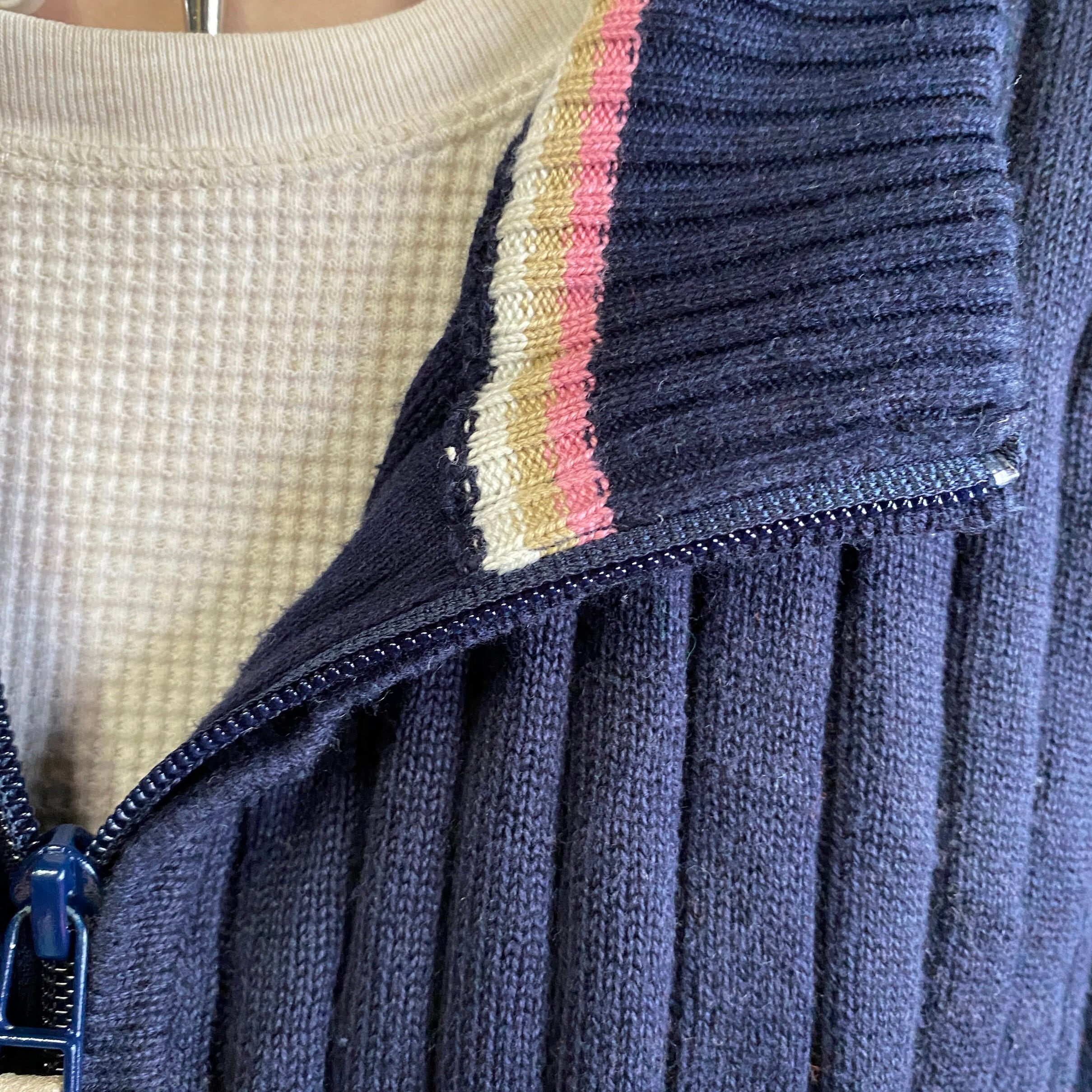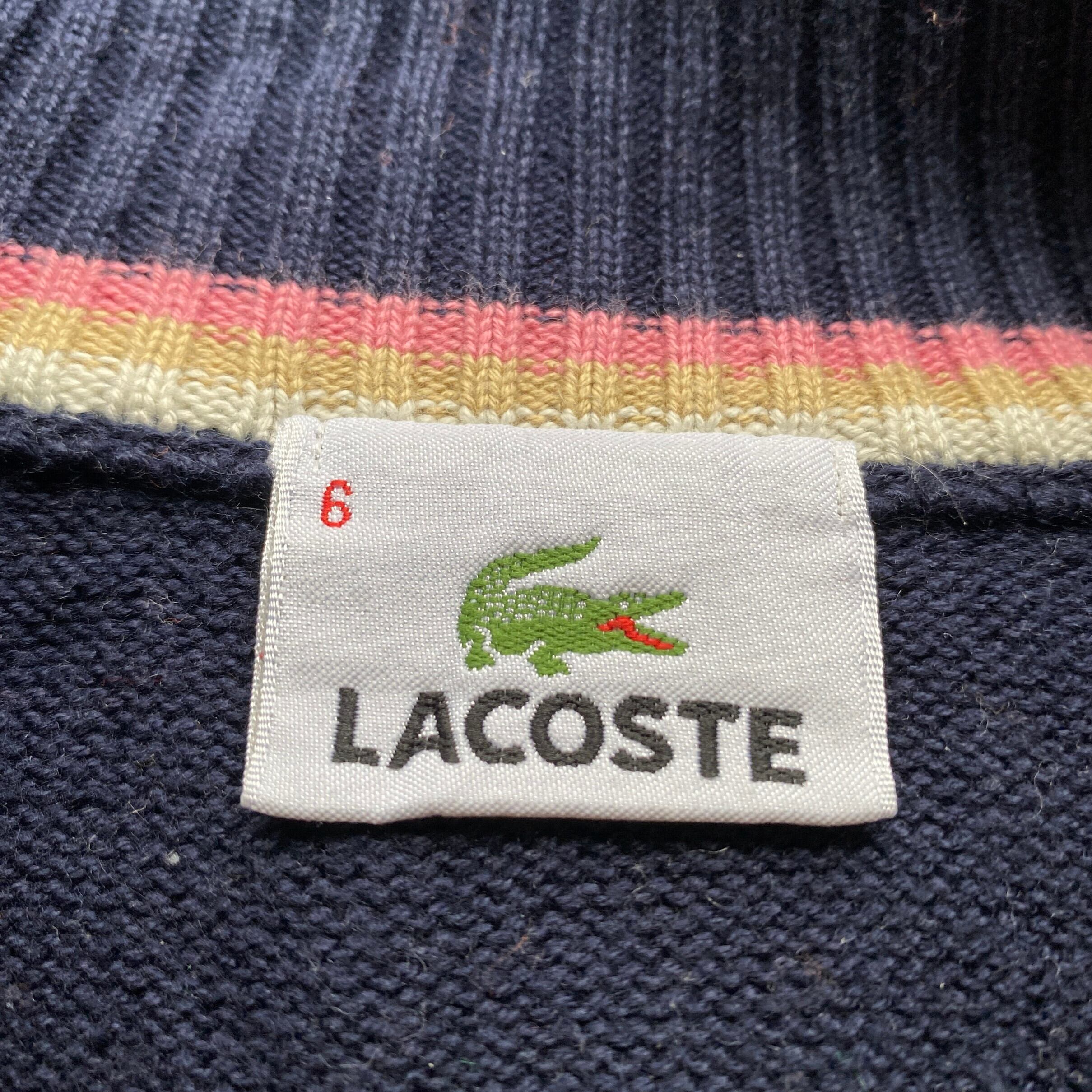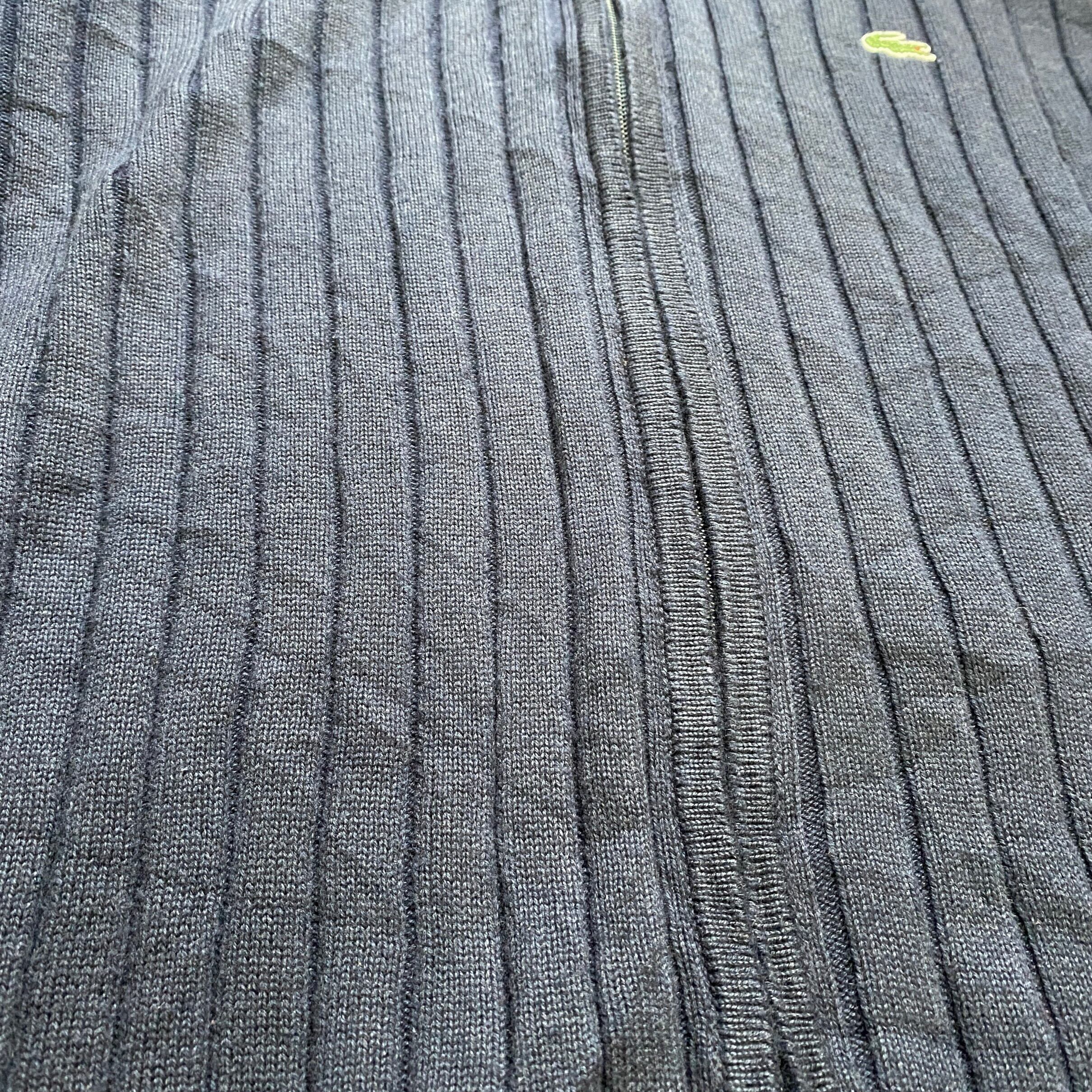 LACOSTE ラコステ コットン×アクリル フルジップセーター メンズXL相当 古着 ハイネック リブ編み ネイビー 紺 ダブルジップ ドライバーズニット カーディガン 【ニットセーター】【CS2301-30】