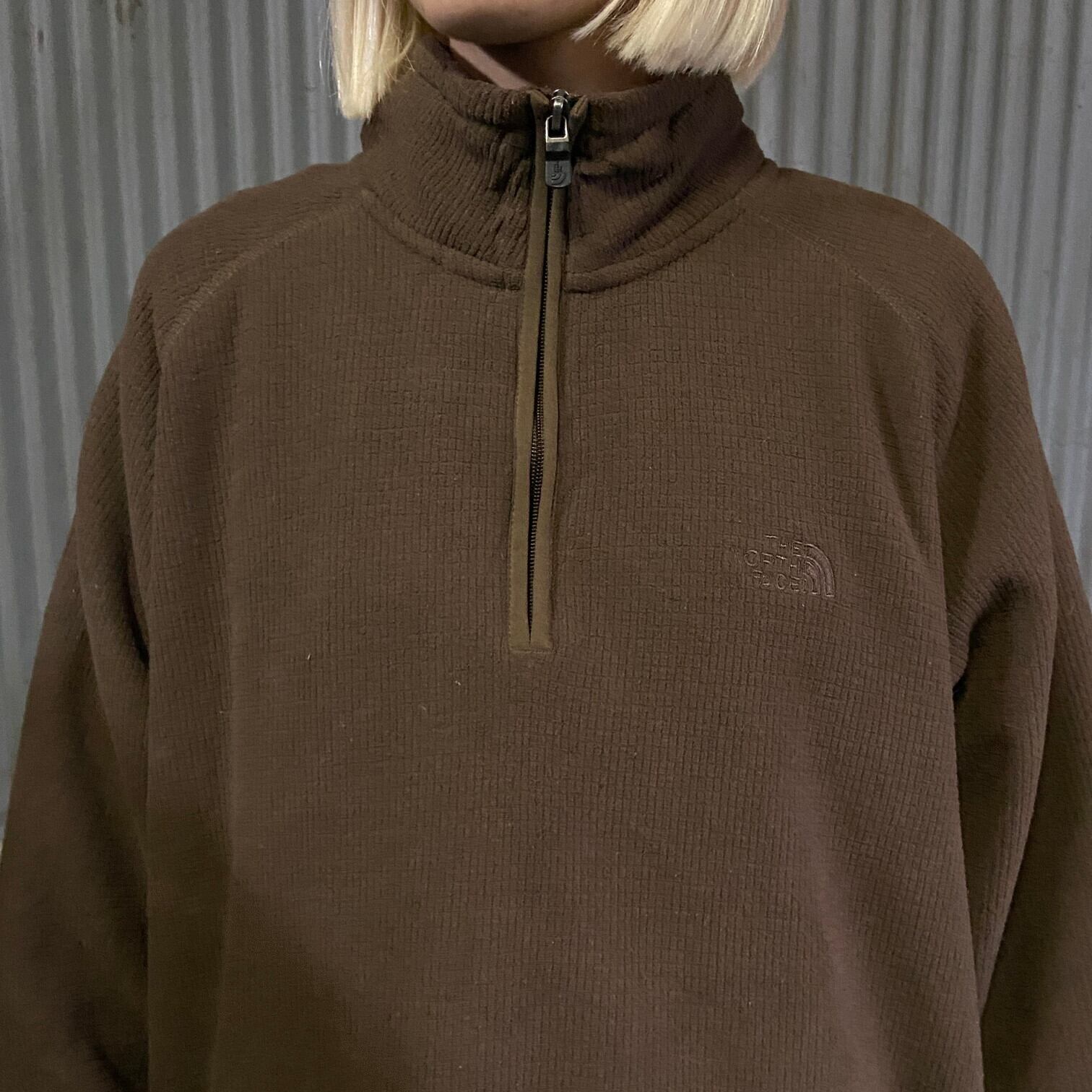 ■THE NORTH FACE ザ ノースフェイス AP9V ハーフジップ フリースジャケット メンズL 古着 プルオーバー ブラウン 茶色 ワッフル地【アウトドアジャケット】