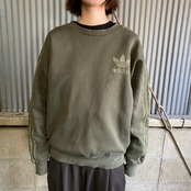 ■ adidas アディダス ワンポイントロゴ 3ライン スウェット メンズL相当 トレフォイルロゴ 古着トレーナーグリーン 緑 【スウェット】
