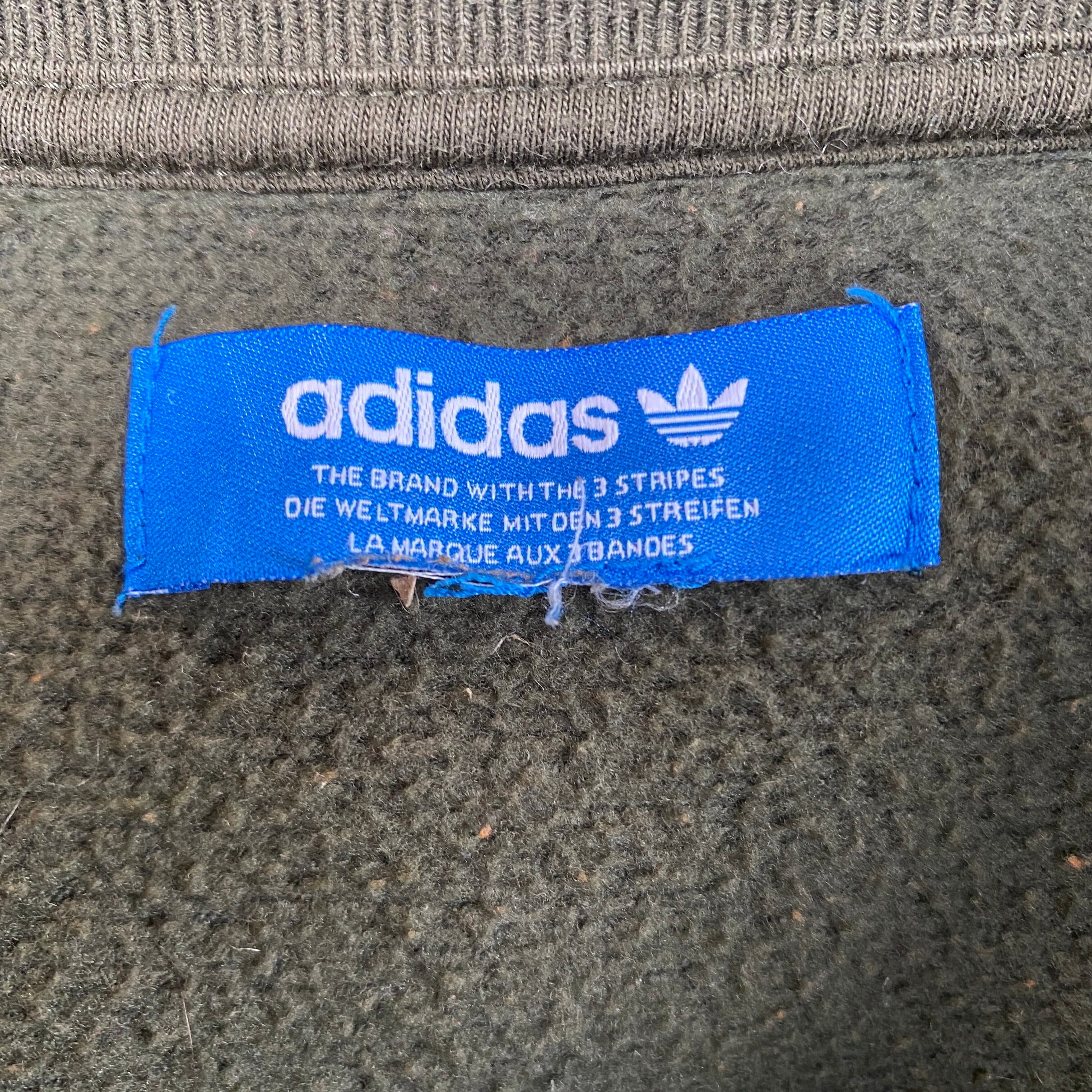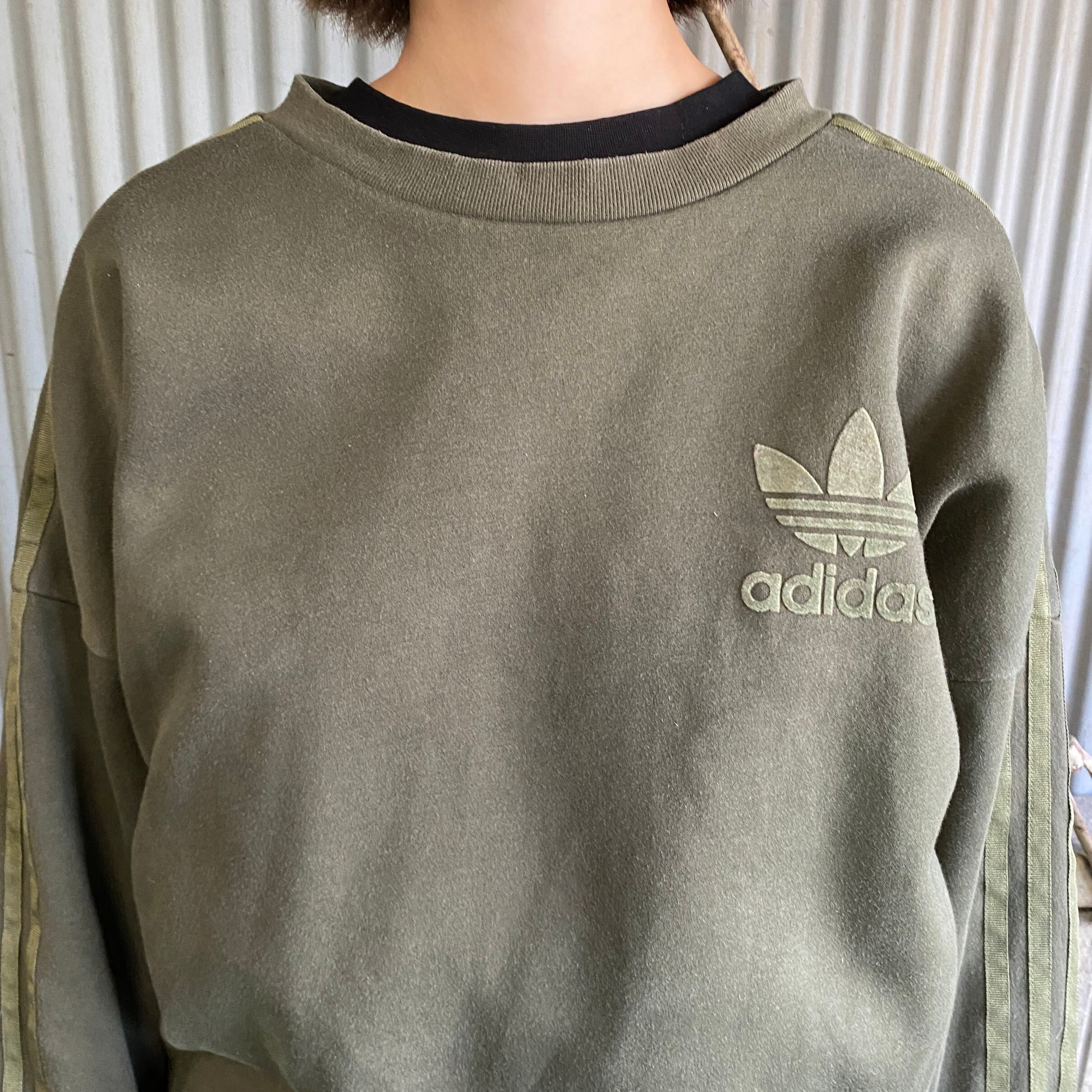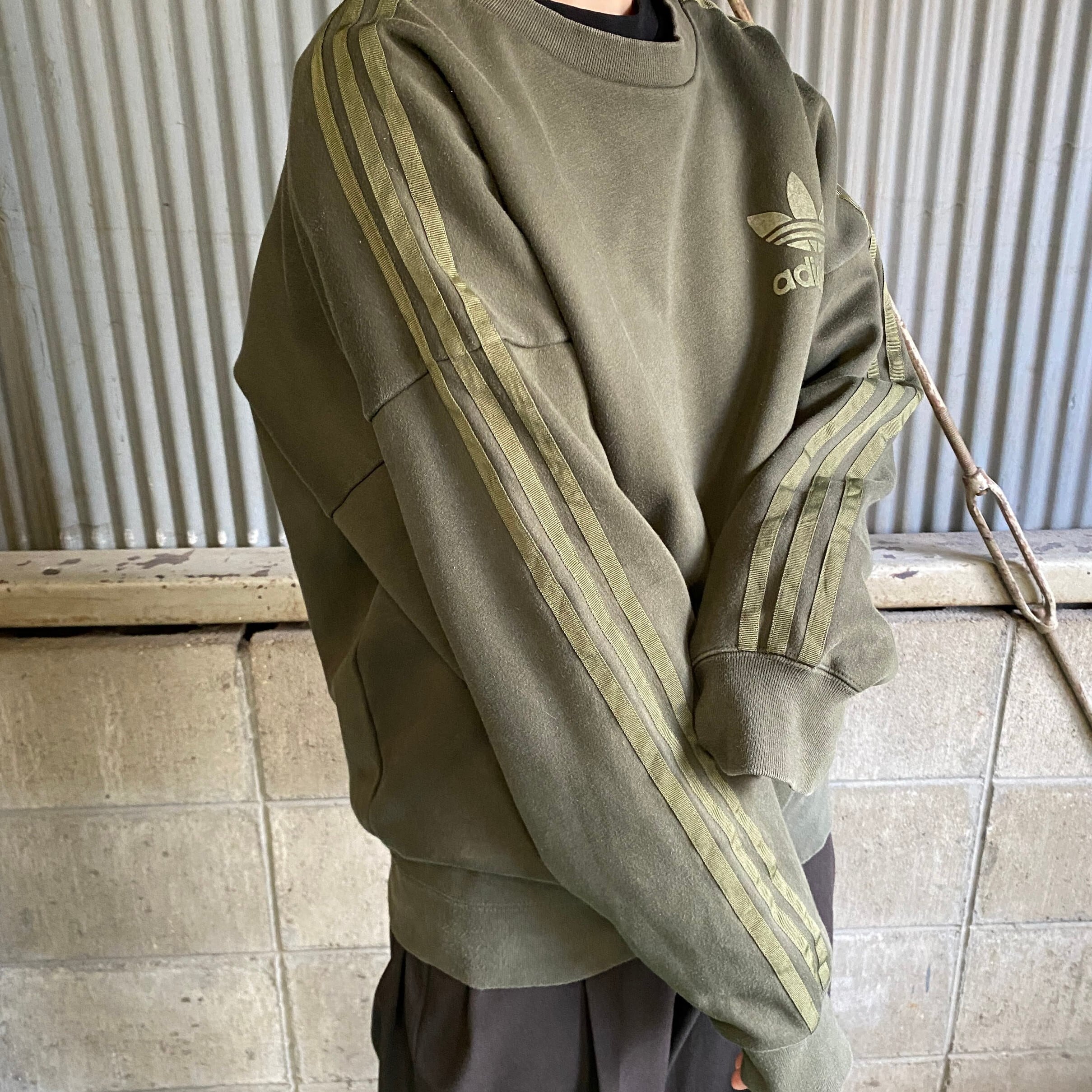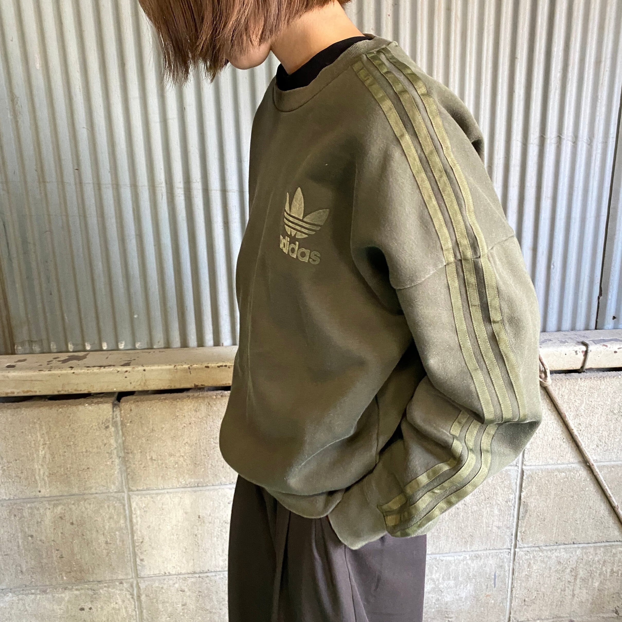 adidas アディダス ワンポイントロゴ 3ライン スウェット メンズL相当 トレフォイルロゴ 古着トレーナーグリーン 緑 【スウェット】