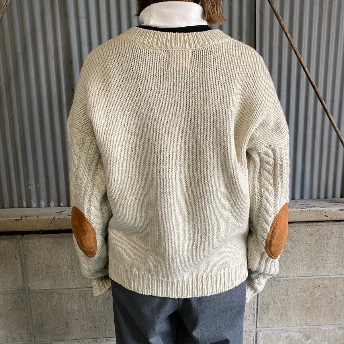 80年代 CAPE ISLE KNITTERS ケーブルニット カーディガン メンズM 古着 80s ビンテージ ヴィンテージ エルボーパッチ ベージュ 【ニットセーター】