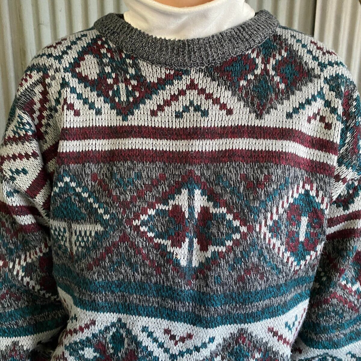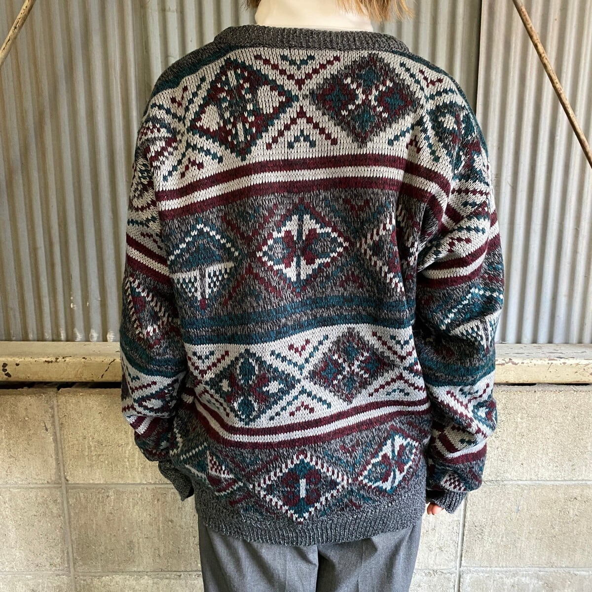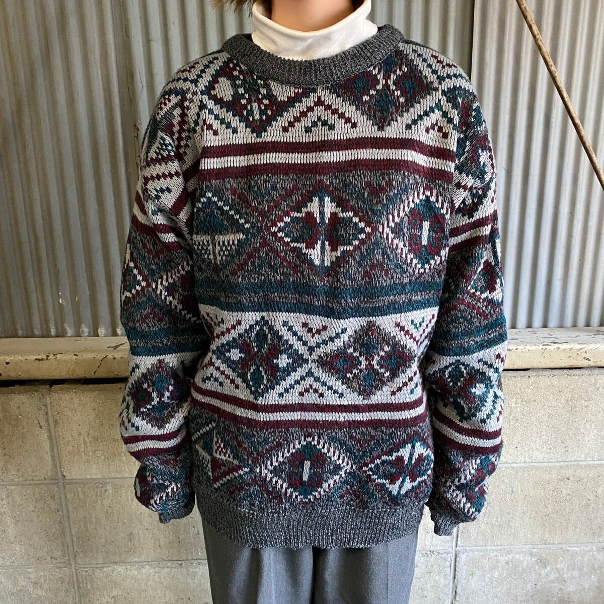 TRADITIONS 総柄 アクリルニットセーター メンズM 古着 マルチカラー フェアアイル柄 【ニットセーター】【SS2401-50】