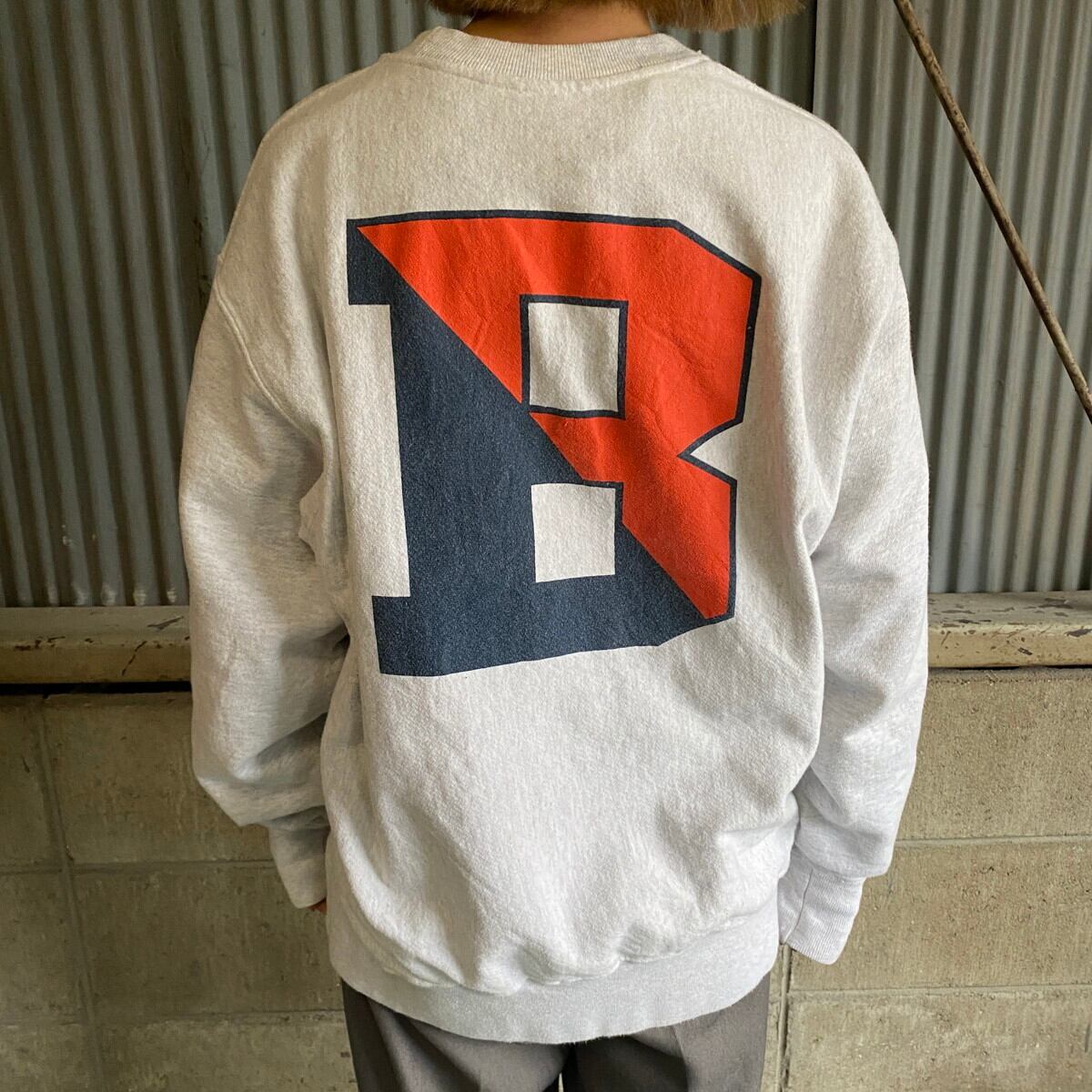 ■Champion チャンピオン カレッジロゴプリント リバースウィーブ メンズM 古着 復刻単色タグ REVERSE WEAVE スウェット バックプリント トレーナー ライトグレー 灰色 【スウェット】