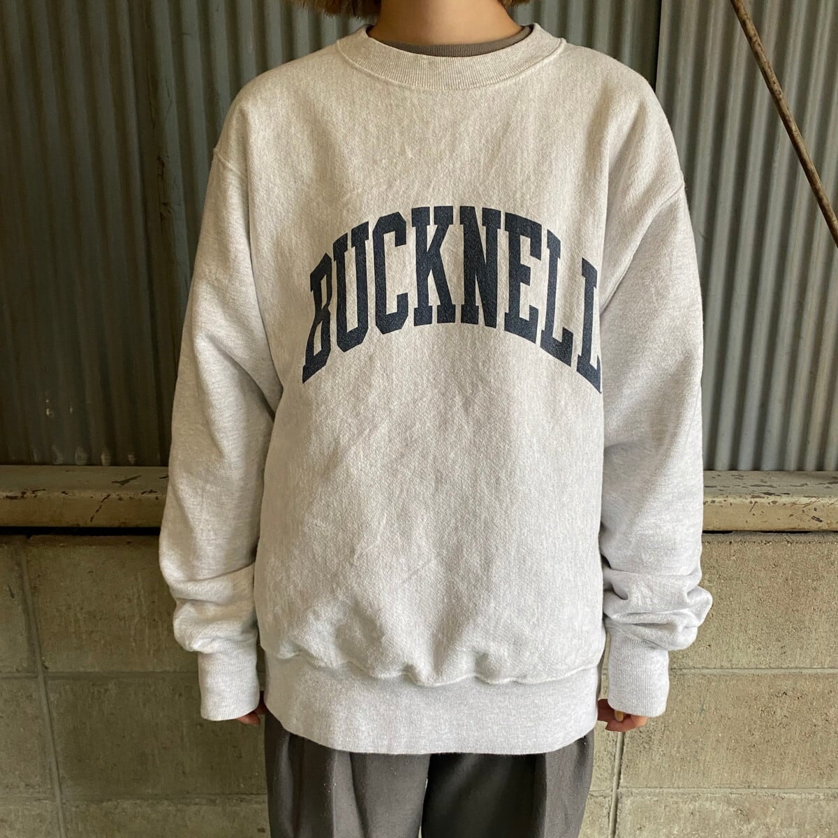 Champion チャンピオン カレッジロゴプリント リバースウィーブ メンズM 古着 復刻単色タグ REVERSE WEAVE スウェット バックプリント トレーナー ライトグレー 灰色 【スウェット】