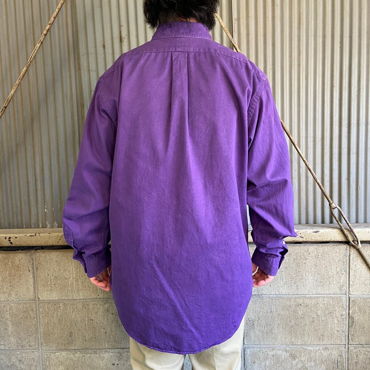 ■Ralph Lauren ラルフローレン 長袖 ボタンダウンシャツ メンズL 古着 パープル 紫【長袖シャツ】