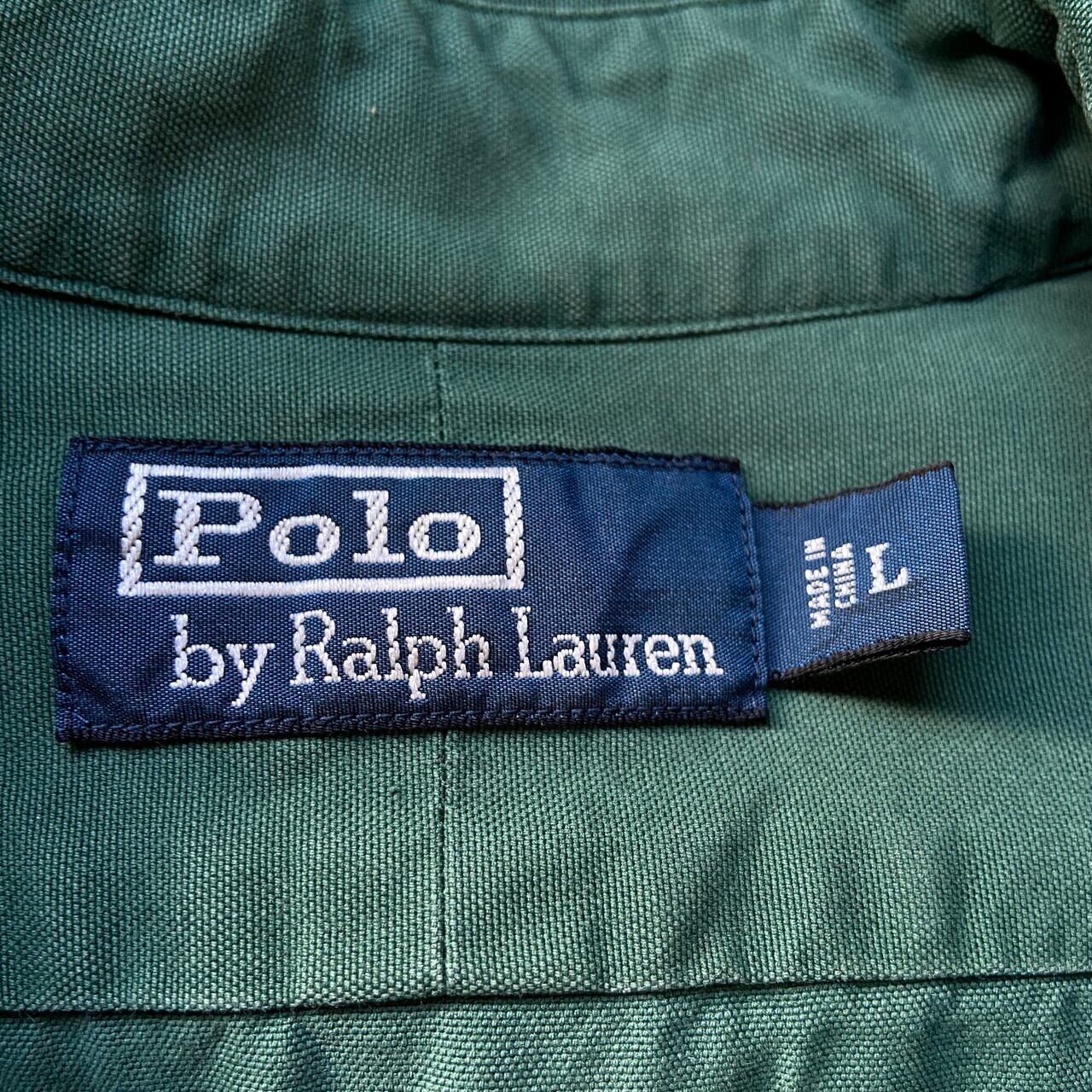 ■ RALPH LAUREN ラルフローレン フラップポケット 長袖 コットンシャツ メンズXL相当 古着 90s ビンテージ ヴィンテージ グリーン 緑色 【長袖シャツ】