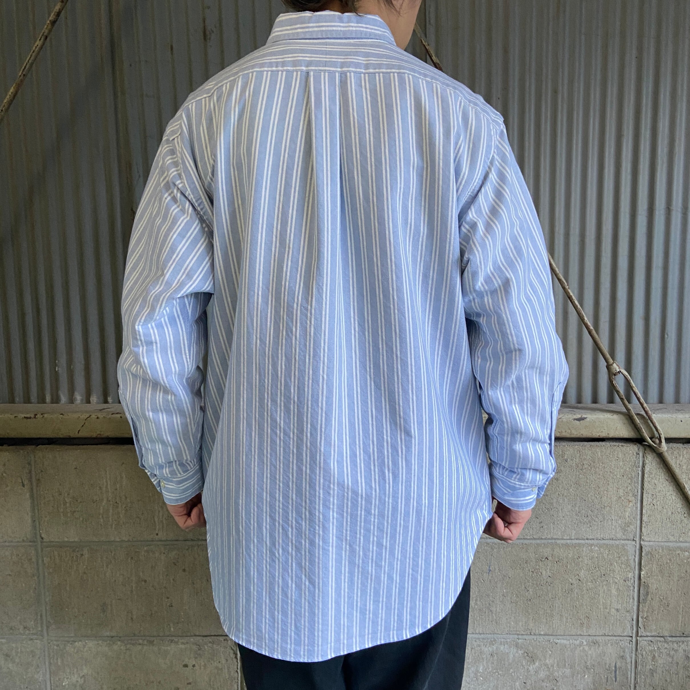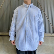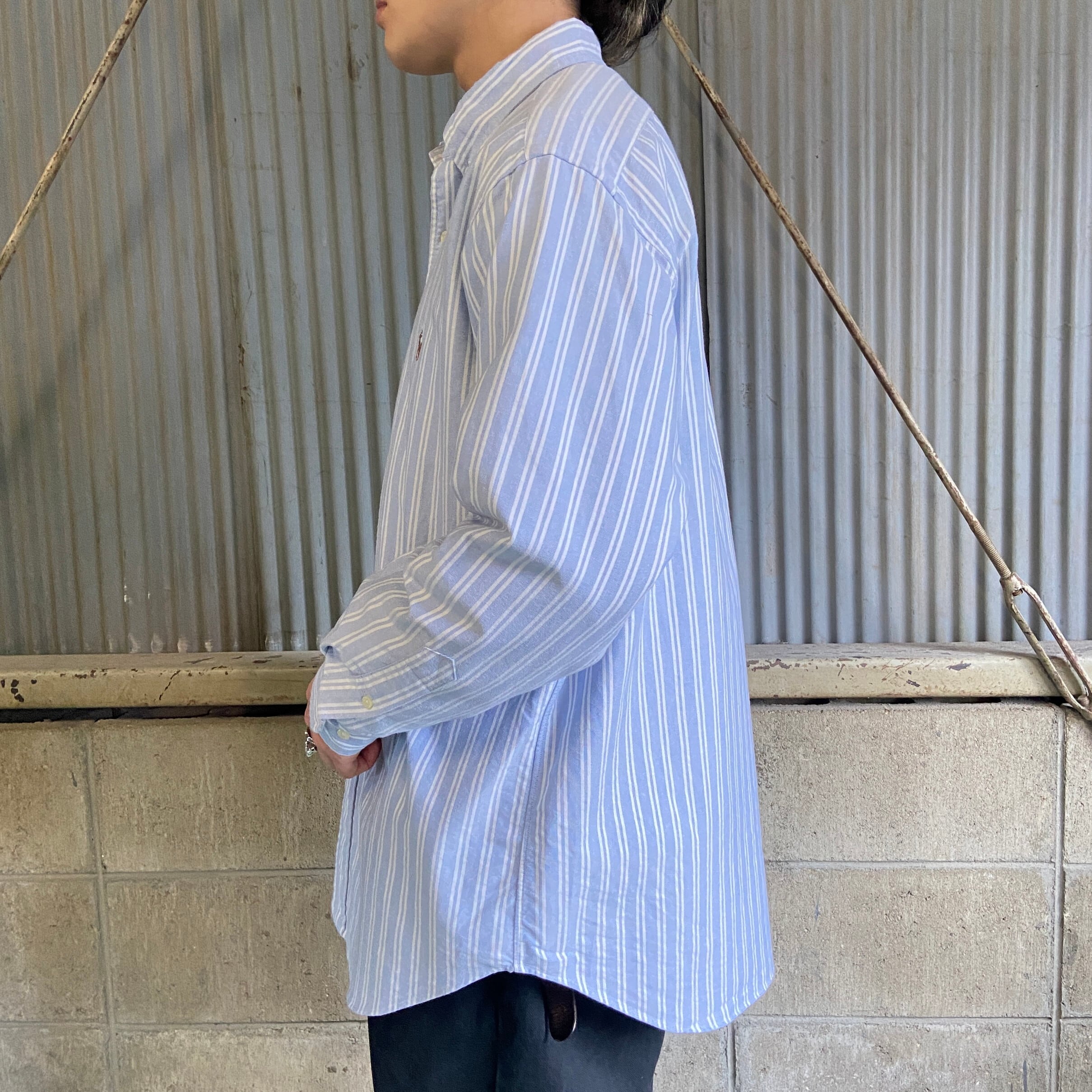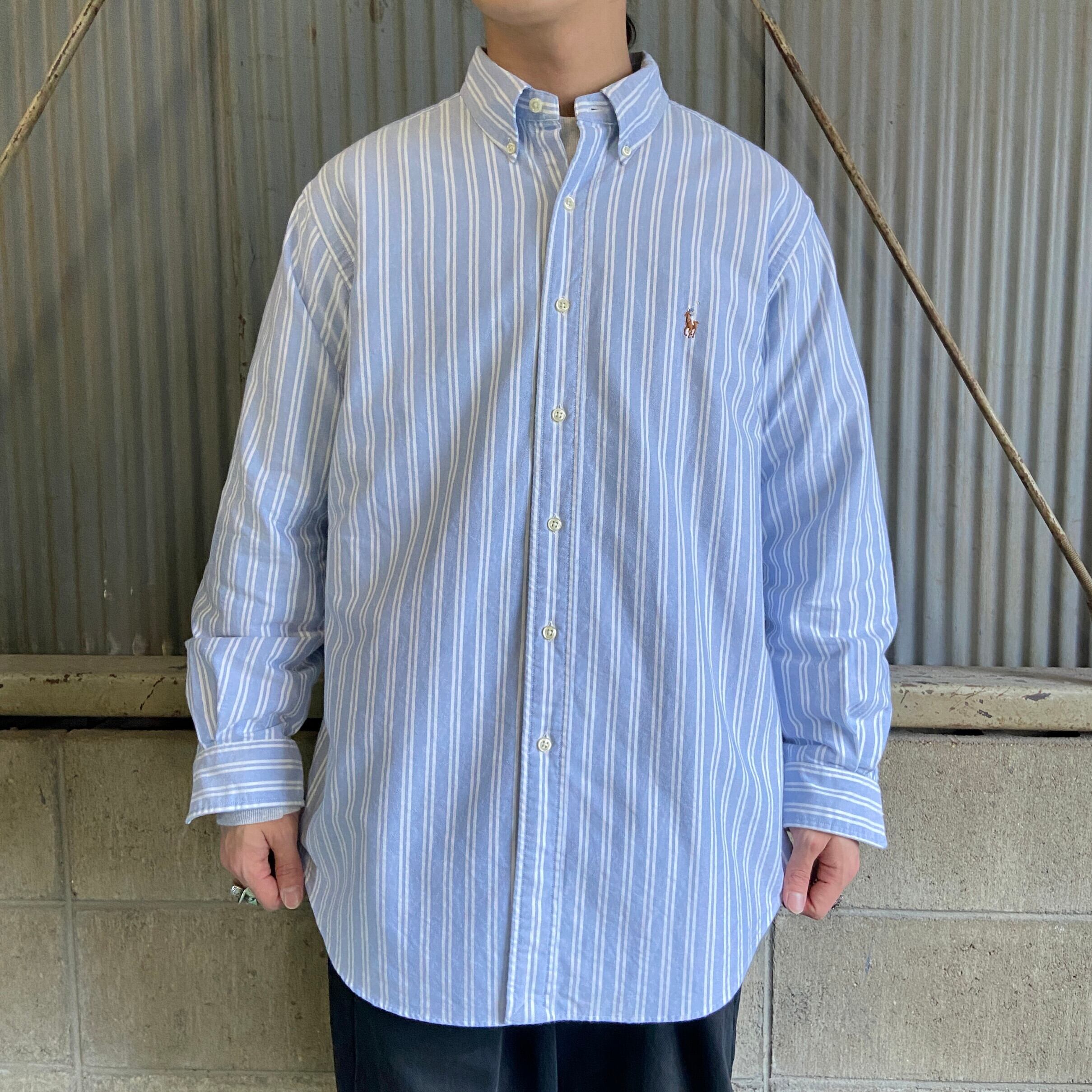 ■Ralph Lauren ラルフローレン CLASSIC FIT ストライプシャツ メンズXL相当 古着 ボタンダウンシャツ ライトブルー 水色 ビッグサイズ 大きいサイズ【長袖シャツ】