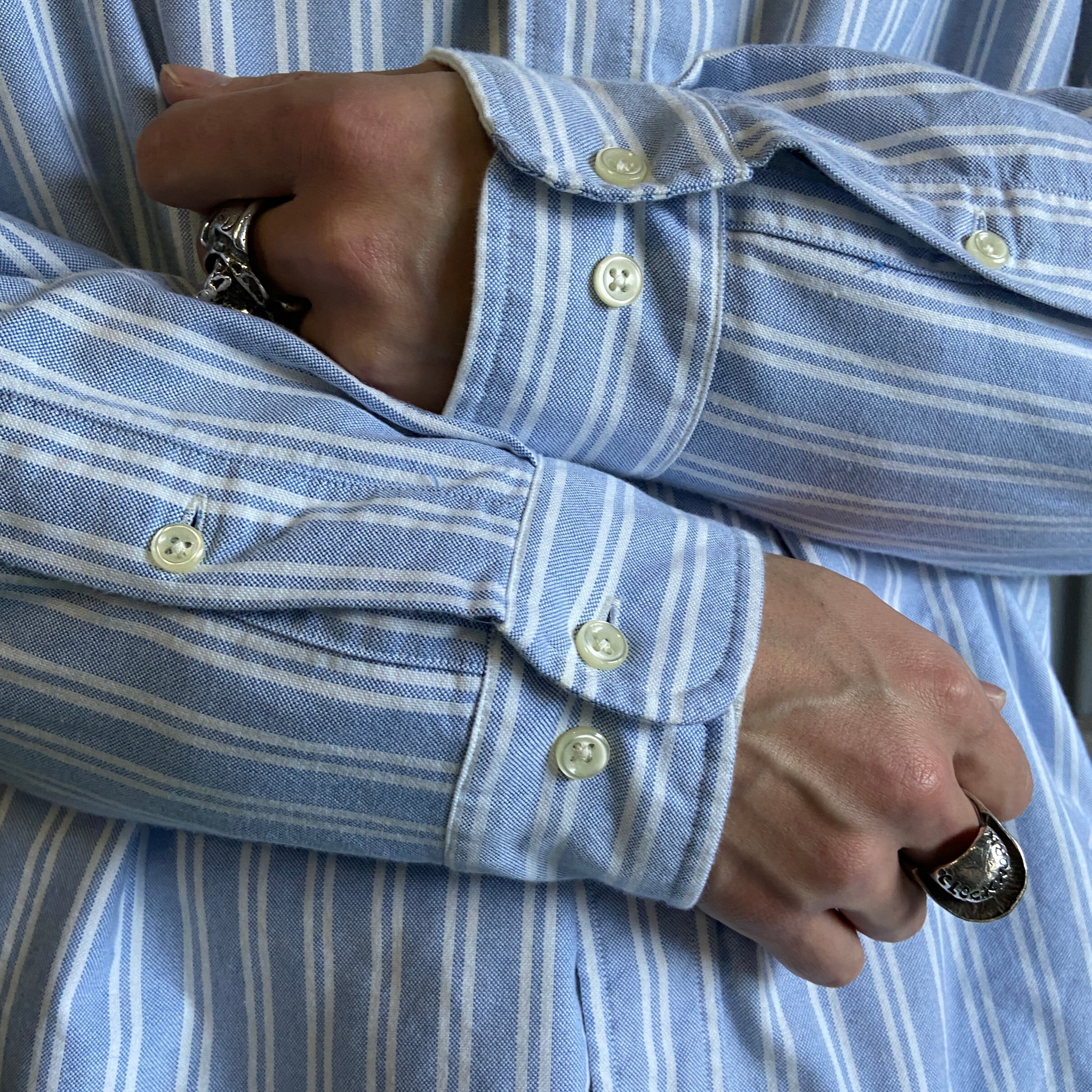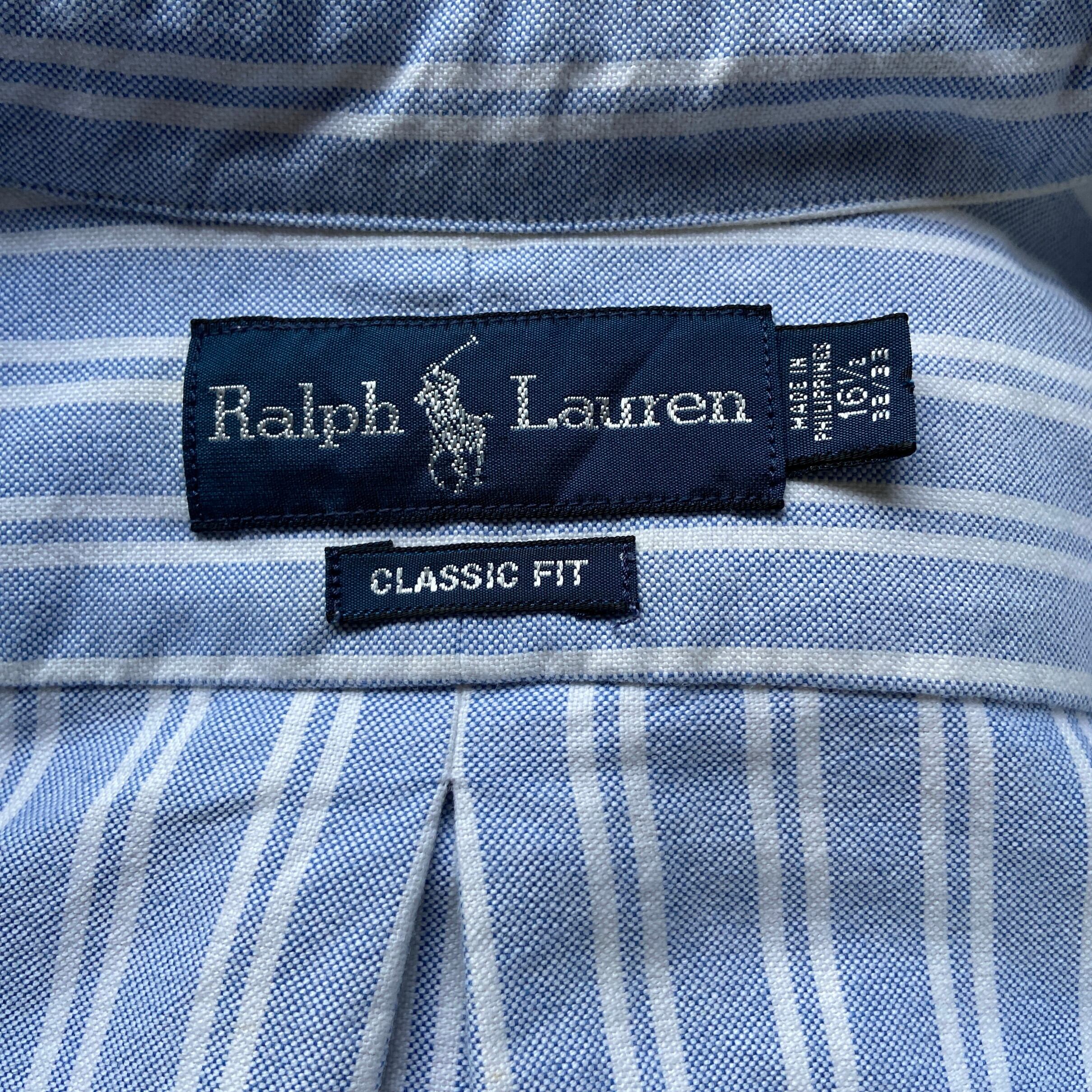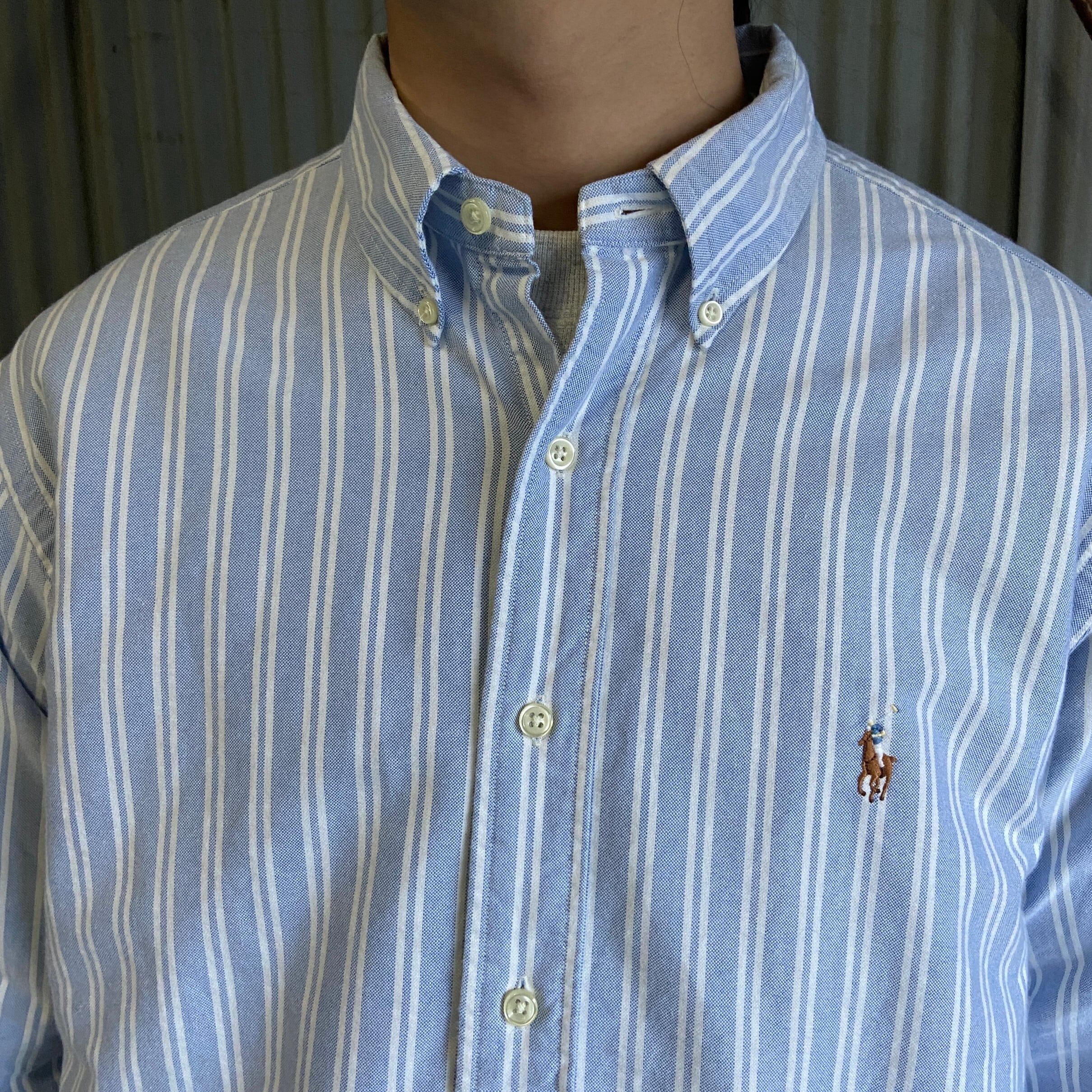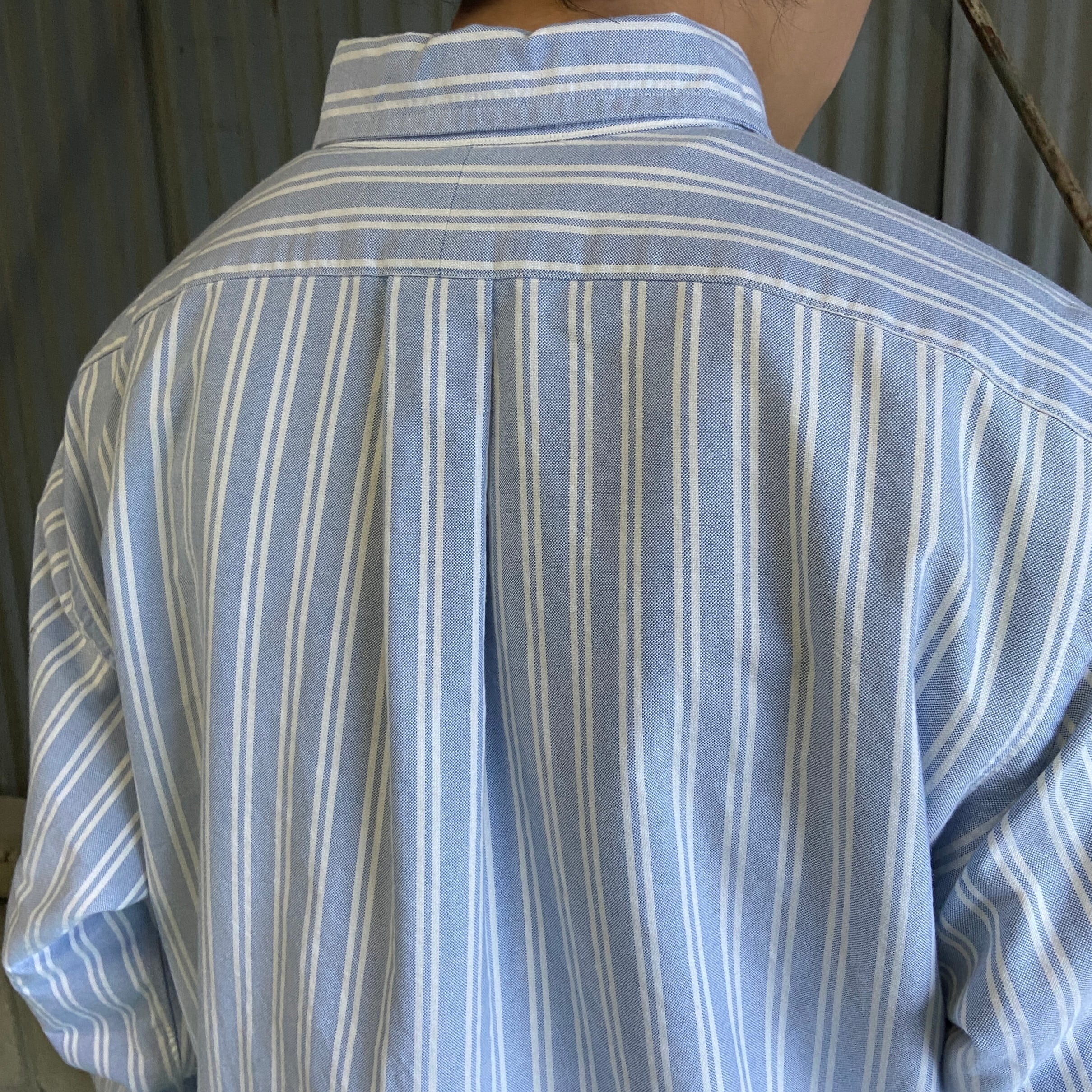 ■Ralph Lauren ラルフローレン CLASSIC FIT ストライプシャツ メンズXL相当 古着 ボタンダウンシャツ ライトブルー 水色 ビッグサイズ 大きいサイズ【長袖シャツ】