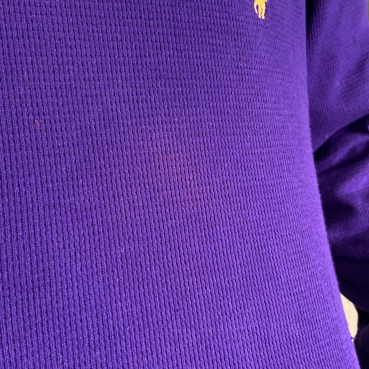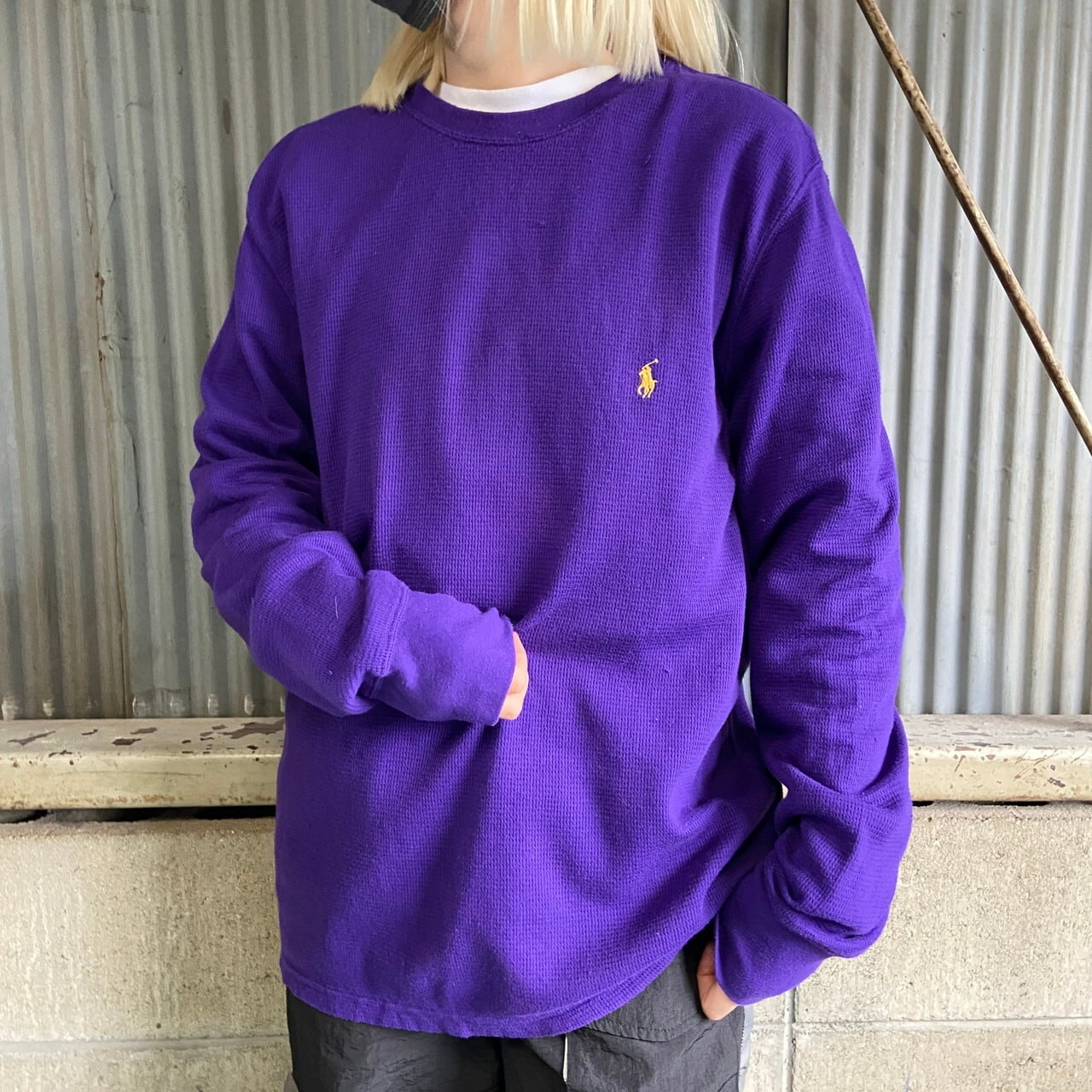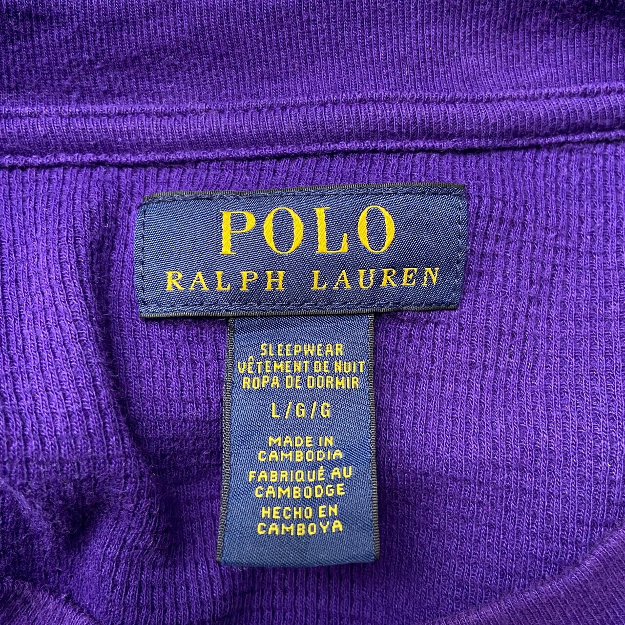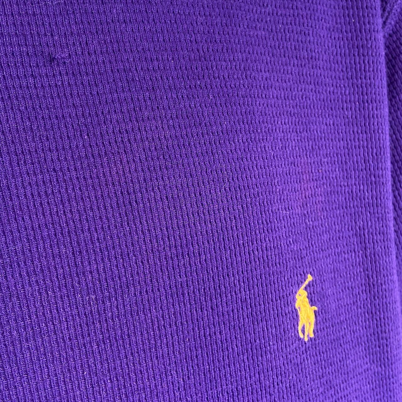 ■POLO RALPH LAUREN ラルフローレン ワンポイントロゴ サーマルロングTシャツ ロンT メンズL 古着 ワッフル地 長袖Tシャツ パープル 紫色【ロングTシャツ】