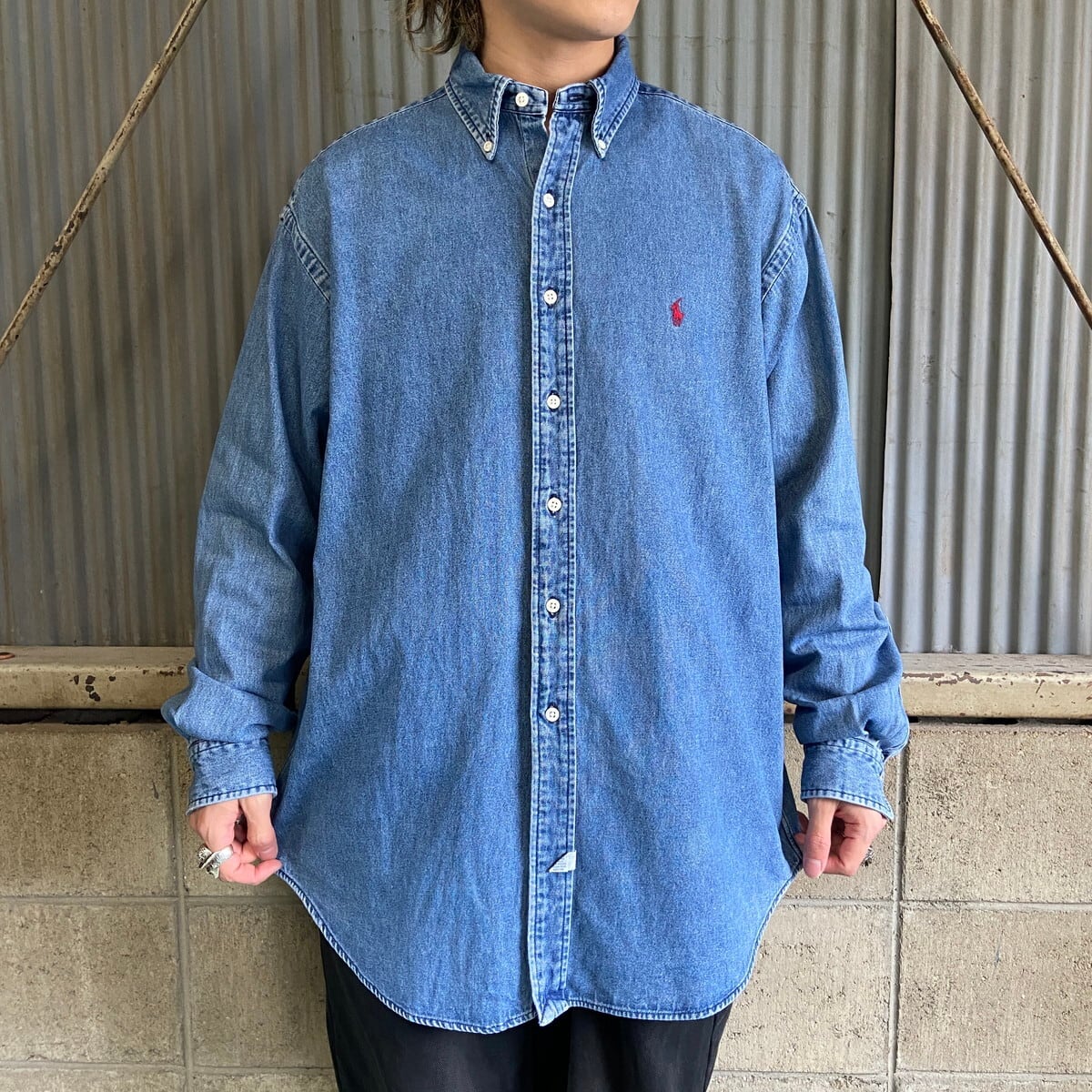 Ralph Lauren オールドラルフローレン 長袖 デニムシャツ メンズXL相当 古着 ボタンダウン B.D.シャツ ワンポイントロゴ刺繍 【長袖シャツ】