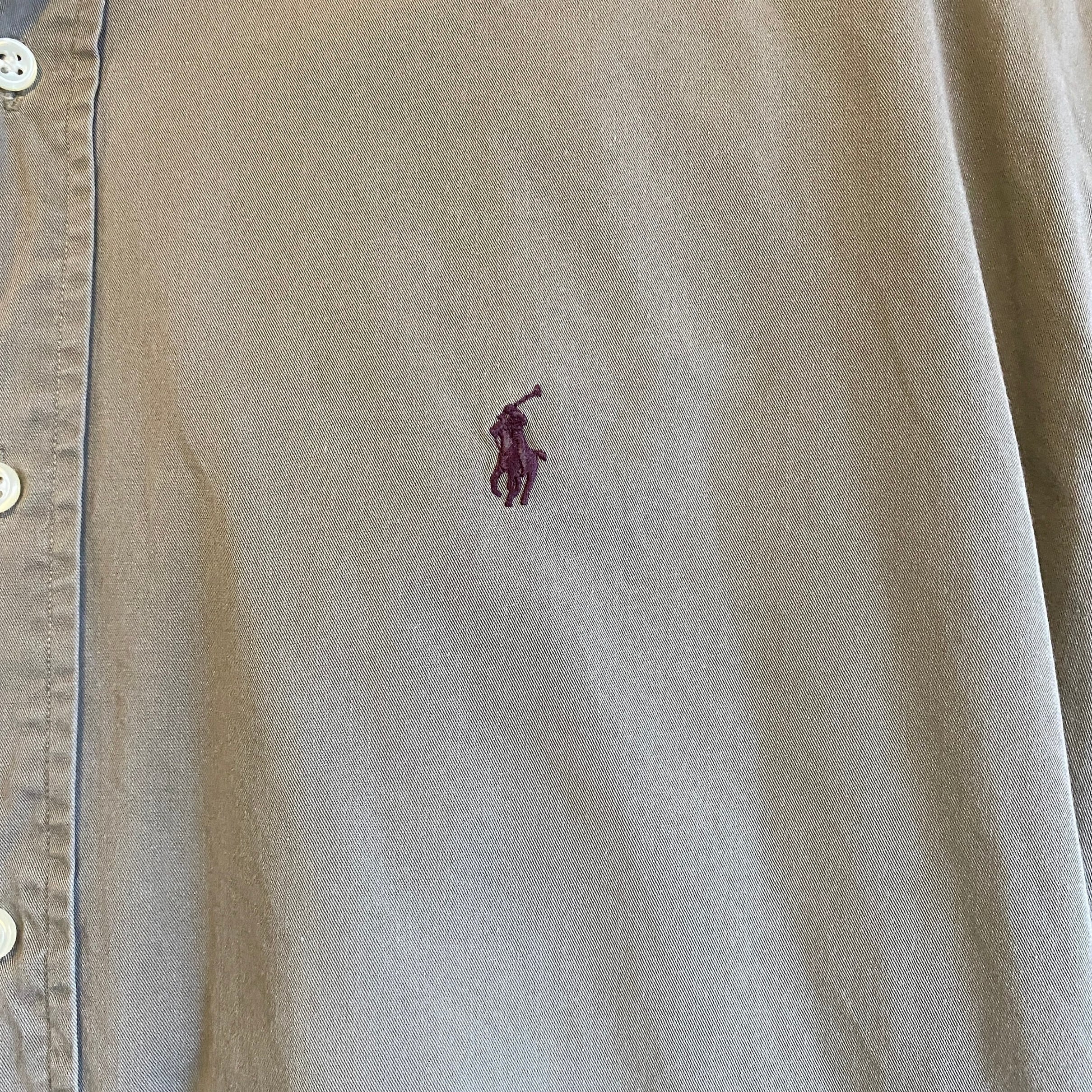 ■ビッグサイズ 90年代 Ralph Lauren ラルフローレン BLAKE ボタンダウンシャツ メンズ2XL 古着 ブラウン 茶色 オールドラルフローレン 90s ビンテージ ヴィンテージ 大きいサイズ【長袖シャツ】