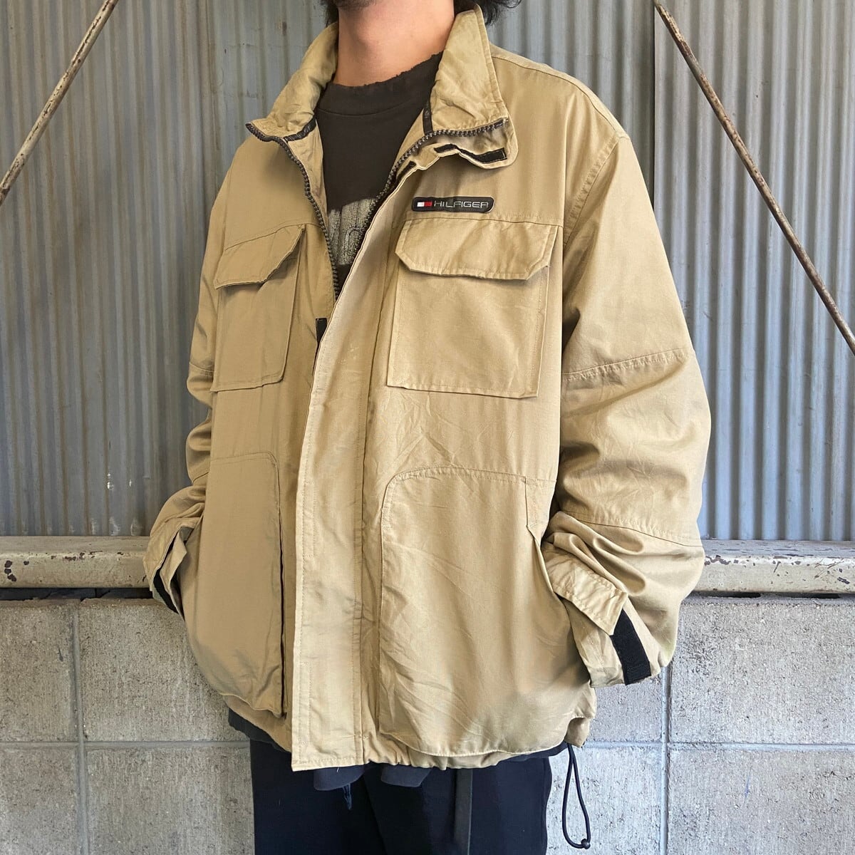 ■90年代 TOMMY HILFIGER トミーヒルフィガー ナイロン アウトドアジャケット メンズL 古着 90s ヴィンテージ ビンテージ ベージュ【ナイロンジャケット】