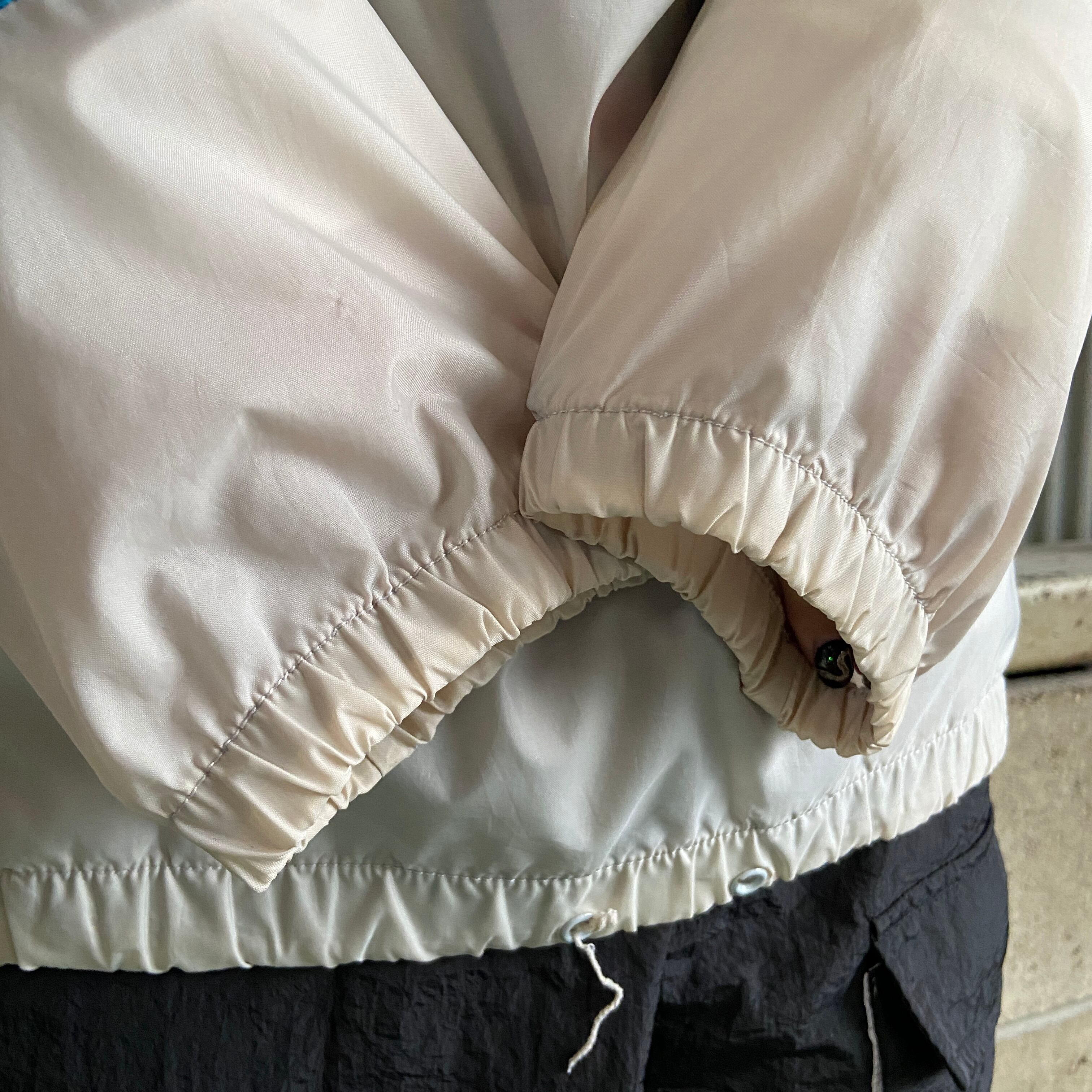 80年代 adidas アディダス ハーフジップ プルオーバー ナイロンジャケット レディースL 古着 80s ビンテージ ヴィンテージ ライトグレー×ネイビー×ライトブルー フード収納型 【ナイロンジャケット】