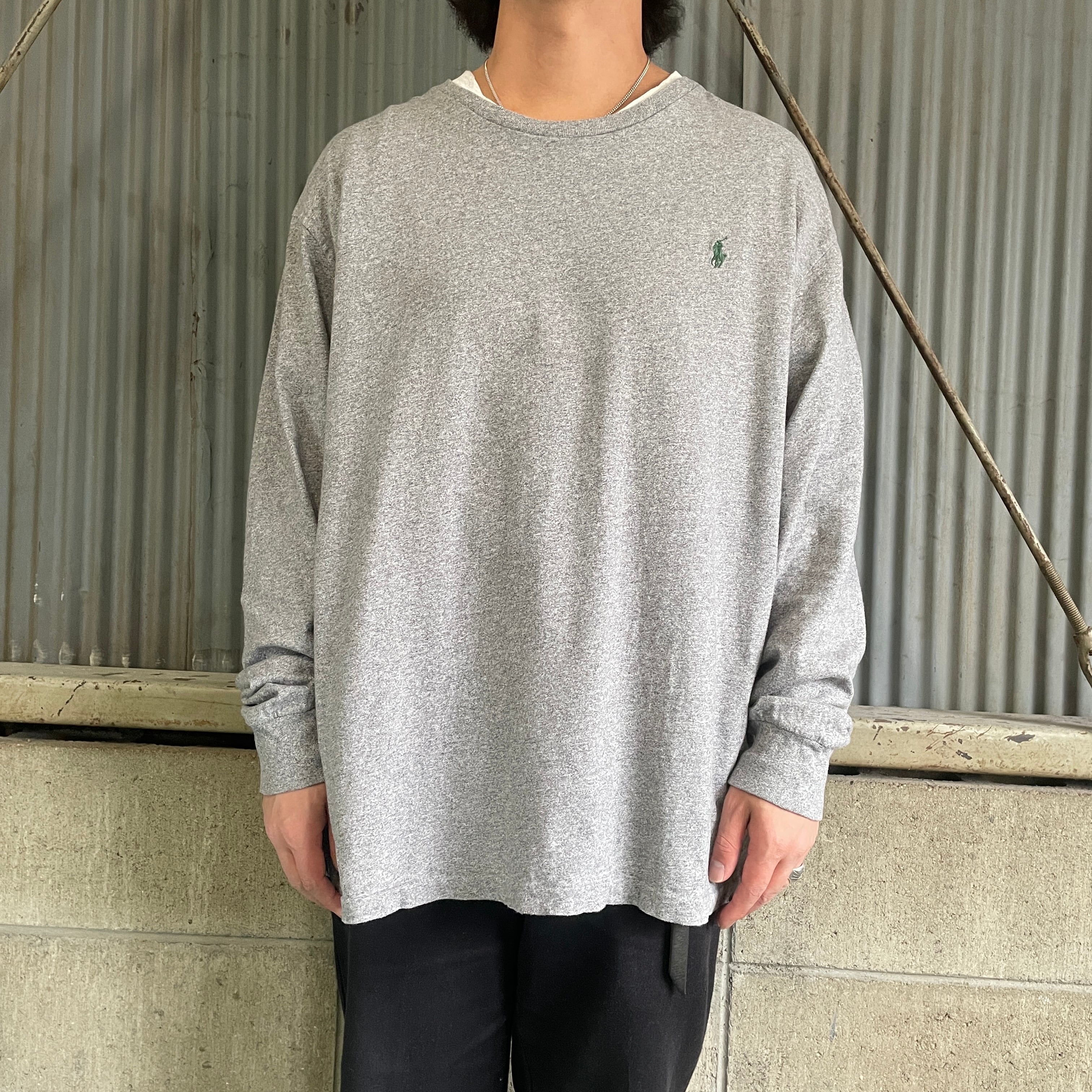 ■ビッグサイズ Polo Ralph Lauren ポロラルフローレン 長袖Tシャツ メンズXL 古着 ワンポイントロゴ 刺繍 ロンT グレー 大きいサイズ【ロングTシャツ】