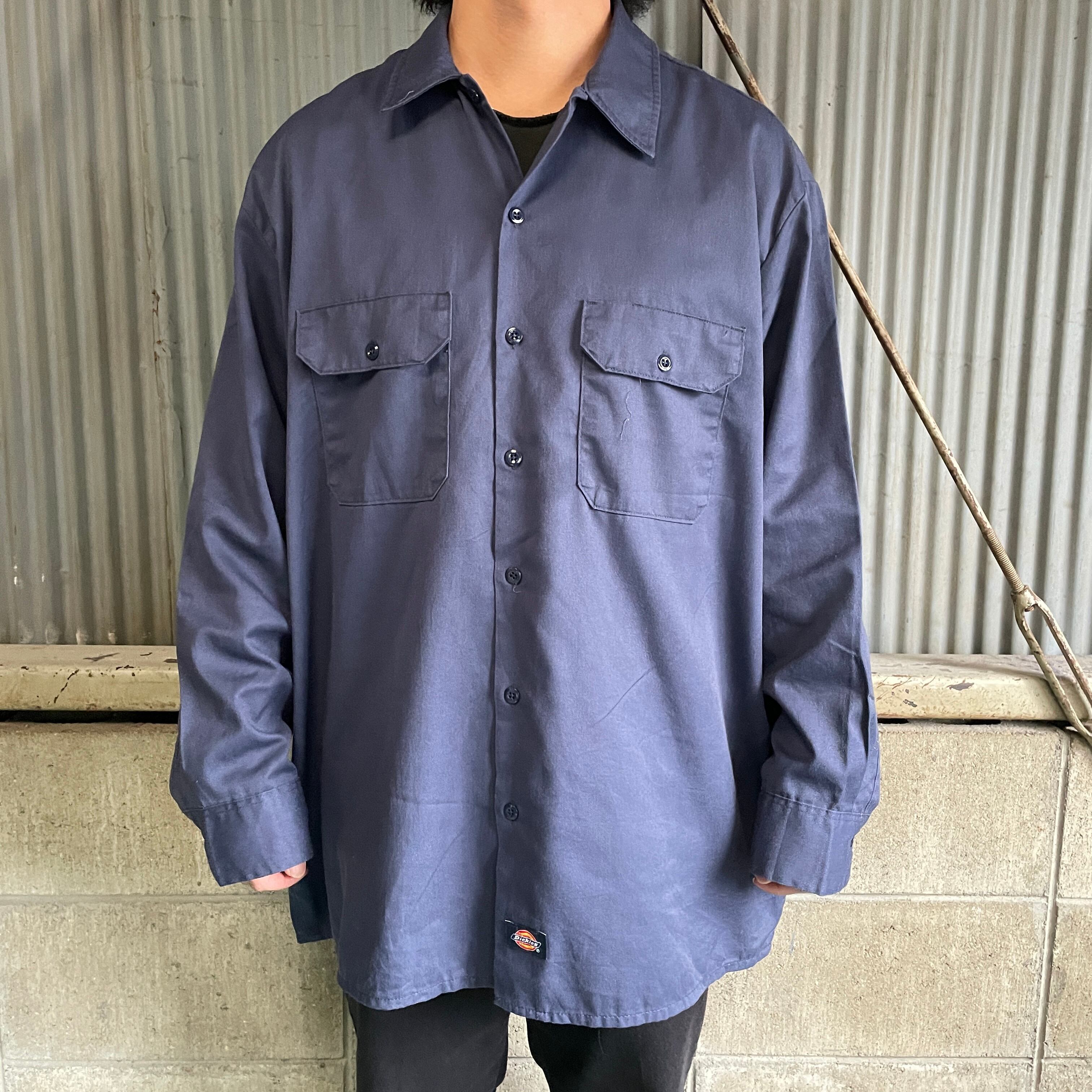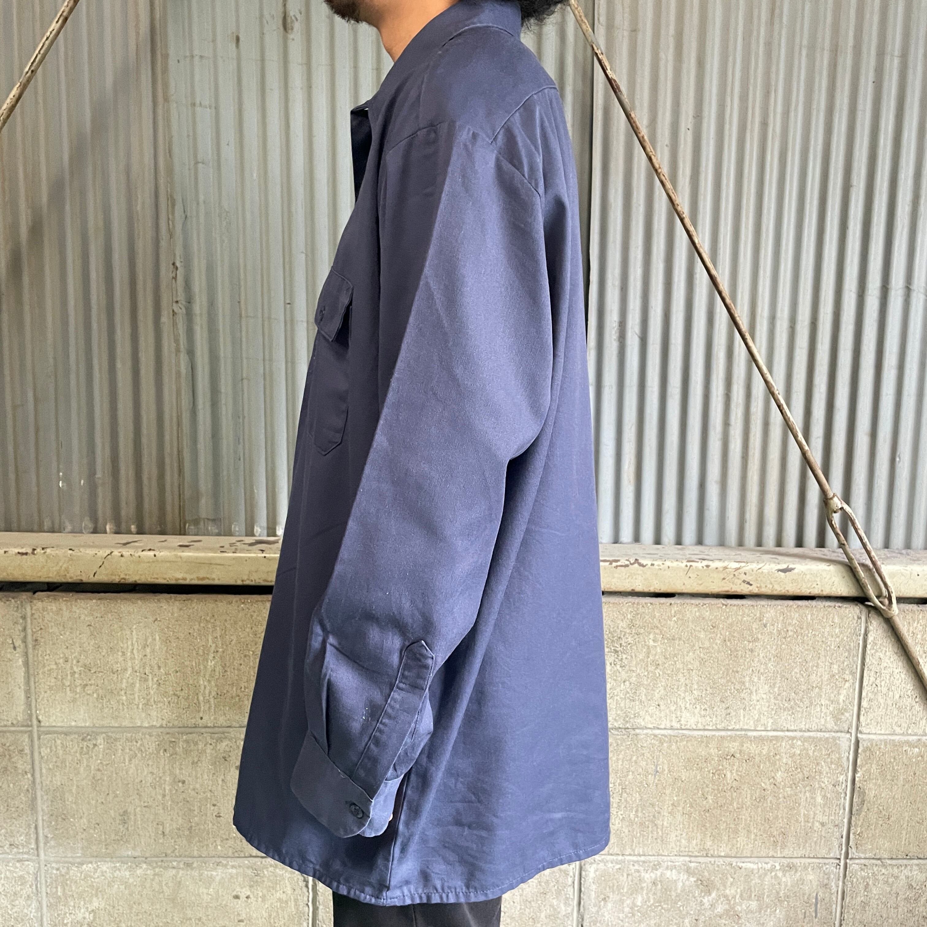 ■Dickies ディッキーズ 長袖 ワークシャツ メンズXL 古着 ネイビー 紺色 【長袖シャツ】