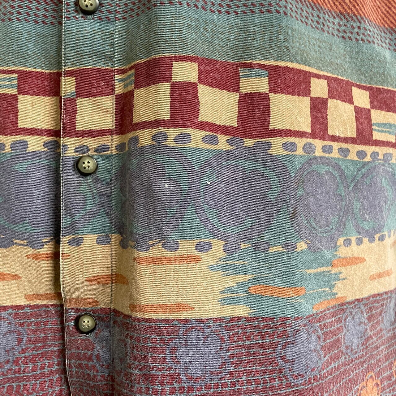 ■THE TERRITORY AHEAD 総柄シャツ メンズXL相当 古着 ネイティブ 花柄【長袖シャツ】