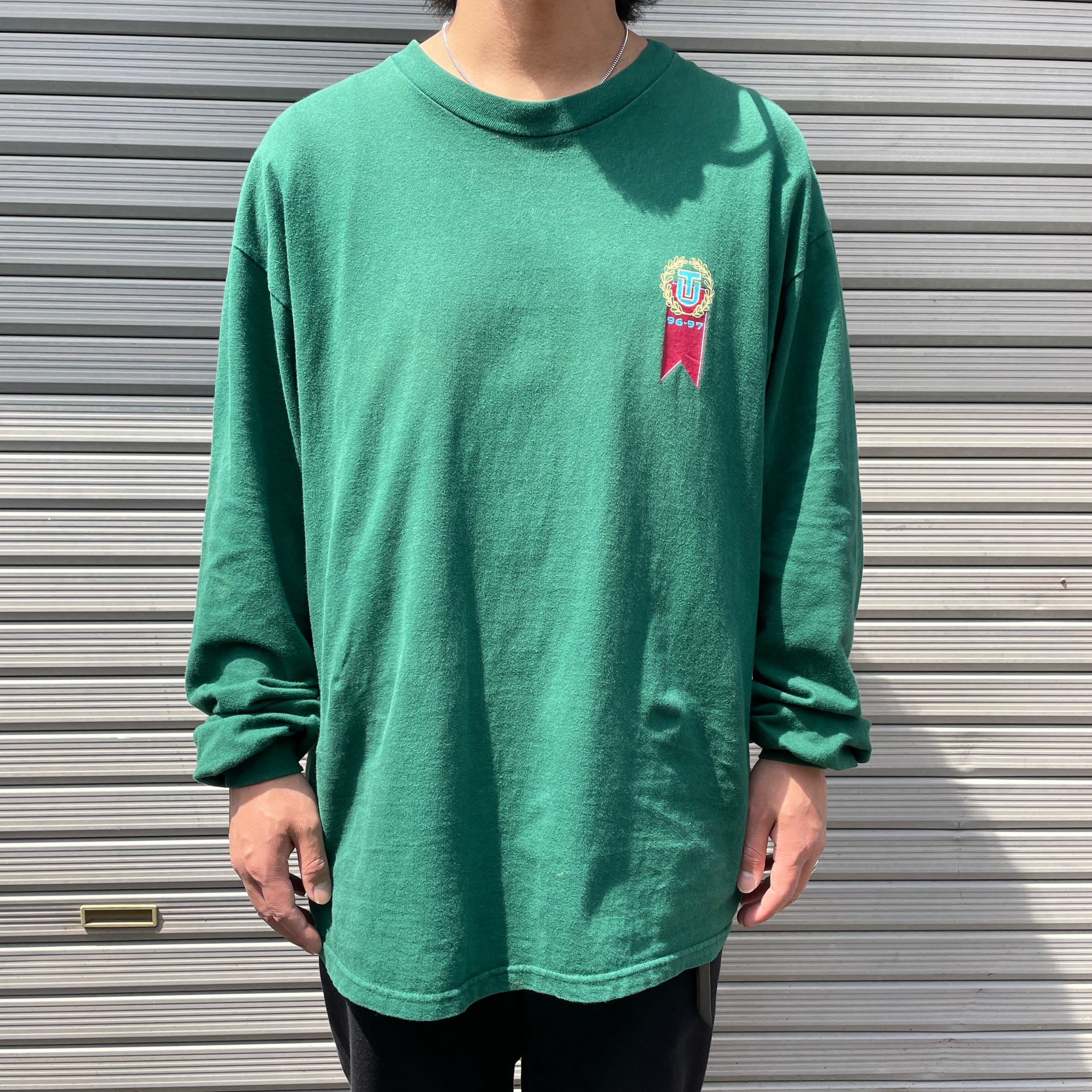 90年代 TU INTRAMURAL スポーツ 胸ロゴ バックプリント ロングTシャツ メンズXL 古着 90s ヴィンテージ ビンテージ 長袖 ロンT グリーン 緑色 【ロングTシャツ】【4S-50】