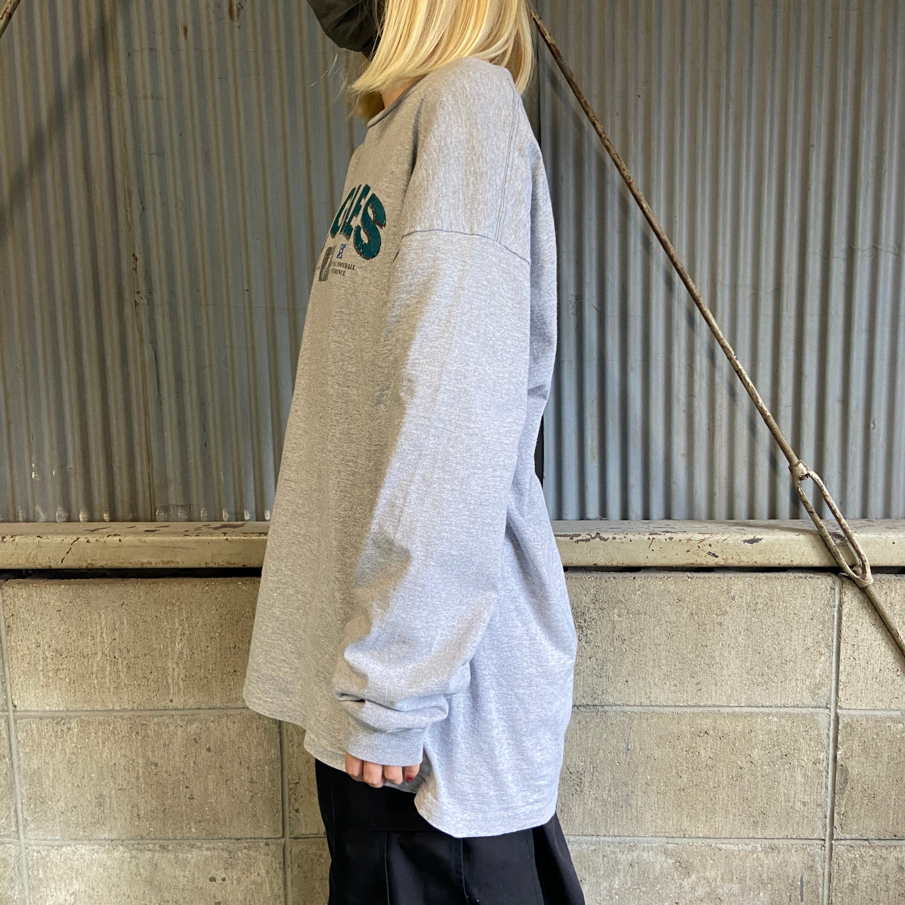 ■NFL Philadelphia Eagles フィラデルフィア・イーグルス チームロゴ プリント ロングTシャツ メンズXL 古着 アメフト ロンT グレー 長袖Tシャツ【ロングTシャツ】