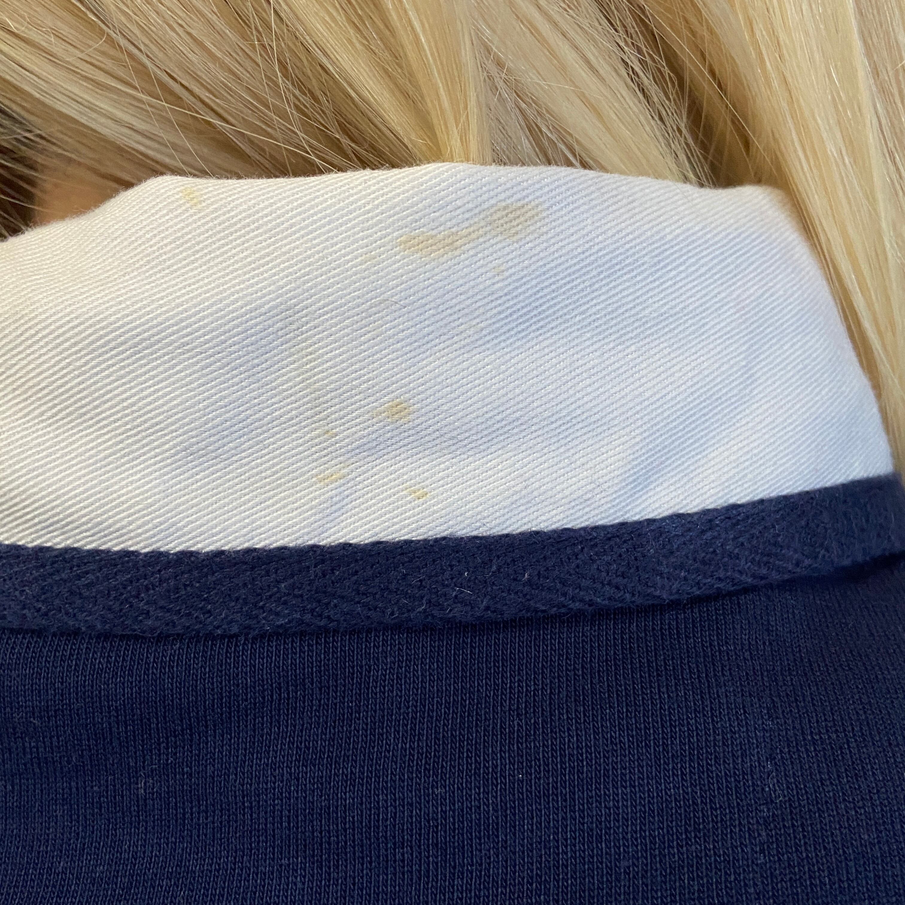 【状態】左袖や襟に汚れございます。その他大きなダメージなどはなくまだまだ愛用していただけます。