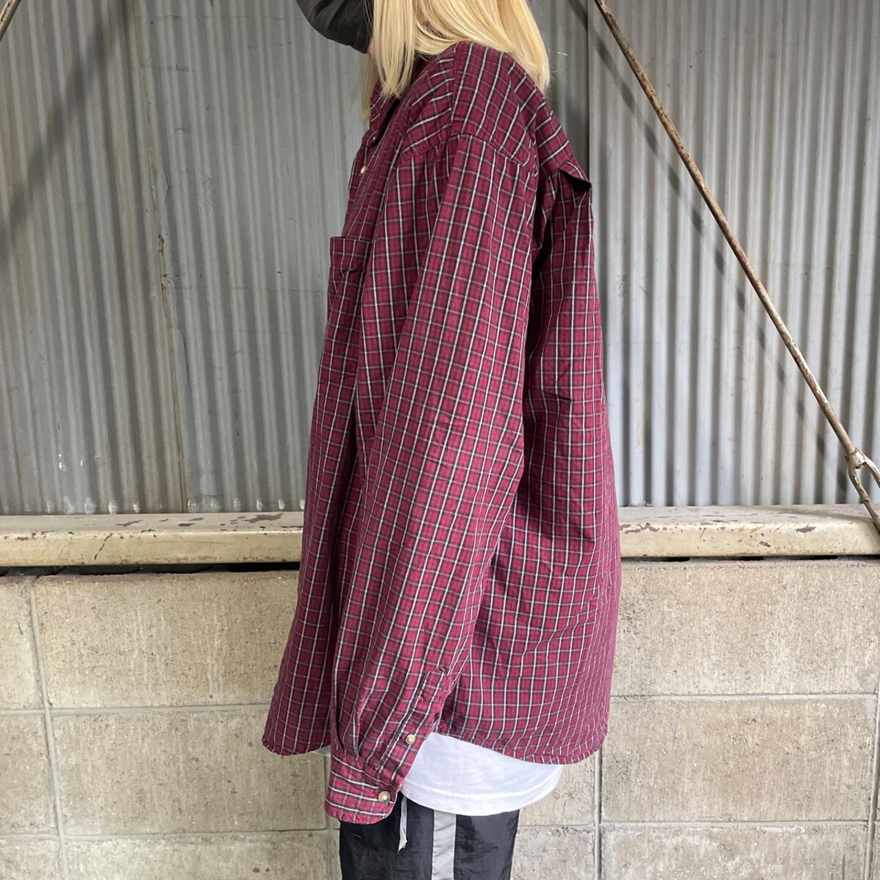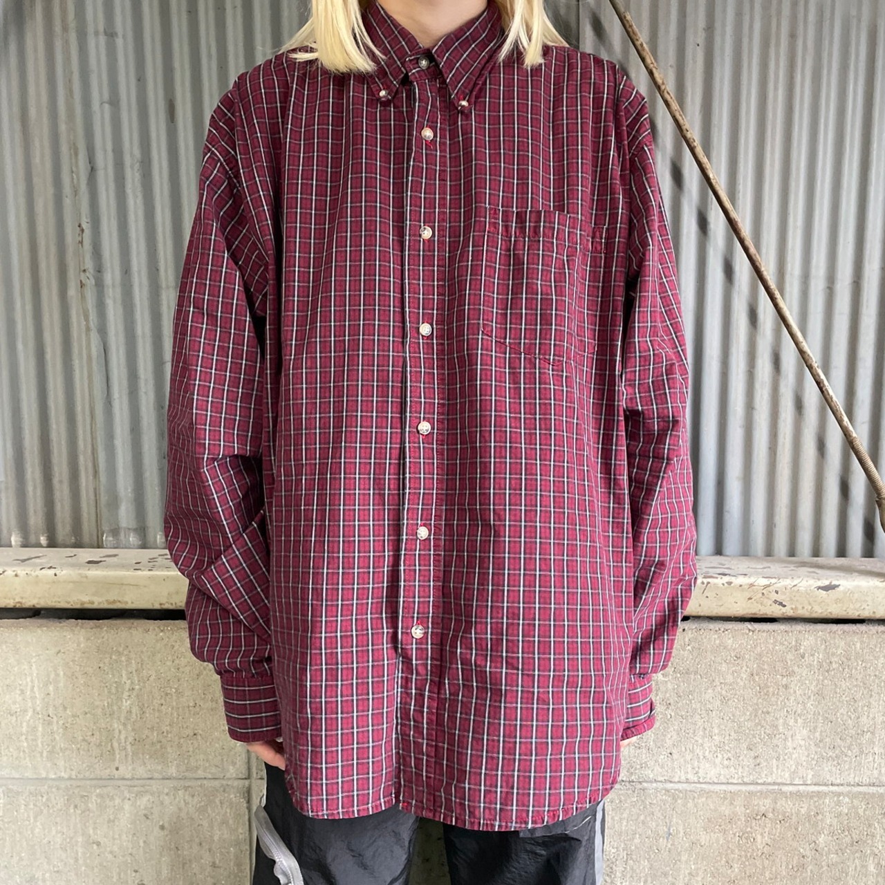 ■Wrangler ラングラー チェック柄 ボタンダウンシャツ 長袖 メンズL相当 古着 バーガンディー ワインレッド えんじ 赤 【長袖シャツ】